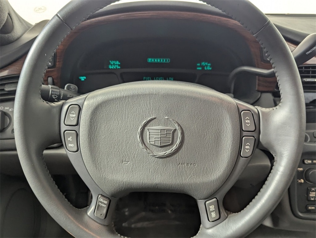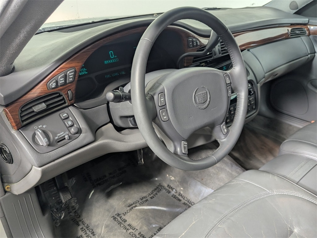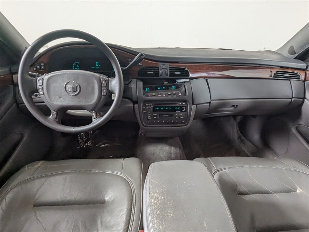 2002 Cadillac DeVille Base Beautifully finished in Sterling with Dark Grey Leather interior. Northstar 4.6L V8 SFI DOHC 275 hp 4D Sedan FWD 4-Speed Automatic with Overdrive Dark Grey Leather, 16" Cast Aluminum Wheels, 16" Chrome Wheels, 4-Wheel Disc Brakes, 8 Speakers, ABS brakes, Air Conditioning, Alloy wheels, AM/FM radio, AM/FM Stereo w/CD/Cassette, Auto-dimming door mirrors, Auto-dimming Rear-View mirror, Auto-leveling suspension, Automatic temperature control, Bodyside moldings, Bumpers: body-color, Cassette, CD player, Comfort/Convenience Package, Compass, Delay-off headlights, Driver & Front Passenger 4-Way Power Lumbar, Driver door bin, Driver vanity mirror, Dual front impact airbags, Dual front side impact airbags, Emergency communication system: OnStar, Four wheel independent suspension, Front anti-roll bar, Front Center Armrest w/Storage, Front dual zone A/C, Front reading lights, Fully automatic headlights, Heated door mirrors, Heated Front & Rear Seats, Illuminated entry, Individual Front Seats, Leather steering wheel, Memory Package, Nuance Leather Seat Trim, Outside temperature display, Overhead console, Panic alarm, Passenger door bin, Passenger vanity mirror, Power door mirrors, Power driver seat, Power passenger seat, Power steering, Power windows, Rear air conditioning, Rear anti-roll bar, Rear reading lights, Rear seat center armrest, Rear window defroster, Remote keyless entry, Security system, Speed control, Speed-sensing steering, Steering wheel mounted A/C controls, Steering wheel mounted audio controls, Tachometer, Tilt steering wheel, Traction control, Trip computer, Trunk Mat, Variably intermittent wipers, Dark Grey Leather. Clean CARFAX. 18/27 City/Highway MPG
