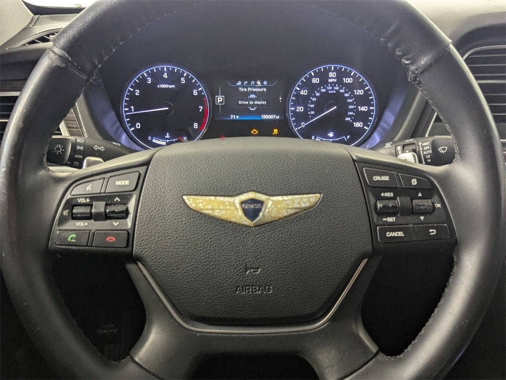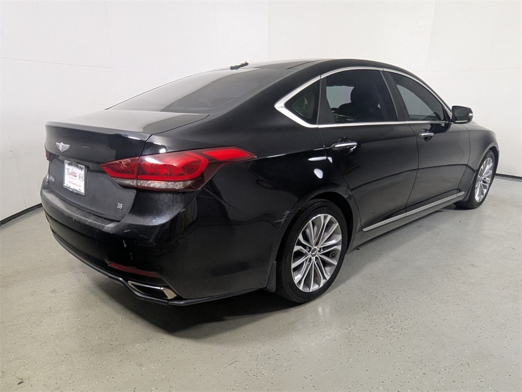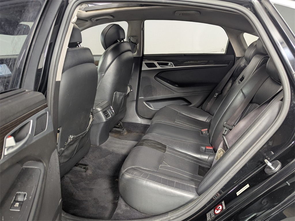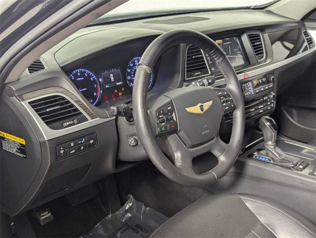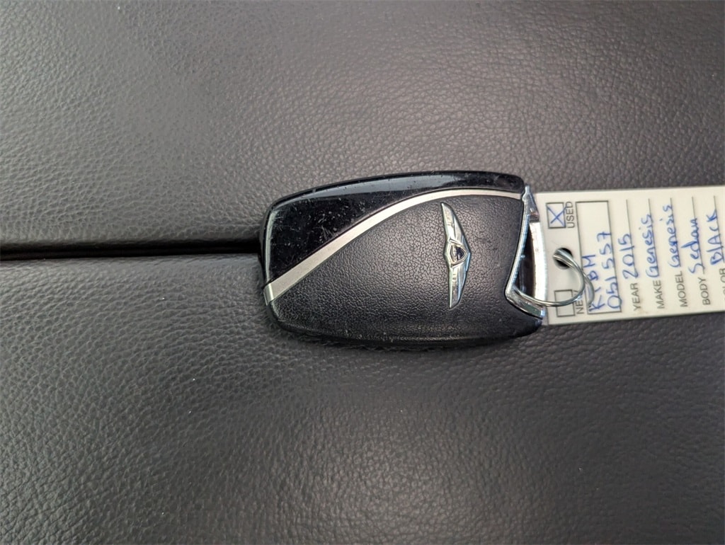 2015 Hyundai Genesis 3.8 Beautifully finished in Caspian Black with Black Leather interior. 3.8L V6 DGI DOHC Dual CVVT 4D Sedan RWD 8-Speed Automatic with SHIFTRONIC Black Leather, 4-Wheel Disc Brakes, 7 Speakers, ABS brakes, Air Conditioning, All Weather Floor Mats, Alloy wheels, AM/FM radio: SiriusXM, Anti-whiplash front head restraints, Auto-Dimming Outside Mirrors, Auto-dimming Rear-View mirror, Automatic temperature control, Blind Spot Detection System, Bodyside moldings, Brake assist, Bumpers: body-color, CD player, Compass, Delay-off headlights, Driver door bin, Driver vanity mirror, Dual front impact airbags, Dual front side impact airbags, Electronic Stability Control, Emergency communication system: Blue Link, Exterior Parking Camera Rear, First Aid Kit, Four wheel independent suspension, Front anti-roll bar, Front Bucket Seats, Front Center Armrest w/Storage, Front dual zone A/C, Front reading lights, Fully automatic headlights, Garage door transmitter: HomeLink, Heated door mirrors, Heated front seats, HID Headlights w/Auto-Leveling, Illuminated entry, Integrated Memory System (IMS), Knee airbag, Leather Seating Surfaces, Leather steering wheel, Low tire pressure warning, Navigation System, Occupant sensing airbag, Option Group 02, Outside temperature display, Overhead airbag, Overhead console, Panic alarm, Parking Guidelines, Passenger door bin, Passenger vanity mirror, Power door mirrors, Power driver seat, Power Heated Front Bucket Seats, Power Heated/Cooled Front Bucket Seats, Power passenger seat, Power Rear Sunshade, Power steering, Power Tilt-and-Slide Panoramic Sunroof, Power Tilt-and-Telescopic Steering Wheel, Power windows, Radio: AM/FM/HD/SiriusXM/CD/DVD/MP3 Audio System, Radio: AM/FM/SiriusXM/HD/CD/MP3 Audio System, Rain sensing wipers, Rear anti-roll bar, Rear Bumper Applique, Rear reading lights, Rear seat center armrest, Rear side impact airbag, Rear window defroster, Remote keyless entry, Reversible Cargo Tray, Security system, Signature Package 02, Speed control, Speed-sensing steering, Speed-Sensitive Wipers, Steering wheel mounted audio controls, Tachometer, Telescoping steering wheel, Tilt steering wheel, Traction control, Trip computer, Turn signal indicator mirrors, Variably intermittent wipers, Wheel Locks, Wheels: 18 x 8.0J Machine Finished Aluminum Alloy, Black Leather. Priced below KBB Fair Purchase Price! 18/29 City/Highway MPG