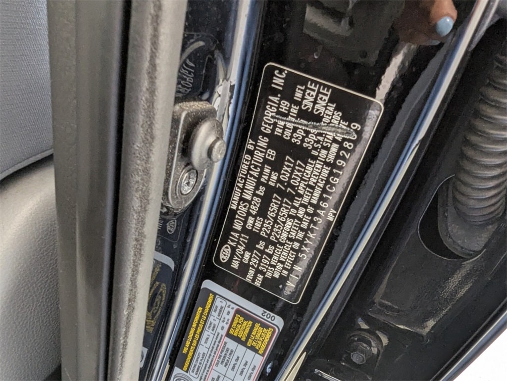 2012 Kia Sorento LX Beautifully finished in Ebony Black with Gray Cloth interior. 2.4L I4 DGI DOHC Dual CVVT 4D Sport Utility FWD 6-Speed Automatic with Sportmatic 3.91 Axle Ratio, 4-Wheel Disc Brakes, 6 Speakers, 7.0" x 17" Alloy Wheels, ABS brakes, Air Conditioning, Alloy wheels, AM/FM radio: SiriusXM, AM/FM/CD/MP3 Radio, Anti-whiplash front head restraints, Auto-dimming Rear-View mirror, Brake assist, Bumpers: body-color, Carpet Floor Mats (5 Seat), CD player, Delay-off headlights, Driver door bin, Driver vanity mirror, Dual front impact airbags, Dual front side impact airbags, Electronic Stability Control, Exterior Parking Camera Rear, Four wheel independent suspension, Front anti-roll bar, Front Bucket Seats, Front Center Armrest, Front fog lights, Front reading lights, Heated door mirrors, Heated front seats, Illuminated entry, Low tire pressure warning, Occupant sensing airbag, Overhead airbag, Overhead console, Panic alarm, Passenger door bin, Passenger vanity mirror, Power door mirrors, Power steering, Power windows, Rear anti-roll bar, Rear Parking Sensors, Rear seat center armrest, Rear window defroster, Rear window wiper, Remote keyless entry, Roof rack: rails only, Speed control, Split folding rear seat, Steering wheel mounted audio controls, Tachometer, Telescoping steering wheel, Tilt steering wheel, Traction control, Tricot Fabric Seat Trim, Trip computer, Turn signal indicator mirrors, Variably intermittent wipers. CARFAX One-Owner. Clean CARFAX. 21/30 City/Highway MPG