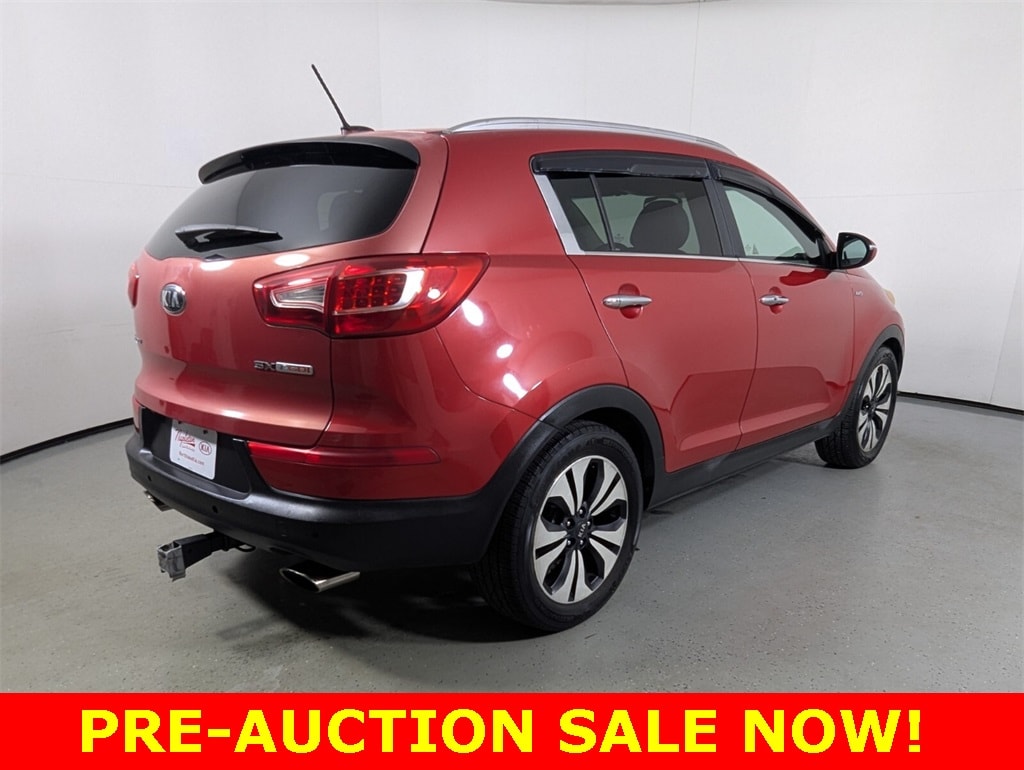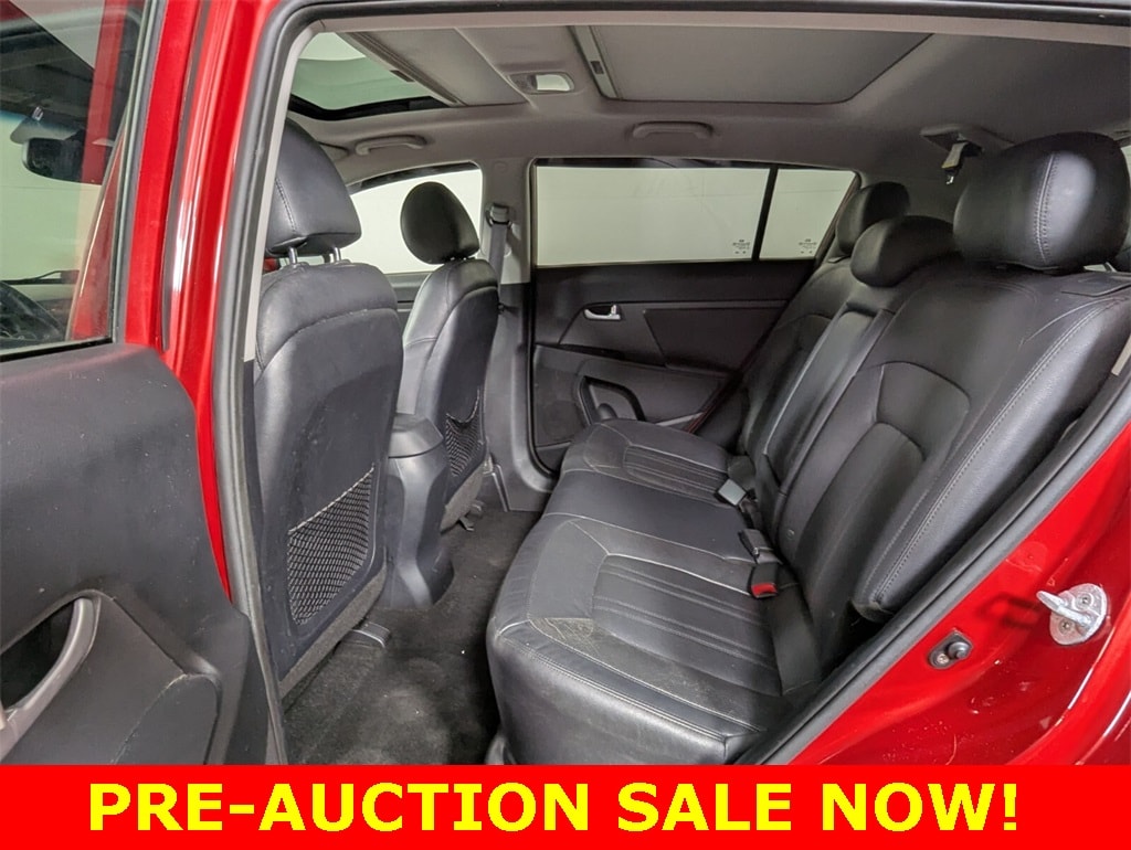 2013 Kia Sportage SX Beautifully finished in Signal Red with Black Leather interior. 2.0L I4 DGI Turbocharged 4D Sport Utility AWD 6-Speed Automatic AWD, 18" x 7.0J Alloy (SX Design) Wheels, 3.32 Axle Ratio, 4-Wheel Disc Brakes, 7 Speakers, ABS brakes, Air Conditioning, Air-Cooled Driver's Seat, Alloy wheels, AM/FM radio: SIRIUS, Anti-whiplash front head restraints, Automatic temperature control, Brake assist, Bumpers: body-color, Cargo Net, Cargo Tray, CD player, Cross Bars, Delay-off headlights, Driver door bin, Driver vanity mirror, Dual Body-Color Power Heated Mirrors, Dual front impact airbags, Dual front side impact airbags, Electronic Stability Control, Exterior Parking Camera Rear, Four wheel independent suspension, Front anti-roll bar, Front Bucket Seats, Front Center Armrest, Front dual zone A/C, Front fog lights, Front reading lights, Fully automatic headlights, Heated Front Seats, Illuminated entry, Leather Seat Trim, Leather Shift Knob, Low tire pressure warning, Occupant sensing airbag, Outside temperature display, Overhead airbag, Overhead console, Panic alarm, Panoramic Sunroof, Passenger door bin, Passenger vanity mirror, Power door mirrors, Power driver seat, Power steering, Power windows, Premium audio system: UVO, Radio: AM/FM/CD/MP3 w/UVO Audio System, Rear anti-roll bar, Rear Parking Sensors, Rear seat center armrest, Rear window defroster, Rear window wiper, Remote keyless entry, Roof rack: rails only, Security system, Speed control, Speed-sensing steering, Split folding rear seat, Spoiler, Steering wheel mounted audio controls, SX Premium Package, Tachometer, Telescoping steering wheel, Tilt steering wheel, Traction control, Trip computer, Turn signal indicator mirrors, Variably intermittent wipers, AWD.