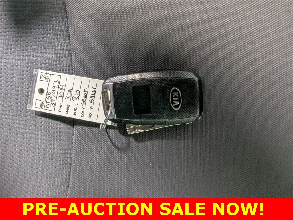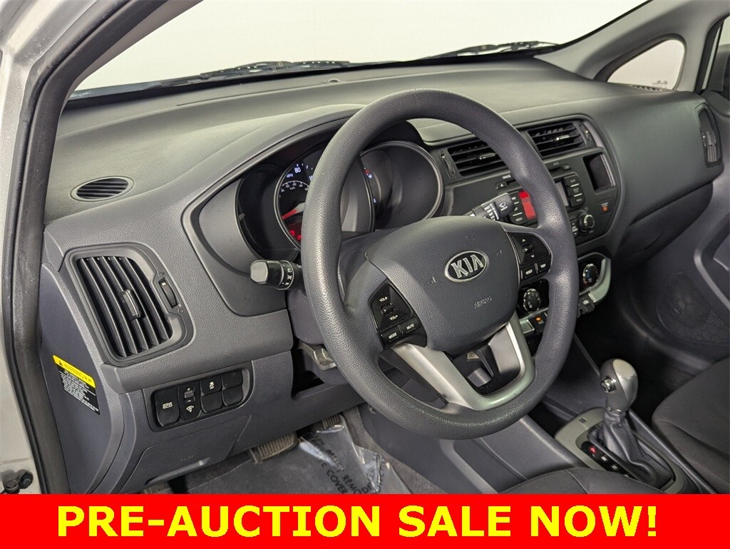 2014 Kia Rio LX Beautifully finished in Bright Silver with Black Cloth interior. 1.6L I4 DGI 16V 4D Sedan FWD 6-Speed Automatic Black Cloth, 15" x 5.5J Steel w/Covers Wheels, 4 Speakers, 4-Wheel Disc Brakes, ABS brakes, Air Conditioning, AM/FM radio: SiriusXM, Brake assist, Bumpers: body-color, Carpet Floor Mat, CD player, Driver door bin, Driver vanity mirror, Dual front impact airbags, Dual front side impact airbags, Electronic Stability Control, Front anti-roll bar, Front Bucket Seats, Front wheel independent suspension, Heated door mirrors, Low tire pressure warning, Occupant sensing airbag, Outside temperature display, Overhead airbag, Passenger door bin, Passenger vanity mirror, Power Door Locks w/Remote Keyless Entry, Power door mirrors, Power Package, Power steering, Power Windows, Radio: AM/FM/CD MP3 Audio System, Rear window defroster, Remote Keyless Entry, Speed-sensing steering, Split folding rear seat, Steering wheel mounted audio controls, Tachometer, Tilt steering wheel, Traction control, Trip computer, Variably intermittent wipers, Woven Cloth Seat Trim, Black Cloth. Priced below KBB Fair Purchase Price! 27/37 City/Highway MPG