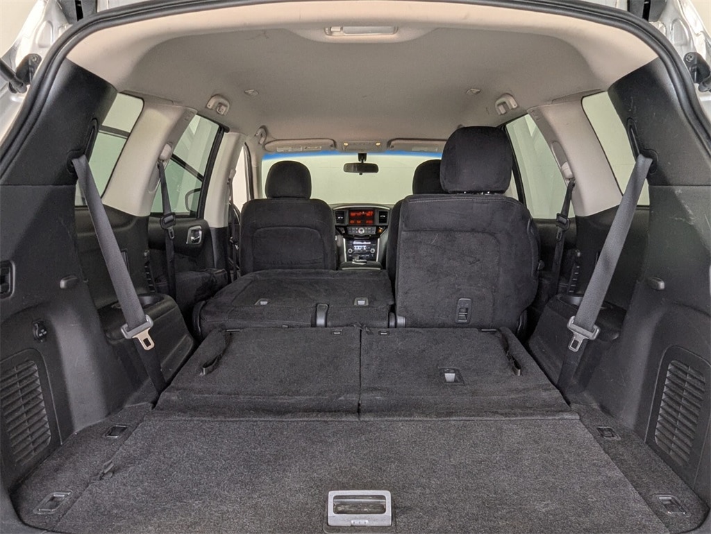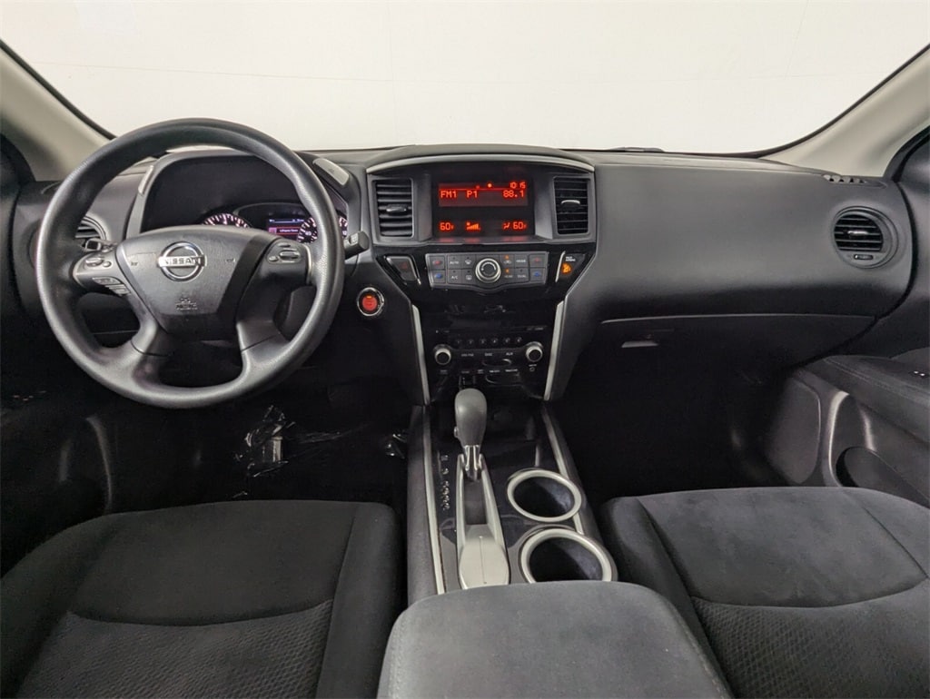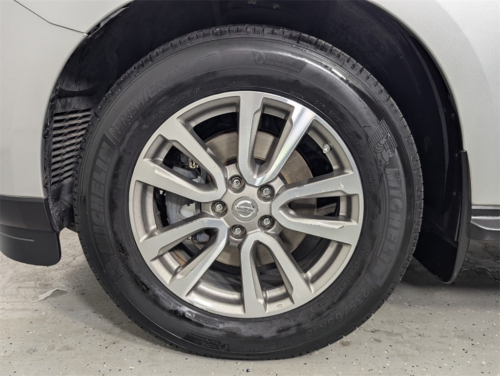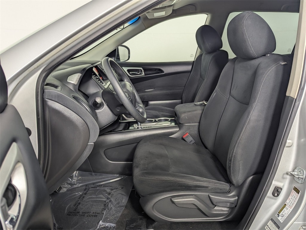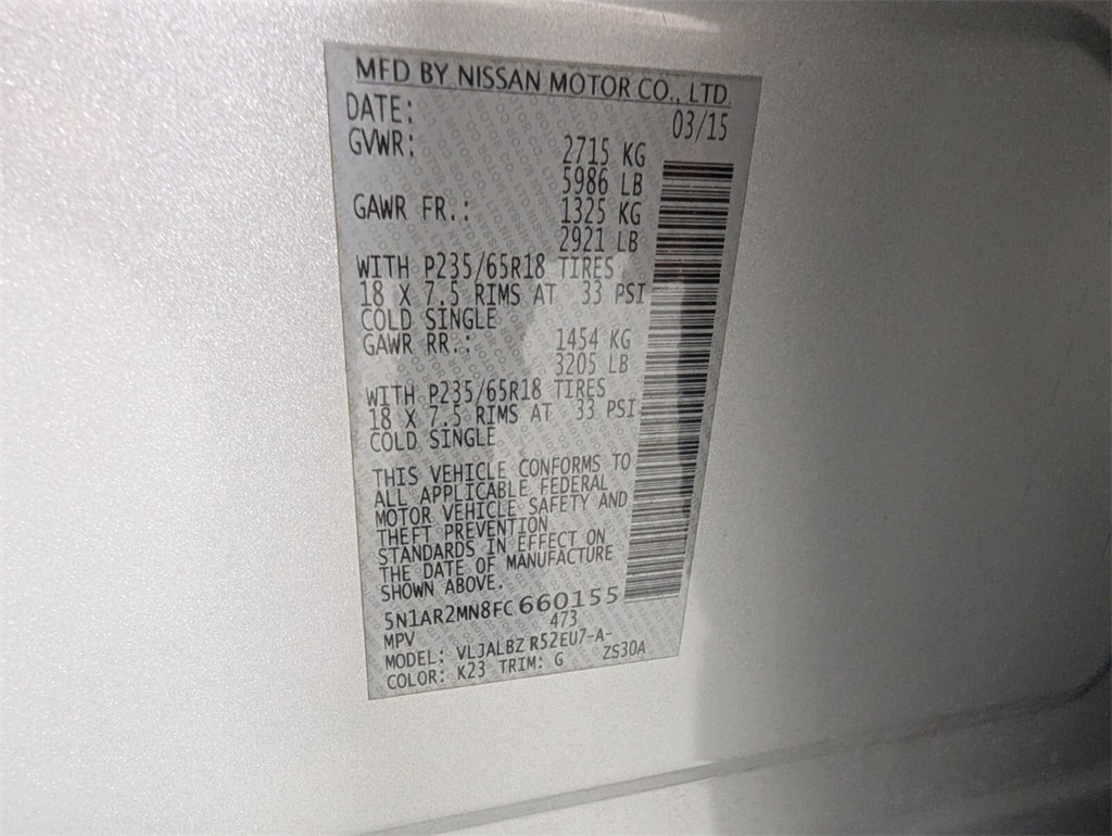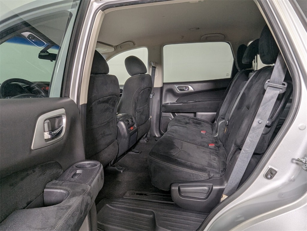 2015 Nissan Pathfinder S Beautifully finished in Brilliant Silver with Charcoal Cloth interior. 3.5L V6 4D Sport Utility FWD CVT with Xtronic 18" Alloy Wheels, 3rd row seats: bench, 4-Wheel Disc Brakes, 5.577 Axle Ratio, 6 Speakers, ABS brakes, Air Conditioning, Alloy wheels, AM/FM radio, Automatic temperature control, Black Splash Guards 4-Piece, Brake assist, Bumpers: body-color, Carpeted Floor Mat (4-Pc Set), CD player, Cloth Seat Trim, Driver door bin, Driver vanity mirror, Dual front impact airbags, Dual front side impact airbags, Electronic Stability Control, Four wheel independent suspension, Front anti-roll bar, Front Bucket Seats, Front Center Armrest w/Storage, Front dual zone A/C, Front reading lights, Illuminated entry, Low tire pressure warning, Occupant sensing airbag, Outside temperature display, Overhead airbag, Overhead console, Panic alarm, Passenger door bin, Passenger vanity mirror, Power door mirrors, Power steering, Power windows, Radio: AM/FM/MP3/6-CD Audio System w/6-Speakers, Rear air conditioning, Rear anti-roll bar, Rear seat center armrest, Rear window defroster, Rear window wiper, Reclining 3rd row seat, Remote keyless entry, Roof rack: rails only, Security system, Speed control, Speed-sensing steering, Split folding rear seat, Spoiler, Steering wheel mounted audio controls, Tachometer, Telescoping steering wheel, Tilt steering wheel, Traction control, Trip computer, Variably intermittent wipers. 20/27 City/Highway MPG
