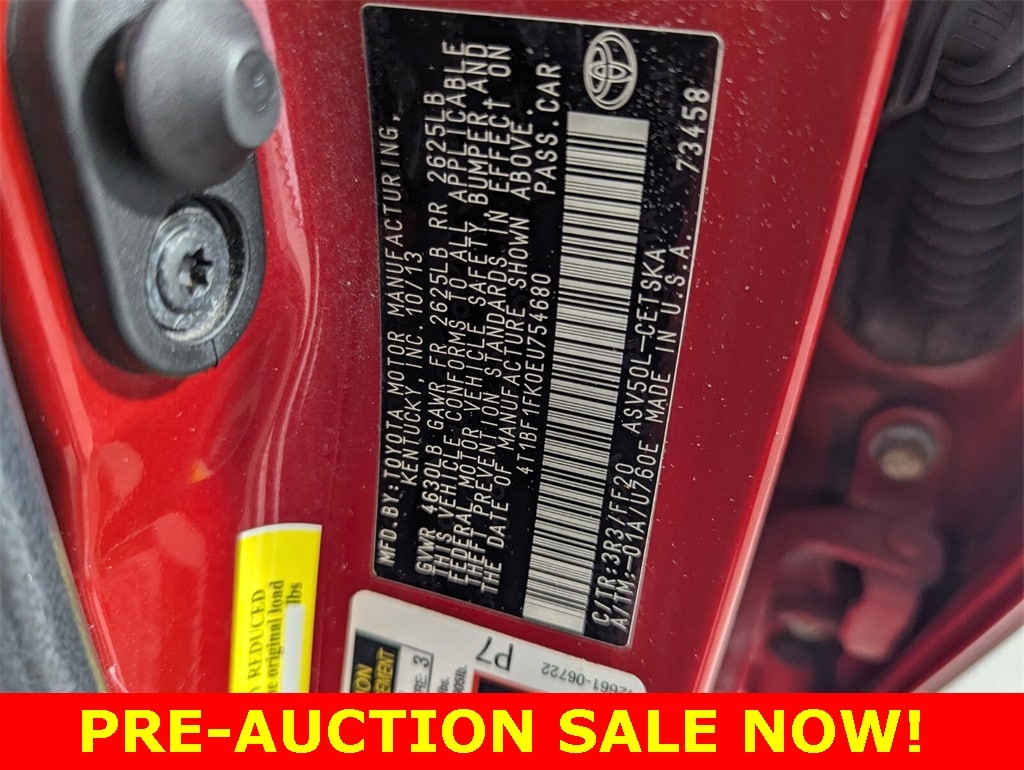 2014 Toyota Camry L Beautifully finished in Barcelona Red Metallic with Black Leather interior. 2.5L I4 SMPI DOHC 4D Sedan FWD 6-Speed Automatic **LOCAL TRADE**, **CLEAN CARFAX**, **MUST SEE TO APPRECIATE**, **EXTRA CLEAN**, Black w/SofTex Seat Trim or Leather-Trimmed Ultrasuede Seats, 4-Wheel Disc Brakes, 6 Speakers, ABS brakes, Air Conditioning, AM/FM radio, Brake assist, Bumpers: body-color, CD player, Driver door bin, Driver vanity mirror, Dual front impact airbags, Dual front side impact airbags, Electronic Stability Control, Four wheel independent suspension, Front anti-roll bar, Front Bucket Seats, Front Center Armrest, Front reading lights, Knee airbag, Low tire pressure warning, Occupant sensing airbag, Outside temperature display, Overhead airbag, Overhead console, Passenger door bin, Passenger vanity mirror, Power door mirrors, Power steering, Power windows, Radio: AM/FM/CD Player w/6.1" Touch Screen, Rear anti-roll bar, Rear seat center armrest, Rear side impact airbag, Rear window defroster, Speed control, Speed-sensing steering, Split folding rear seat, Steering wheel mounted audio controls, Tachometer, Telescoping steering wheel, Tilt steering wheel, Traction control, Black w/SofTex Seat Trim or Leather-Trimmed Ultrasuede Seats. Clean CARFAX. Priced below KBB Fair Purchase Price! 25/35 City/Highway MPG