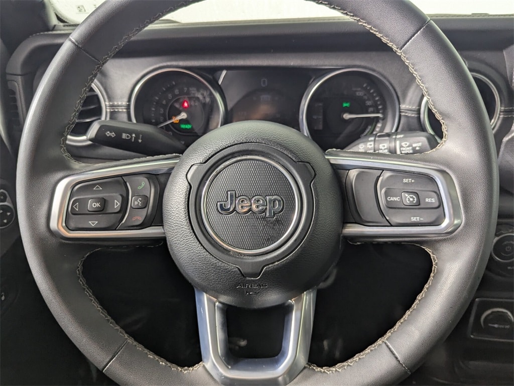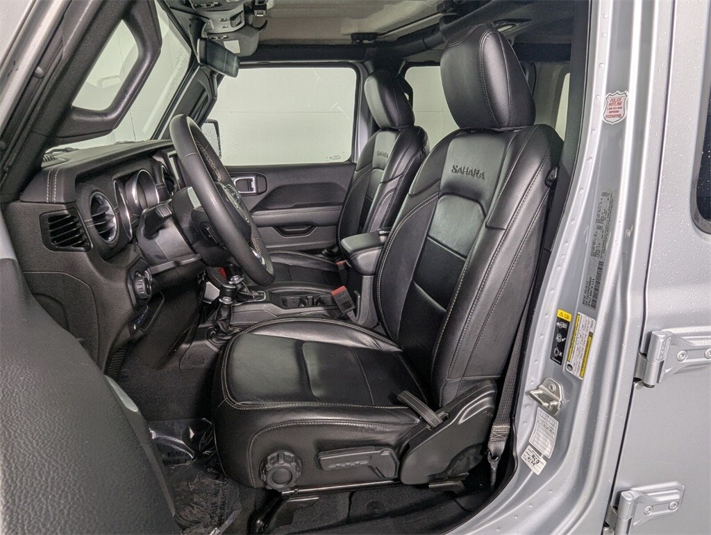 This Wrangler is well equipped with Quick Order Package 29P Sahara, Trailer Tow & Aux Switch Group (700 Amp Maintenance Free Battery and Auxiliary Switches), FCA US LLC Certified Pre-Owned Certified, 2.0L I4 DOHC, 3.73 Rear Axle Ratio, 4-Wheel Disc Brakes, 9 Speakers, ABS brakes, Air Conditioning, Alloy wheels, AM/FM radio: SiriusXM, Apple CarPlay/Android Auto, Auto-dimming Rear-View mirror, Automatic temperature control, Black 3-Piece Hard Top, Brake assist, Compass, Delay-off headlights, Driver door bin, Driver vanity mirror, Dual front impact airbags, Dual front side impact airbags, Electronic Stability Control, Emergency communication system: SiriusXM Guardian, Freedom Panel Storage Bag, Front anti-roll bar, Front Bucket Seats, Front Center Armrest w/Storage, Front dual zone A/C, Front fog lights, Front License Plate Bracket, Front reading lights, Fully automatic headlights, Garage door transmitter, Heated door mirrors, Illuminated entry, Integrated roll-over protection, Leather Shift Knob, Low tire pressure warning, MOPAR Sunrider For Hardtop, Navigation System/ GPS, No Soft Top, Occupant sensing airbag, Outside temperature display, Panic alarm, ParkView Rear Back-Up Camera, Passenger door bin, Passenger vanity mirror, Power door mirrors, Power steering, Power windows, Premium McKinley Trimmed Seats, Radio data system, Radio: Uconnect 4C Nav w/8.4" Display, Rear anti-roll bar, Rear reading lights, Rear seat center armrest, Rear Window Defroster, Rear Window Wiper/Washer, Remote keyless entry, Security system, Speed control, Split folding rear seat, Sport Suspension, Steering wheel mounted audio controls, Tachometer, Telescoping steering wheel, Tilt steering wheel, Traction control, Trip computer, Variably intermittent wipers, Voltmeter, and Wheels: 20" x 8" Fully Painted Aluminum.