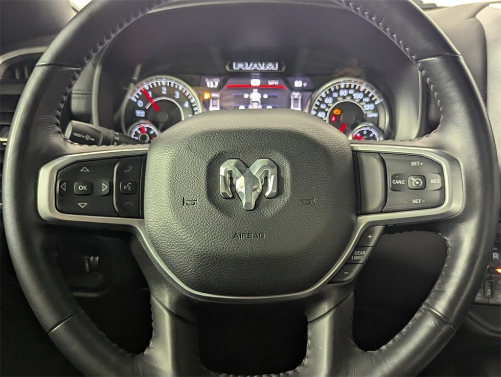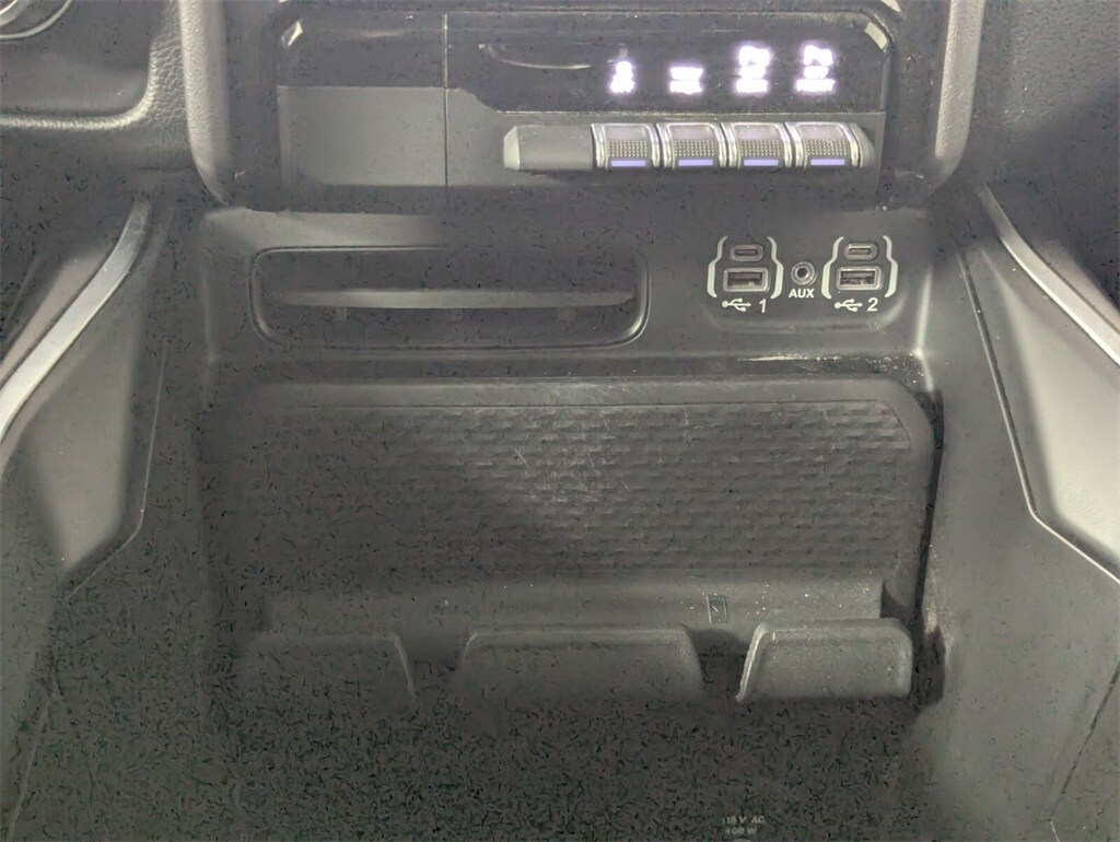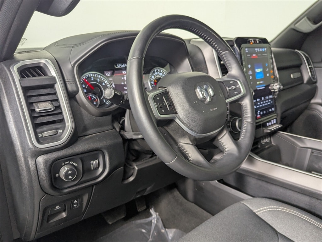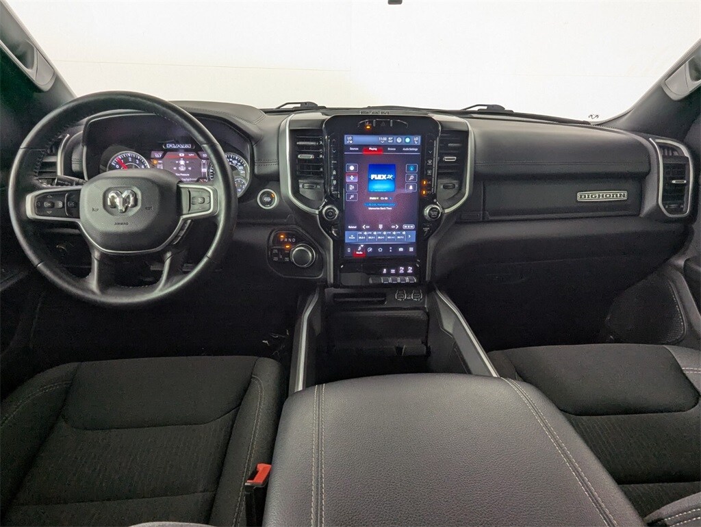 This 1500 is well equipped with Bed Utility Group (MOPAR Spray In Bedliner and Pick-Up Box Lighting), Big Horn Level 2 Equipment Group (Apple CarPlay, Google Android Auto, 115V Auxiliary Power Outlet, 115V Auxiliary Rear Power Outlet, 2nd Row In Floor Storage Bins, 400W Inverter, 4G LTE Wi-Fi Hot Spot, 8.4" Touchscreen Display, Air Conditioning ATC w/Dual Zone Control, Auto-Dimming Exterior Driver Mirror, Auto-Dimming Rear-View Mirror, Black Exterior Mirrors, Black Premium Power Mirrors, Bluetooth Handsfree Phone & Audio, Class IV Receiver Hitch, Cluster 7.0" TFT Color Display, Connectivity - US/Canada, Convex Wide-Angle Mirror Insert, Exterior Mirrors Courtesy Lamps, Exterior Mirrors w/Heating Element, Exterior Mirrors w/Supplemental Signals, For Details, Visit DriveUconnect.com, Global Telematics Box Module (TBM), Glove Box Lamp, GPS Antenna Input, Heated Front Seats, Heated Steering Wheel, Integrated Center Stack Radio, Media Hub w/2 Charge Only USBs, ParkSense Front/Rear Park Assist w/Stop, Power 2-Way Driver Lumbar Adjust, Power 8-Way Driver Seat, Power Adjustable Pedals, Power-Folding Mirrors, Radio: Uconnect 5 W w/8.4" Display, Rear Dome w/On/Off Switch Lamp, Rear Power Sliding Window, Rear Window Defroster, Remote Start System, Security Alarm, SiriusXM Radio Service, SiriusXM Satellite Radio, Sun Visors w/Illuminated Vanity Mirrors, Universal Garage Door Opener, and USB Host Flip), Level 1 Safety Group (Advanced Brake Assist, Cluster 3.5" TFT Color Display, Full Speed Forward Collision Warning Plus, Lane Keep Assist, and Pedestrian Emergency Braking), Night Edition (DISC) (3 Rear Seat Head Restraints, 4 Way Front Headrests, Anti-Spin Differential Rear Axle, Black Exterior Truck Badging, Black Headlamp Bezels, Black Interior Accents, Body Color Front Bumper, Body Color Rear Bumper w/Step Pads, Bucket Seats, Delete LED Lamp - Floor Console Bin, Deluxe Cloth Bucket Seats, Dual Exhaust w/Black Tips, Front Seat Back Map Pockets, Full Length Floor Console, Manual Adjust 4-Way Front Passenger Seat, Rear 60/40 Folding Seat, Rear Center Armrest, and Wheels: 20" x 9.0" Premium Paint/Polished (DISC)), Quick Order Package 25Z Big Horn (Big Horn Badge), Technology Group (Digital Rearview Mirror, Heads-Up Display, and LED CHMSL Lamp), FCA US LLC Certified Pre-Owned Certified, 12" Touchscreen Display, 3.21 Rear Axle Ratio, 4-Wheel Disc Brakes, 48V Belt Starter Generator, 6 Speakers, 9 Amplified Speakers w/Subwoofer, ABS brakes, Air Conditioning, All R1 High Radios, All Radio Equipped Vehicles, Alloy wheels, AM/FM radio, Brake assist, Bumpers: chrome, Cloth Bench Seat, Compass, Connected Travel & Traffic Services, Delay-off headlights, Disassociated Touchscreen Display, Driver door bin, Dual front impact airbags, Dual front side impact airbags, Electronic Stability Control, Emergency communication system: SiriusXM Guardian, Front anti-roll bar, Front Center Armrest w/Storage, Front fog lights, Front reading lights, Front wheel independent suspension, Fully automatic headlights, GP