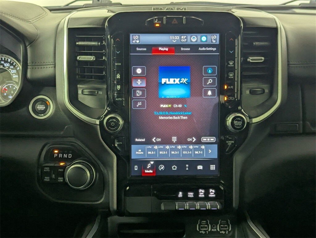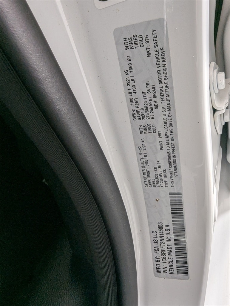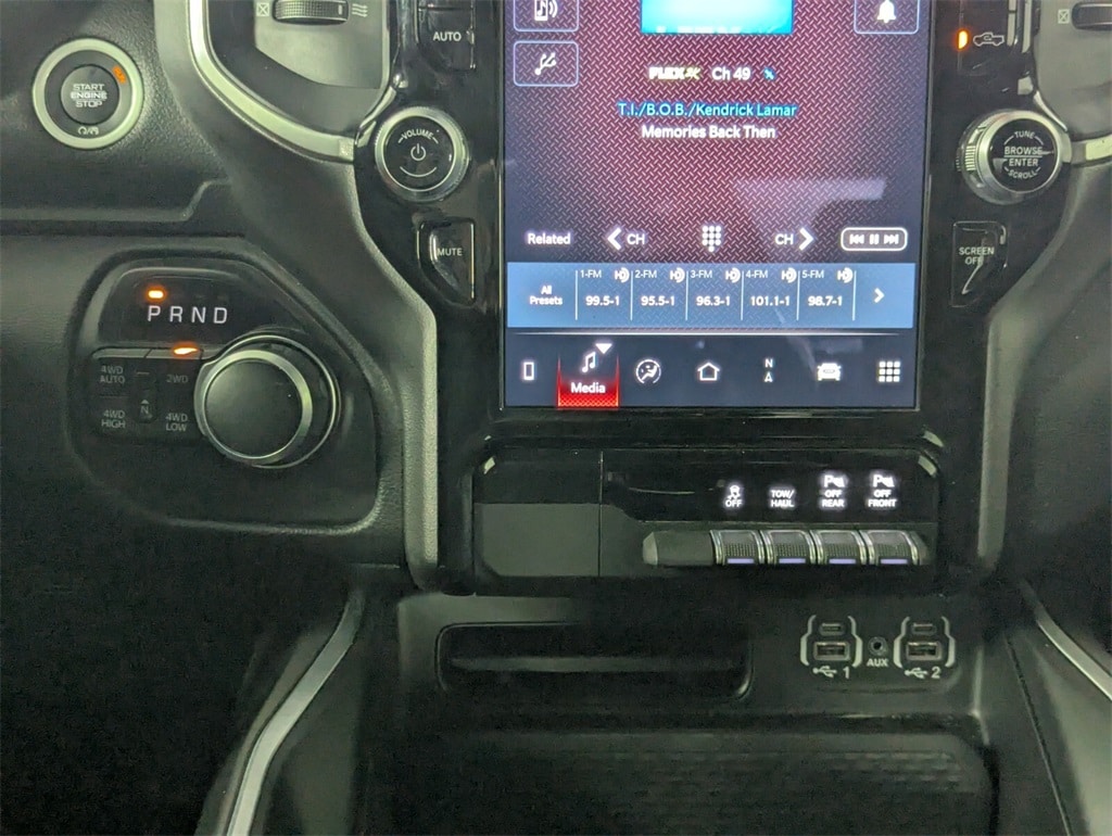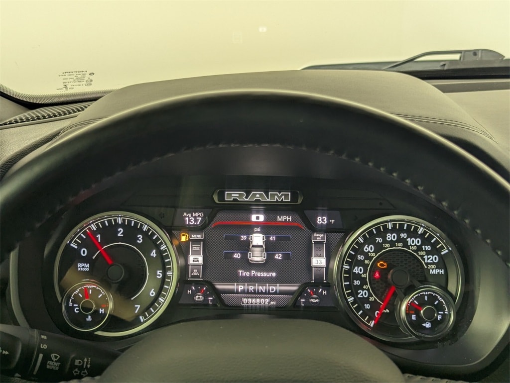 This 1500 is well equipped with Bed Utility Group (MOPAR Spray In Bedliner and Pick-Up Box Lighting), Big Horn Level 2 Equipment Group (Apple CarPlay, Google Android Auto, 115V Auxiliary Power Outlet, 115V Auxiliary Rear Power Outlet, 2nd Row In Floor Storage Bins, 400W Inverter, 4G LTE Wi-Fi Hot Spot, 8.4" Touchscreen Display, Air Conditioning ATC w/Dual Zone Control, Auto-Dimming Exterior Driver Mirror, Auto-Dimming Rear-View Mirror, Black Exterior Mirrors, Black Premium Power Mirrors, Bluetooth Handsfree Phone & Audio, Class IV Receiver Hitch, Cluster 7.0" TFT Color Display, Connectivity - US/Canada, Convex Wide-Angle Mirror Insert, Exterior Mirrors Courtesy Lamps, Exterior Mirrors w/Heating Element, Exterior Mirrors w/Supplemental Signals, For Details, Visit DriveUconnect.com, Global Telematics Box Module (TBM), Glove Box Lamp, GPS Antenna Input, Heated Front Seats, Heated Steering Wheel, Integrated Center Stack Radio, Media Hub w/2 Charge Only USBs, ParkSense Front/Rear Park Assist w/Stop, Power 2-Way Driver Lumbar Adjust, Power 8-Way Driver Seat, Power Adjustable Pedals, Power-Folding Mirrors, Radio: Uconnect 5 W w/8.4" Display, Rear Dome w/On/Off Switch Lamp, Rear Power Sliding Window, Rear Window Defroster, Remote Start System, Security Alarm, SiriusXM Radio Service, SiriusXM Satellite Radio, Sun Visors w/Illuminated Vanity Mirrors, Universal Garage Door Opener, and USB Host Flip), Level 1 Safety Group (Advanced Brake Assist, Cluster 3.5" TFT Color Display, Full Speed Forward Collision Warning Plus, Lane Keep Assist, and Pedestrian Emergency Braking), Night Edition (DISC) (3 Rear Seat Head Restraints, 4 Way Front Headrests, Anti-Spin Differential Rear Axle, Black Exterior Truck Badging, Black Headlamp Bezels, Black Interior Accents, Body Color Front Bumper, Body Color Rear Bumper w/Step Pads, Bucket Seats, Delete LED Lamp - Floor Console Bin, Deluxe Cloth Bucket Seats, Dual Exhaust w/Black Tips, Front Seat Back Map Pockets, Full Length Floor Console, Manual Adjust 4-Way Front Passenger Seat, Rear 60/40 Folding Seat, Rear Center Armrest, and Wheels: 20" x 9.0" Premium Paint/Polished (DISC)), Quick Order Package 25Z Big Horn (Big Horn Badge), Technology Group (Digital Rearview Mirror, Heads-Up Display, and LED CHMSL Lamp), FCA US LLC Certified Pre-Owned Certified, 12" Touchscreen Display, 3.21 Rear Axle Ratio, 4-Wheel Disc Brakes, 48V Belt Starter Generator, 6 Speakers, 9 Amplified Speakers w/Subwoofer, ABS brakes, Air Conditioning, All R1 High Radios, All Radio Equipped Vehicles, Alloy wheels, AM/FM radio, Brake assist, Bumpers: chrome, Cloth Bench Seat, Compass, Connected Travel & Traffic Services, Delay-off headlights, Disassociated Touchscreen Display, Driver door bin, Dual front impact airbags, Dual front side impact airbags, Electronic Stability Control, Emergency communication system: SiriusXM Guardian, Front anti-roll bar, Front Center Armrest w/Storage, Front fog lights, Front reading lights, Front wheel independent suspension, Fully automatic headlights, GP