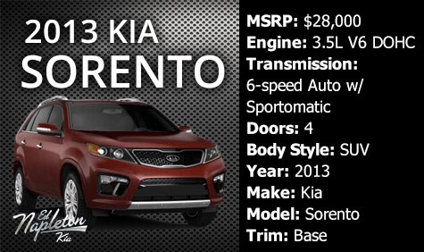 Take this 2013 Kia Sorento for a test drive at Napleton Kia in West Palm Beach, FL