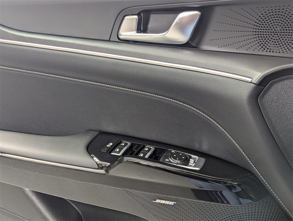 Features:GT-Line Premium Package (Active Sound Design, Bose Premium Audio, LED Interior Lighting, and Panoramic Sunroof), 4-Wheel Disc Brakes, 6 Speakers, ABS brakes, Air Conditioning, Alloy wheels, AM/FM radio: SiriusXM, Auto High-beam Headlights, Automatic temperature control, Brake assist, Bumpers: body-color, Carpeted Floor Mats, Delay-off headlights, Driver door bin, Driver vanity mirror, Dual front impact airbags, Dual front side impact airbags, EC Mirror w/Homelink, Electronic Stability Control, Emergency communication system: Kia Connect (includes 1 year free trial), Four wheel independent suspension, Front anti-roll bar, Front Bucket Seats, Front Center Armrest, Front dual zone A/C, Front fog lights, Front reading lights, Fully automatic headlights, Heated door mirrors, Heated Front Bucket Seats, Heated front seats, Heated steering wheel, Illuminated entry, Knee airbag, Leather Shift Knob, Leather steering wheel, Low tire pressure warning, Navigation System, Occupant sensing airbag, Outside temperature display, Overhead airbag, Overhead console, Panic alarm, Passenger door bin, Passenger vanity mirror, Power door mirrors, Power driver seat, Power steering, Power windows, Radio data system, Radio: AM/FM Audio System, Rear anti-roll bar, Rear seat center armrest, Rear side impact airbag, Rear window defroster, Remote keyless entry, Security system, Speed control, Speed-sensing steering, Split folding rear seat, Sport steering wheel, Steering wheel mounted audio controls, Tachometer, Telescoping steering wheel, Tilt steering wheel, Traction control, Trip computer, Turn signal indicator mirrors, Variably intermittent wipers, and Wheels: 18" x 7.5J Gloss Black Machined Finish Alloy. Dealer Discount of $1,584 off MSRP