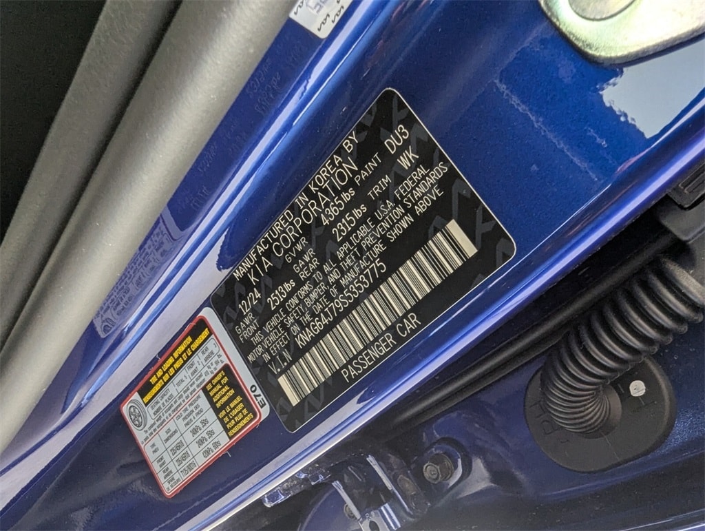 2025 Kia Yacht Blue K5 I4 GT-Line 25/36 City/Highway MPG 4-Wheel Disc Brakes, 6 Speakers, ABS brakes, Active Sound Design, Air Conditioning, Alloy wheels, AM/FM radio: SiriusXM, Auto High-beam Headlights, Automatic temperature control, Bose Premium Audio, Brake assist, Bumpers: body-color, Carpeted Floor Mats, Delay-off headlights, Driver door bin, Driver vanity mirror, Dual front impact airbags, Dual front side impact airbags, EC Mirror w/Homelink, Electronic Stability Control, Emergency communication system: Kia Connect (includes 1 year free trial), Four wheel independent suspension, Front anti-roll bar, Front Bucket Seats, Front Center Armrest, Front dual zone A/C, Front fog lights, Front reading lights, Fully automatic headlights, GT-Line Premium Package, Heated door mirrors, Heated Front Bucket Seats, Heated front seats, Heated steering wheel, Illuminated entry, Knee airbag, Leather Shift Knob, Leather steering wheel, LED Interior Lighting, Low tire pressure warning, Navigation System, Occupant sensing airbag, Outside temperature display, Overhead airbag, Overhead console, Panic alarm, Panoramic Sunroof, Passenger door bin, Passenger vanity mirror, Power door mirrors, Power driver seat, Power steering, Power windows, Radio data system, Radio: AM/FM Audio System, Rear anti-roll bar, Rear seat center armrest, Rear side impact airbag, Rear window defroster, Remote keyless entry, Security system, Speed control, Speed-sensing steering, Split folding rear seat, Sport steering wheel, Steering wheel mounted audio controls, Tachometer, Telescoping steering wheel, Tilt steering wheel, Traction control, Trip computer, Turn signal indicator mirrors, Variably intermittent wipers, Wheels: 18" x 7.5J Gloss Black Machined Finish Alloy. 25/36 City/Highway MPG