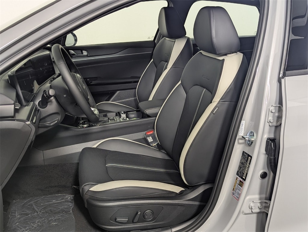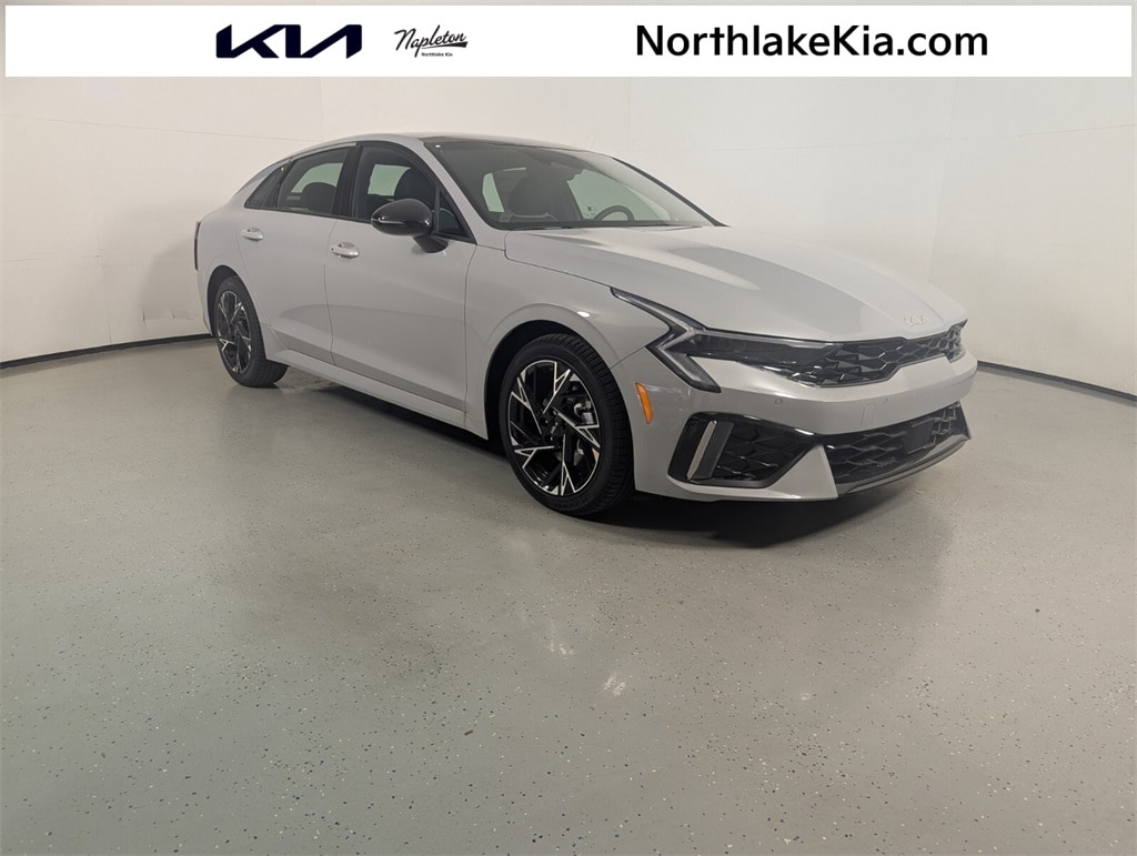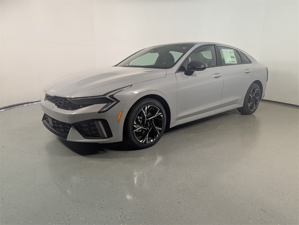 2025 Kia Wolf Gray K5 I4 GT-Line 25/36 City/Highway MPG 4-Wheel Disc Brakes, 6 Speakers, ABS brakes, Active Sound Design, Air Conditioning, Alloy wheels, AM/FM radio: SiriusXM, Auto High-beam Headlights, Automatic temperature control, Bose Premium Audio, Brake assist, Bumpers: body-color, Cargo Mat, Cargo Net, Carpeted Floor Mats, Delay-off headlights, Driver door bin, Driver vanity mirror, Dual front impact airbags, Dual front side impact airbags, EC Mirror w/Homelink, Electronic Stability Control, Emergency communication system: Kia Connect (includes 1 year free trial), Four wheel independent suspension, Front anti-roll bar, Front Bucket Seats, Front Center Armrest, Front dual zone A/C, Front fog lights, Front reading lights, Fully automatic headlights, GT-Line Premium Package, Heated door mirrors, Heated Front Bucket Seats, Heated front seats, Heated steering wheel, Illuminated entry, Knee airbag, Leather Shift Knob, Leather steering wheel, LED Interior Lighting, Low tire pressure warning, Navigation System, Occupant sensing airbag, Outside temperature display, Overhead airbag, Overhead console, Panic alarm, Panoramic Sunroof, Passenger door bin, Passenger vanity mirror, Power door mirrors, Power driver seat, Power steering, Power windows, Radio data system, Radio: AM/FM Audio System, Rear anti-roll bar, Rear seat center armrest, Rear side impact airbag, Rear window defroster, Remote keyless entry, Security system, Speed control, Speed-sensing steering, Split folding rear seat, Sport steering wheel, Steering wheel mounted audio controls, Tachometer, Telescoping steering wheel, Tilt steering wheel, Traction control, Trip computer, Turn signal indicator mirrors, Variably intermittent wipers, Wheels: 18" x 7.5J Gloss Black Machined Finish Alloy. 25/36 City/Highway MPG