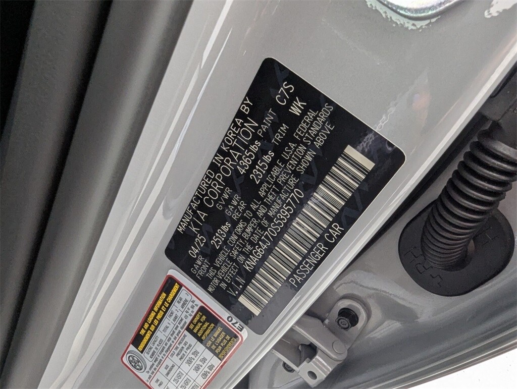 Features:GT-Line Premium Package (Active Sound Design, Bose Premium Audio, LED Interior Lighting, and Panoramic Sunroof), 4-Wheel Disc Brakes, 6 Speakers, ABS brakes, Air Conditioning, Alloy wheels, AM/FM radio: SiriusXM, Auto High-beam Headlights, Automatic temperature control, Brake assist, Bumpers: body-color, Cargo Mat, Cargo Net, Carpeted Floor Mats, Delay-off headlights, Driver door bin, Driver vanity mirror, Dual front impact airbags, Dual front side impact airbags, EC Mirror w/Homelink, Electronic Stability Control, Emergency communication system: Kia Connect (includes 1 year free trial), Four wheel independent suspension, Front anti-roll bar, Front Bucket Seats, Front Center Armrest, Front dual zone A/C, Front fog lights, Front reading lights, Fully automatic headlights, Heated door mirrors, Heated Front Bucket Seats, Heated front seats, Heated steering wheel, Illuminated entry, Knee airbag, Leather Shift Knob, Leather steering wheel, Low tire pressure warning, Navigation System, Occupant sensing airbag, Outside temperature display, Overhead airbag, Overhead console, Panic alarm, Passenger door bin, Passenger vanity mirror, Power door mirrors, Power driver seat, Power steering, Power windows, Radio data system, Radio: AM/FM Audio System, Rear anti-roll bar, Rear seat center armrest, Rear side impact airbag, Rear window defroster, Remote keyless entry, Security system, Speed control, Speed-sensing steering, Split folding rear seat, Sport steering wheel, Steering wheel mounted audio controls, Tachometer, Telescoping steering wheel, Tilt steering wheel, Traction control, Trip computer, Turn signal indicator mirrors, Variably intermittent wipers, and Wheels: 18" x 7.5J Gloss Black Machined Finish Alloy. Dealer Discount of $1,627 off MSRP