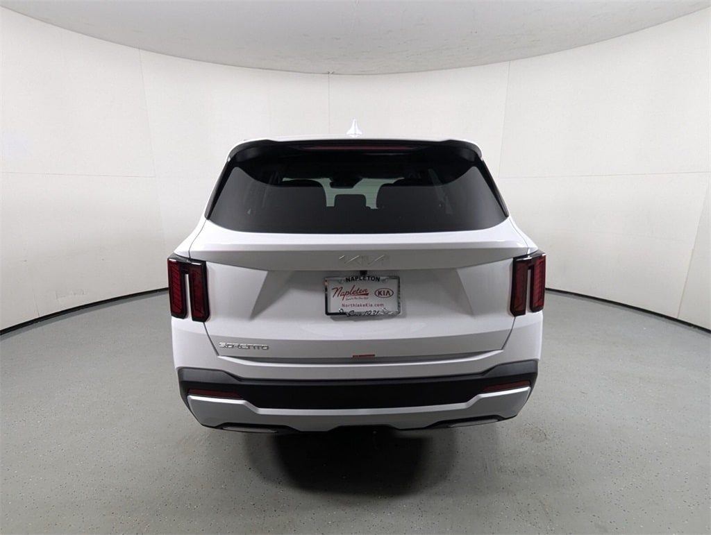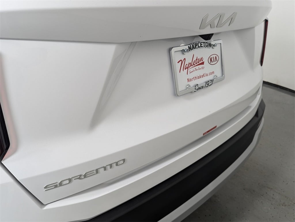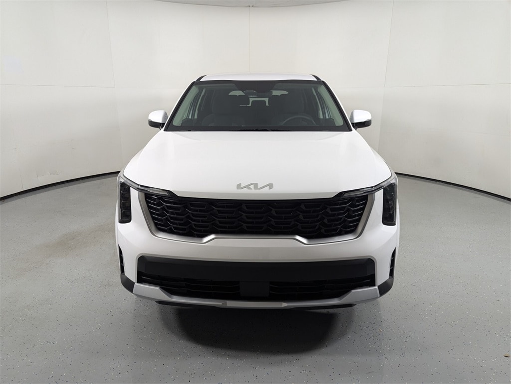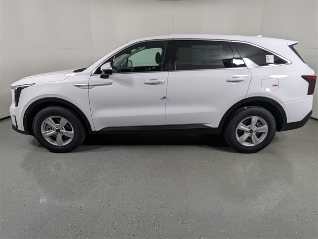 2025 Kia Glacial White Pearl Sorento 2.5L I4 DGI DOHC 16V LEV3-SULEV30 191hp LX 23/31 City/Highway MPG 17" Alloy Wheels, 3rd row seats: split-bench, 4-Wheel Disc Brakes, 6 Speakers, ABS brakes, Air Conditioning, Alloy wheels, AM/FM radio: SiriusXM, Apple CarPlay & Android Auto, Auto High-beam Headlights, Auto-Dimming Mirror w/HomeLink, Brake assist, Bumpers: body-color, Carpeted Floor Mats, Cloth Seat Trim, Delay-off headlights, Driver door bin, Driver vanity mirror, Dual front impact airbags, Dual front side impact airbags, Electronic Stability Control, Emergency communication system: 911 Connect, Exterior Parking Camera Rear, Four wheel independent suspension, Front anti-roll bar, Front Bucket Seats, Front Center Armrest, Front reading lights, Fully automatic headlights, Heated door mirrors, Illuminated entry, Knee airbag, Low tire pressure warning, Occupant sensing airbag, Outside temperature display, Overhead airbag, Overhead console, Panic alarm, Passenger door bin, Passenger vanity mirror, Power door mirrors, Power steering, Power windows, Radio data system, Radio: AM/FM Standard Sound System, Rear anti-roll bar, Rear reading lights, Rear seat center armrest, Rear side impact airbag, Rear window defroster, Rear window wiper, Remote keyless entry, Security system, Speed control, Speed-sensing steering, Split folding rear seat, Spoiler, Steering wheel mounted audio controls, Tachometer, Telescoping steering wheel, Tilt steering wheel, Traction control, Trip computer, Turn signal indicator mirrors, Variably intermittent wipers. 23/31 City/Highway MPG