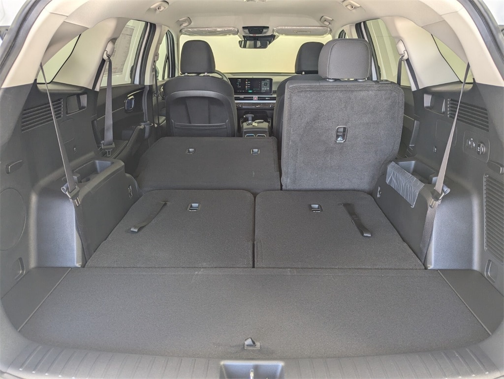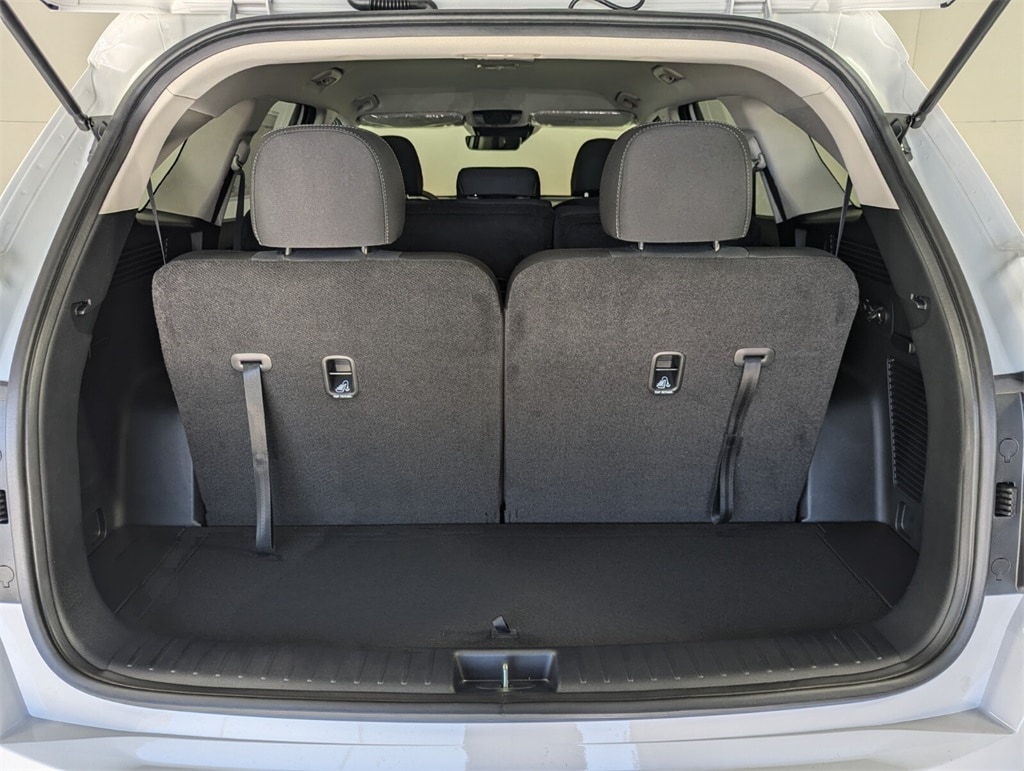 Features:17" Alloy Wheels, 3rd row seats: split-bench, 4-Wheel Disc Brakes, 6 Speakers, ABS brakes, Air Conditioning, Alloy wheels, AM/FM radio: SiriusXM, Apple CarPlay & Android Auto, Auto High-beam Headlights, Auto-Dimming Mirror w/HomeLink, Brake assist, Bumpers: body-color, Carpeted Floor Mats, Cloth Seat Trim, Delay-off headlights, Driver door bin, Driver vanity mirror, Dual front impact airbags, Dual front side impact airbags, Electronic Stability Control, Emergency communication system: 911 Connect, Exterior Parking Camera Rear, Four wheel independent suspension, Front anti-roll bar, Front Bucket Seats, Front Center Armrest, Front reading lights, Fully automatic headlights, Heated door mirrors, Illuminated entry, Knee airbag, Low tire pressure warning, Occupant sensing airbag, Outside temperature display, Overhead airbag, Overhead console, Panic alarm, Passenger door bin, Passenger vanity mirror, Power door mirrors, Power steering, Power windows, Radio data system, Radio: AM/FM Standard Sound System, Rear anti-roll bar, Rear reading lights, Rear seat center armrest, Rear side impact airbag, Rear window defroster, Rear window wiper, Remote keyless entry, Security system, Speed control, Speed-sensing steering, Split folding rear seat, Spoiler, Steering wheel mounted audio controls, Tachometer, Telescoping steering wheel, Tilt steering wheel, Traction control, Trip computer, Turn signal indicator mirrors, and Variably intermittent wipers. Dealer Discount of $2,413 off MSRP