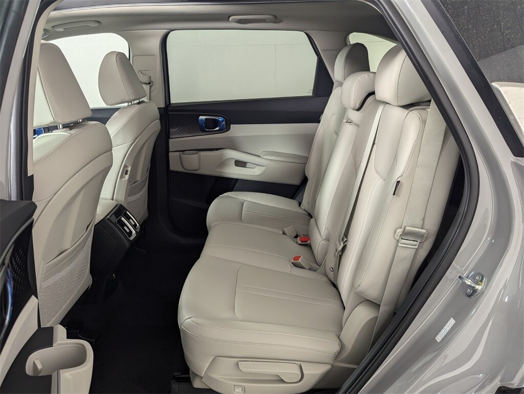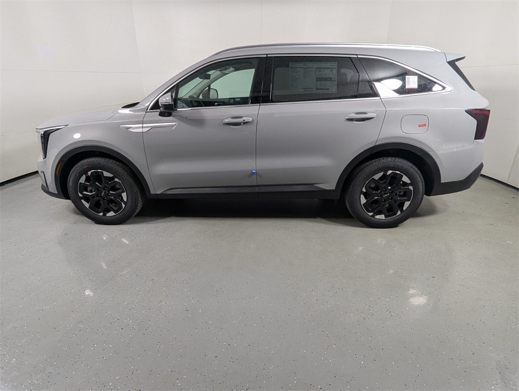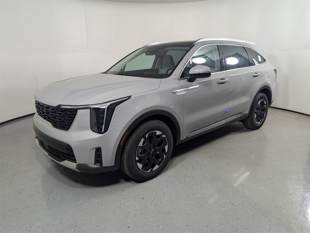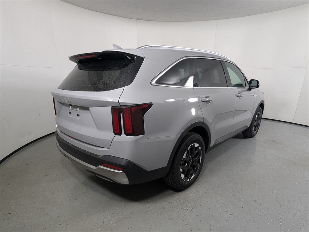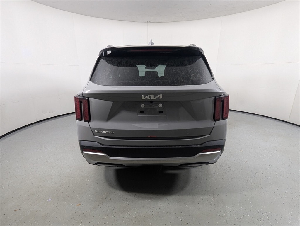 2025 Kia Wolf Gray Sorento 2.5L I4 DGI DOHC 16V LEV3-SULEV30 191hp S 23/31 City/Highway MPG 3rd row seats: split-bench, 4-Wheel Disc Brakes, 6 Speakers, ABS brakes, Air Conditioning, Alloy wheels, AM/FM radio: SiriusXM, Apple CarPlay & Android Auto, Auto High-beam Headlights, Auto-Dimming Mirror w/HomeLink, Automatic temperature control, Brake assist, Bumpers: body-color, Carpeted Floor Mats, Delay-off headlights, Driver door bin, Driver vanity mirror, Dual front impact airbags, Dual front side impact airbags, Electronic Stability Control, Emergency communication system: 911 Connect, Exterior Parking Camera Rear, Four wheel independent suspension, Front anti-roll bar, Front Bucket Seats, Front Center Armrest, Front dual zone A/C, Front reading lights, Fully automatic headlights, Heated door mirrors, Heated Front Bucket Seats, Heated front seats, Illuminated entry, Knee airbag, Leather Shift Knob, Leather steering wheel, LED Interior Lighting, Low tire pressure warning, Navigation System, Occupant sensing airbag, Outside temperature display, Overhead airbag, Overhead console, Panic alarm, Panoramic Power Sunroof w/Power Sunshade, Panoramic Sunroof Package, Passenger door bin, Passenger vanity mirror, Power door mirrors, Power driver seat, Power steering, Power windows, Radio data system, Radio: AM/FM Standard Sound System, Rear anti-roll bar, Rear reading lights, Rear seat center armrest, Rear side impact airbag, Rear window defroster, Rear window wiper, Remote keyless entry, Security system, Speed control, Speed-sensing steering, Split folding rear seat, Spoiler, Steering wheel mounted audio controls, SynTex Artificial Leather Seat Trim, Tachometer, Telescoping steering wheel, Tilt steering wheel, Traction control, Trip computer, Turn signal indicator mirrors, Variably intermittent wipers, Wheels: 18" Gloss Black Alloy. 23/31 City/Highway MPG