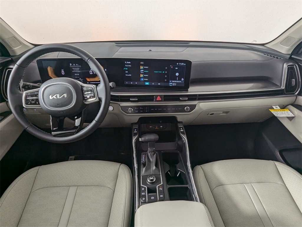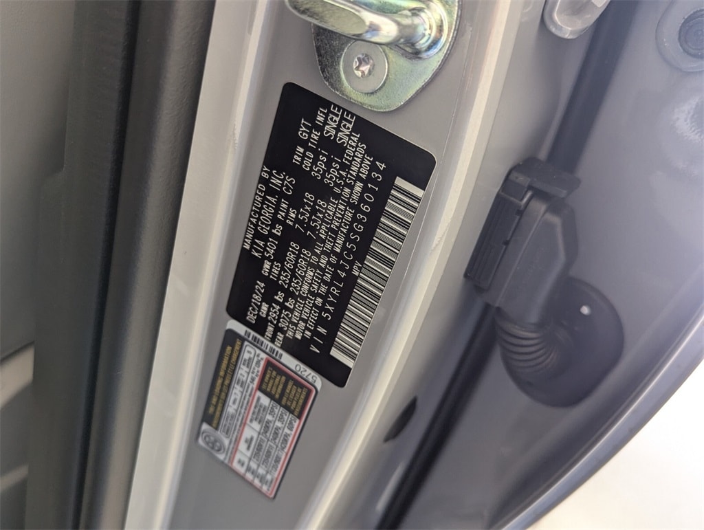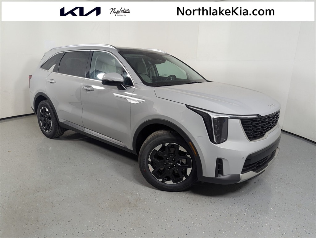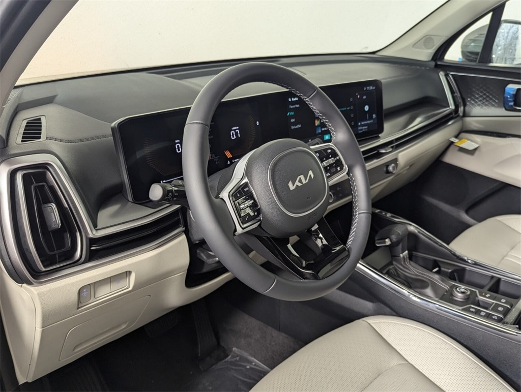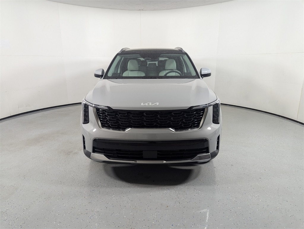 2025 Kia Wolf Gray Sorento 2.5L I4 DGI DOHC 16V LEV3-SULEV30 191hp S 23/31 City/Highway MPG 3rd row seats: split-bench, 4-Wheel Disc Brakes, 6 Speakers, ABS brakes, Air Conditioning, Alloy wheels, AM/FM radio: SiriusXM, Apple CarPlay & Android Auto, Auto High-beam Headlights, Auto-Dimming Mirror w/HomeLink, Automatic temperature control, Brake assist, Bumpers: body-color, Carpeted Floor Mats, Delay-off headlights, Driver door bin, Driver vanity mirror, Dual front impact airbags, Dual front side impact airbags, Electronic Stability Control, Emergency communication system: 911 Connect, Exterior Parking Camera Rear, Four wheel independent suspension, Front anti-roll bar, Front Bucket Seats, Front Center Armrest, Front dual zone A/C, Front reading lights, Fully automatic headlights, Heated door mirrors, Heated Front Bucket Seats, Heated front seats, Illuminated entry, Knee airbag, Leather Shift Knob, Leather steering wheel, LED Interior Lighting, Low tire pressure warning, Navigation System, Occupant sensing airbag, Outside temperature display, Overhead airbag, Overhead console, Panic alarm, Panoramic Power Sunroof w/Power Sunshade, Panoramic Sunroof Package, Passenger door bin, Passenger vanity mirror, Power door mirrors, Power driver seat, Power steering, Power windows, Radio data system, Radio: AM/FM Standard Sound System, Rear anti-roll bar, Rear reading lights, Rear seat center armrest, Rear side impact airbag, Rear window defroster, Rear window wiper, Remote keyless entry, Security system, Speed control, Speed-sensing steering, Split folding rear seat, Spoiler, Steering wheel mounted audio controls, SynTex Artificial Leather Seat Trim, Tachometer, Telescoping steering wheel, Tilt steering wheel, Traction control, Trip computer, Turn signal indicator mirrors, Variably intermittent wipers, Wheels: 18" Gloss Black Alloy. 23/31 City/Highway MPG