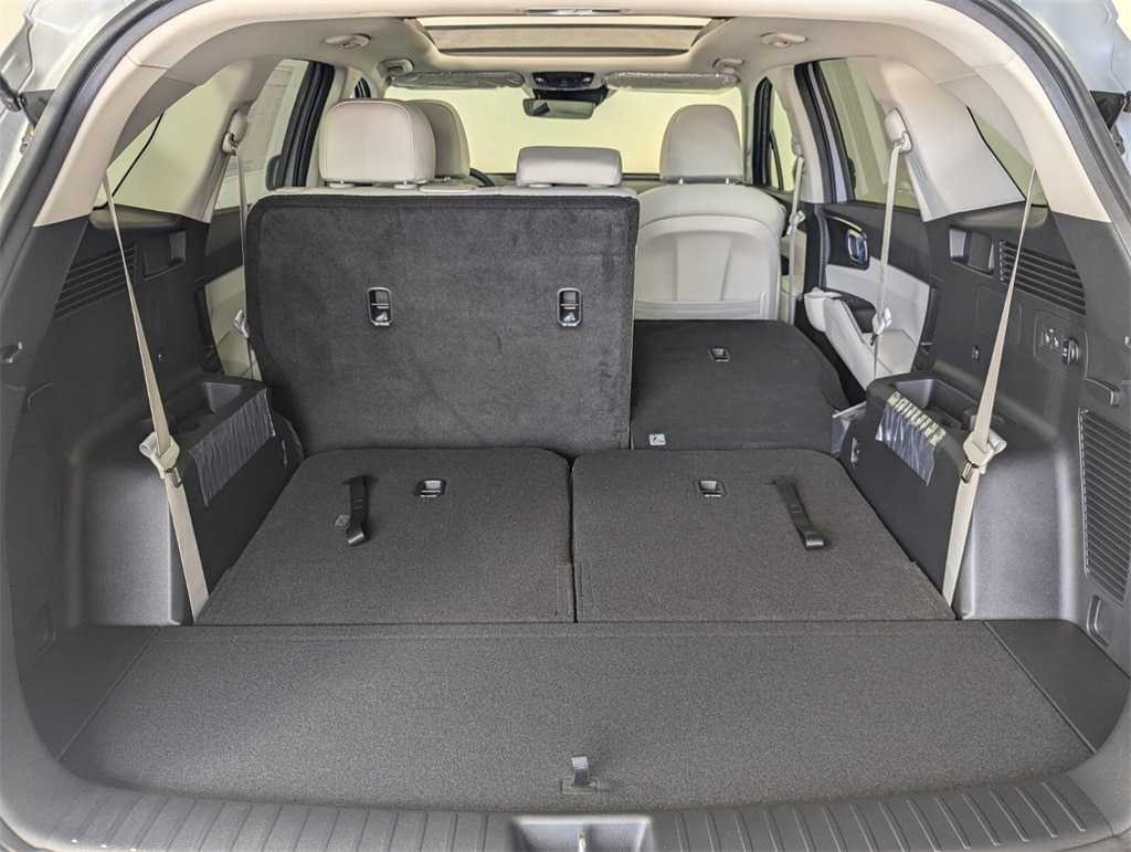 Features:Panoramic Sunroof Package (LED Interior Lighting and Panoramic Power Sunroof w/Power Sunshade), 3rd row seats: split-bench, 4-Wheel Disc Brakes, 6 Speakers, ABS brakes, Air Conditioning, Alloy wheels, AM/FM radio: SiriusXM, Apple CarPlay & Android Auto, Auto High-beam Headlights, Auto-Dimming Mirror w/HomeLink, Automatic temperature control, Brake assist, Bumpers: body-color, Carpeted Floor Mats, Delay-off headlights, Driver door bin, Driver vanity mirror, Dual front impact airbags, Dual front side impact airbags, Electronic Stability Control, Emergency communication system: 911 Connect, Exterior Parking Camera Rear, Four wheel independent suspension, Front anti-roll bar, Front Bucket Seats, Front Center Armrest, Front dual zone A/C, Front reading lights, Fully automatic headlights, Heated door mirrors, Heated Front Bucket Seats, Heated front seats, Illuminated entry, Knee airbag, Leather Shift Knob, Leather steering wheel, Low tire pressure warning, Navigation System, Occupant sensing airbag, Outside temperature display, Overhead airbag, Overhead console, Panic alarm, Passenger door bin, Passenger vanity mirror, Power door mirrors, Power driver seat, Power steering, Power windows, Radio data system, Radio: AM/FM Standard Sound System, Rear anti-roll bar, Rear reading lights, Rear seat center armrest, Rear side impact airbag, Rear window defroster, Rear window wiper, Remote keyless entry, Security system, Speed control, Speed-sensing steering, Split folding rear seat, Spoiler, Steering wheel mounted audio controls, SynTex Artificial Leather Seat Trim, Tachometer, Telescoping steering wheel, Tilt steering wheel, Traction control, Trip computer, Turn signal indicator mirrors, Variably intermittent wipers, and Wheels: 18" Gloss Black Alloy. Dealer Discount of $2,707 off MSRP