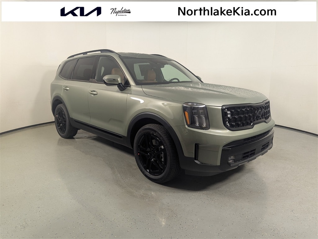 2025 Kia Jungle Green Telluride 3.8L V6 DOHC SX-Prestige X-Line 18/23 City/Highway MPG 10 Speakers, 3rd row seats: split-bench, 4-Wheel Disc Brakes, ABS brakes, Air Conditioning, Alloy wheels, AM/FM radio: SiriusXM, Apple CarPlay & Android Auto, Auto High-beam Headlights, Auto-dimming Rear-View mirror, Auto-leveling suspension, Automatic temperature control, Brake assist, Bumpers: body-color, Carpeted Floor Mats, Compass, Delay-off headlights, Driver door bin, Driver vanity mirror, Dual front impact airbags, Dual front side impact airbags, Electronic Stability Control, Emergency communication system: 911 Connect, Exterior Parking Camera Rear, Four wheel independent suspension, Front anti-roll bar, Front Bucket Seats, Front Center Armrest, Front dual zone A/C, Front fog lights, Front reading lights, Fully automatic headlights, Garage door transmitter: HomeLink, harman/kardon® Speakers, Heads-Up Display, Heated & Ventilated Front Bucket Seats, Heated door mirrors, Heated front seats, Heated rear seats, Heated steering wheel, Hybrid Cargo Net, Illuminated entry, Knee airbag, Leather Shift Knob, Leather steering wheel, Low tire pressure warning, Memory seat, Nappa Leather Seat Trim, Navigation System, Occupant sensing airbag, Outside temperature display, Overhead airbag, Overhead console, Panic alarm, Passenger door bin, Passenger vanity mirror, Power door mirrors, Power driver seat, Power Liftgate, Power moonroof, Power passenger seat, Power steering, Power windows, Radio data system, Radio: AM/FM Harman Kardon Audio System, Rain sensing wipers, Rear air conditioning, Rear anti-roll bar, Rear audio controls, Rear reading lights, Rear side impact airbag, Rear window defroster, Rear window wiper, Reclining 3rd row seat, Remote keyless entry, Security system, Speed control, Speed-sensing steering, Split folding rear seat, Spoiler, Steering wheel mounted audio controls, Tachometer, Telescoping steering wheel, Terracotta Interior Color Package, Tilt steering wheel, Traction control, Trip computer, Turn signal indicator mirrors, Variably intermittent wipers, Ventilated front seats, Ventilated rear seats, Wheels: 20" x 7.5" Black Finish X-LINE Exclusive.