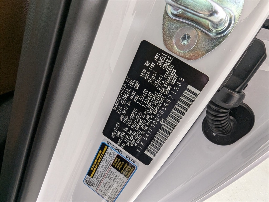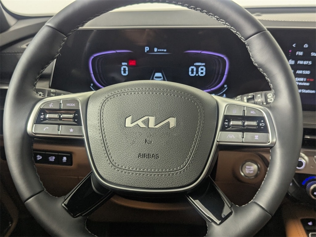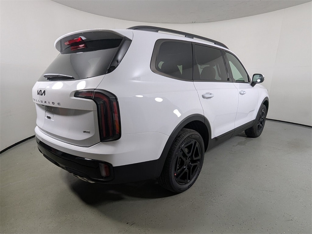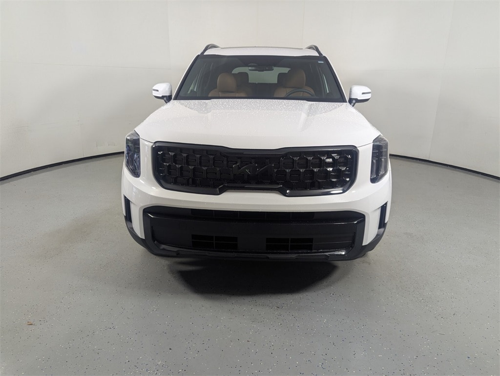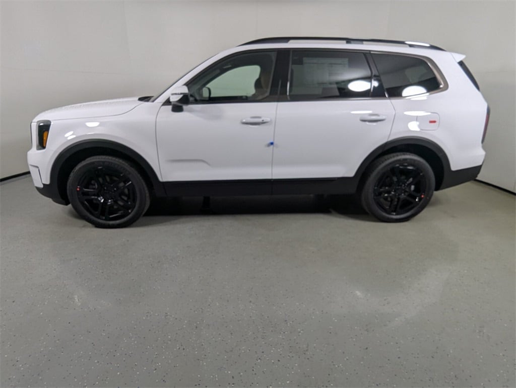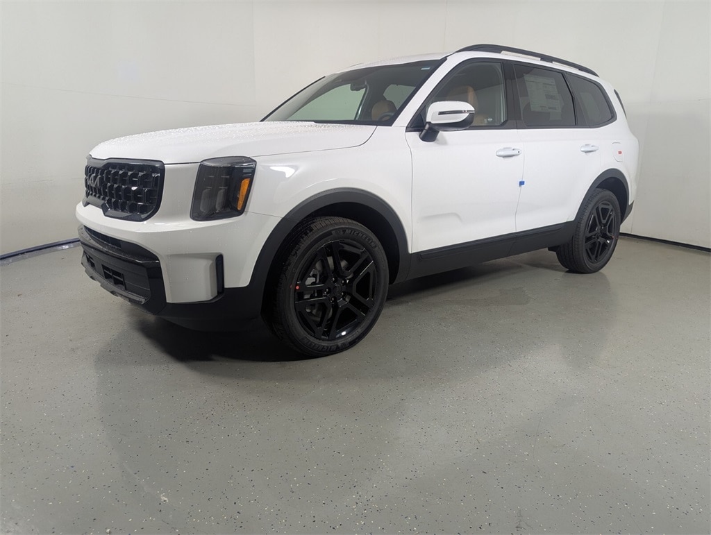 2025 Kia Glacial White Pearl Telluride 3.8L V6 DOHC EX X-Line 18/23 City/Highway MPG 3rd row seats: split-bench, 4-Wheel Disc Brakes, 6 Speakers, ABS brakes, Air Conditioning, Alloy wheels, AM/FM radio: SiriusXM, Apple CarPlay & Android Auto, Auto High-beam Headlights, Auto-dimming Rear-View mirror, Auto-leveling suspension, Automatic temperature control, Brake assist, Bumpers: body-color, Compass, Delay-off headlights, Driver door bin, Driver vanity mirror, Dual front impact airbags, Dual front side impact airbags, Electronic Stability Control, Emergency communication system: 911 Connect, Exterior Parking Camera Rear, Four wheel independent suspension, Front anti-roll bar, Front Bucket Seats, Front Center Armrest, Front dual zone A/C, Front reading lights, Fully automatic headlights, Heated & Ventilated Front Bucket Seats, Heated door mirrors, Heated front seats, Heated steering wheel, Illuminated entry, Knee airbag, Leather Seat Trim, Leather Shift Knob, Leather steering wheel, Low tire pressure warning, Navigation System, Occupant sensing airbag, Outside temperature display, Overhead airbag, Overhead console, Panic alarm, Passenger door bin, Passenger vanity mirror, Power door mirrors, Power driver seat, Power Liftgate, Power moonroof, Power passenger seat, Power steering, Power windows, Radio data system, Radio: AM/FM Display Audio System, Rear air conditioning, Rear anti-roll bar, Rear audio controls, Rear reading lights, Rear side impact airbag, Rear window defroster, Rear window wiper, Reclining 3rd row seat, Remote keyless entry, Security system, Speed control, Speed-sensing steering, Split folding rear seat, Spoiler, Steering wheel mounted audio controls, Tachometer, Telescoping steering wheel, Terracotta Interior Color Package, Tilt steering wheel, Traction control, Trip computer, Turn signal indicator mirrors, Variably intermittent wipers, Ventilated front seats, Wheels: 20" x 7.5" Black Finish X-LINE Exclusive.