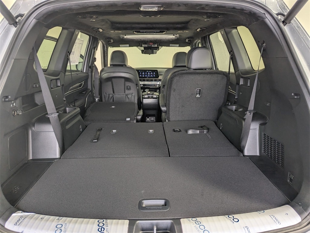 Features:10 Speakers, 3rd row seats: split-bench, 4-Wheel Disc Brakes, ABS brakes, Air Conditioning, All Weather Floor Mats, Alloy wheels, AM/FM radio: SiriusXM, Apple CarPlay & Android Auto, Auto High-beam Headlights, Auto-dimming Rear-View mirror, Auto-leveling suspension, Automatic temperature control, Brake assist, Bumpers: body-color, Carpeted Floor Mats, Compass, Delay-off headlights, Driver door bin, Driver vanity mirror, Dual front impact airbags, Dual front side impact airbags, Electronic Stability Control, Emergency communication system: 911 Connect, Exterior Parking Camera Rear, Four wheel independent suspension, Front anti-roll bar, Front Bucket Seats, Front Center Armrest, Front dual zone A/C, Front fog lights, Front reading lights, Fully automatic headlights, Garage door transmitter: HomeLink, harman/kardon® Speakers, Heads-Up Display, Heated & Ventilated Front Bucket Seats, Heated door mirrors, Heated front seats, Heated rear seats, Heated steering wheel, Illuminated entry, Knee airbag, Leather Shift Knob, Leather steering wheel, Low tire pressure warning, Memory seat, Nappa Leather Seat Trim, Navigation System, Occupant sensing airbag, Outside temperature display, Overhead airbag, Overhead console, Panic alarm, Passenger door bin, Passenger vanity mirror, Power door mirrors, Power driver seat, Power Liftgate, Power moonroof, Power passenger seat, Power steering, Power windows, Radio data system, Radio: AM/FM Harman Kardon Audio System, Rain sensing wipers, Rear air conditioning, Rear anti-roll bar, Rear audio controls, Rear reading lights, Rear side impact airbag, Rear window defroster, Rear window wiper, Reclining 3rd row seat, Remote keyless entry, Security system, Speed control, Speed-sensing steering, Split folding rear seat, Spoiler, Steering wheel mounted audio controls, Tachometer, Tele