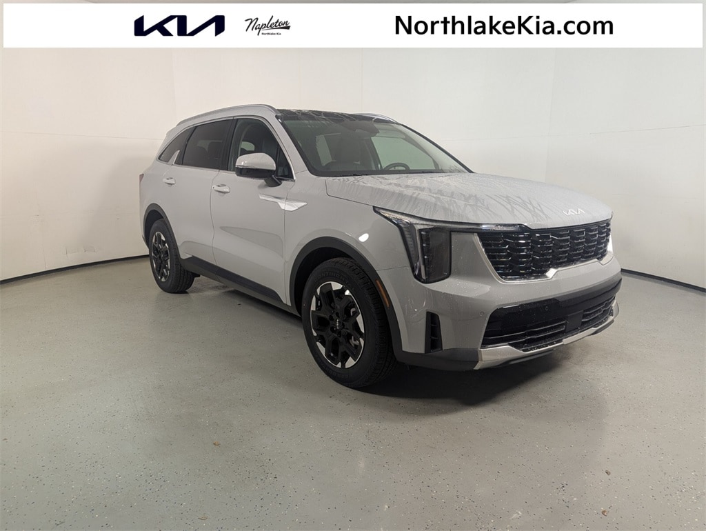 2026 Kia Wolf Gray Sorento 2.5L I4 DGI DOHC 16V LEV3-SULEV30 191hp S 23/31 City/Highway MPG 3rd row seats: split-bench, 4-Wheel Disc Brakes, 6 Speakers, ABS brakes, Air Conditioning, Alloy wheels, AM/FM radio: SiriusXM, Apple CarPlay & Android Auto, Auto High-beam Headlights, Auto-Dimming Mirror w/HomeLink, Automatic temperature control, Brake assist, Bumpers: body-color, Carpeted Floor Mats, Delay-off headlights, Driver door bin, Driver vanity mirror, Dual front impact airbags, Dual front side impact airbags, Electronic Stability Control, Emergency communication system: 911 Connect, Exterior Parking Camera Rear, Four wheel independent suspension, Front anti-roll bar, Front Bucket Seats, Front Center Armrest, Front dual zone A/C, Front reading lights, Full-Length One-Touch Panoroof w/Sliding Sunshade, Fully automatic headlights, Heated door mirrors, Heated Front Bucket Seats, Heated front seats, Illuminated entry, Knee airbag, Leather Shift Knob, Leather steering wheel, LED Interior Lighting, Low tire pressure warning, Occupant sensing airbag, Outside temperature display, Overhead airbag, Overhead console, Panic alarm, Passenger door bin, Passenger vanity mirror, Power door mirrors, Power driver seat, Power steering, Power windows, Radio data system, Radio: AM/FM Standard Sound System, Rear anti-roll bar, Rear reading lights, Rear seat center armrest, Rear side impact airbag, Rear window defroster, Rear window wiper, Remote keyless entry, S Panoramic Sunroof Package, Security system, Speed control, Speed-sensing steering, Split folding rear seat, Spoiler, Steering wheel mounted audio controls, SynTex Artificial Leather Seat Trim, Tachometer, Telescoping steering wheel, Tilt steering wheel, Traction control, Trip computer, Turn signal indicator mirrors, Variably intermittent wipers, Wheels: 18" Gloss Black Alloy. 23/31 City/Highway MPG