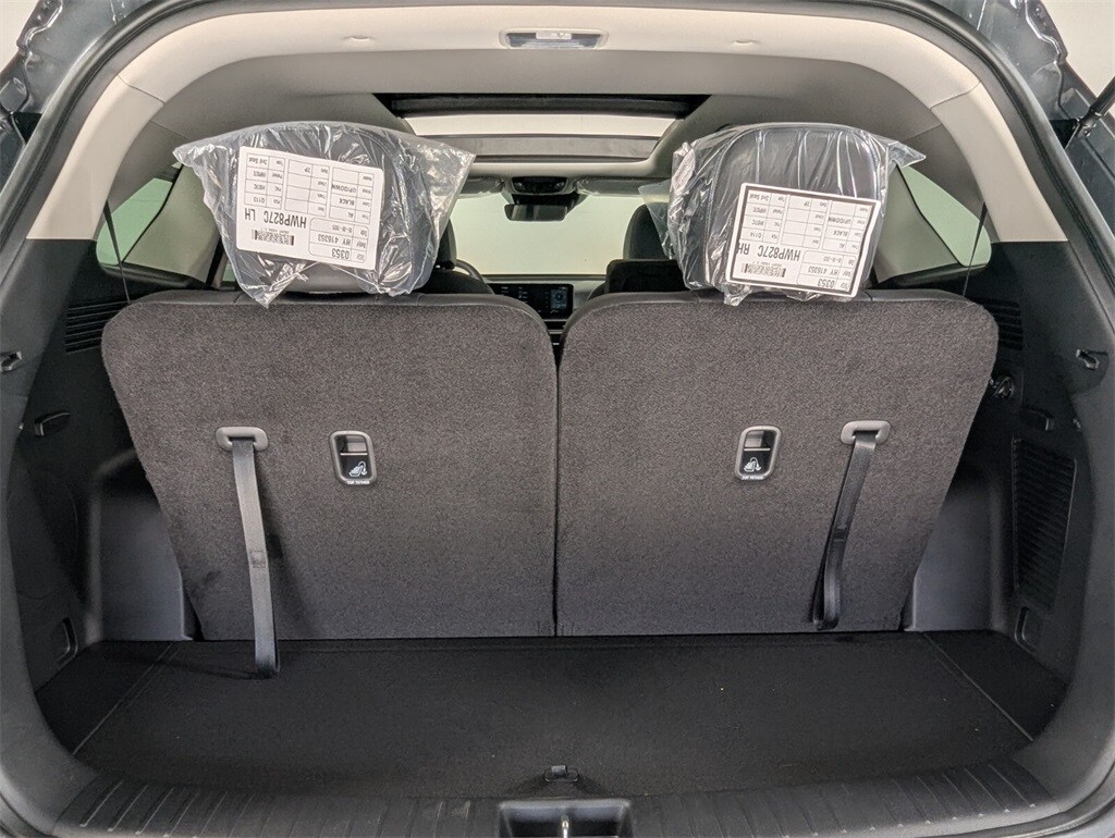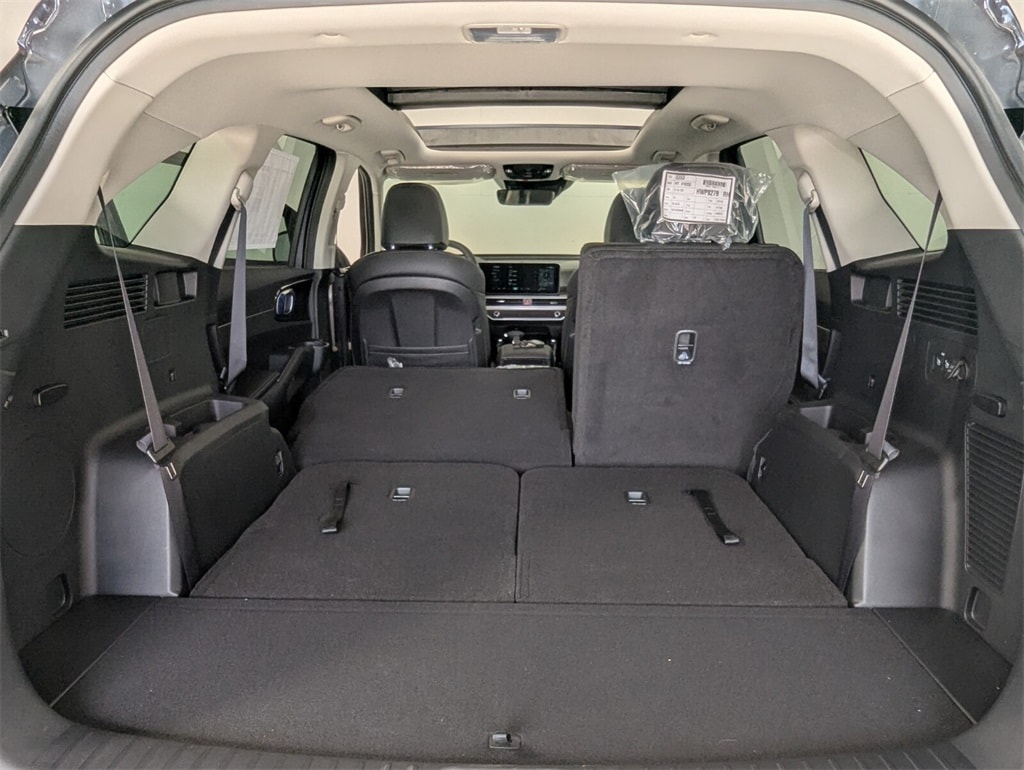 Features:S Panoramic Sunroof Package (Full-Length One-Touch Panoroof w/Sliding Sunshade and LED Interior Lighting), 3rd row seats: split-bench, 4-Wheel Disc Brakes, 6 Speakers, ABS brakes, Air Conditioning, Alloy wheels, AM/FM radio: SiriusXM, Apple CarPlay & Android Auto, Auto High-beam Headlights, Auto-Dimming Mirror w/HomeLink, Automatic temperature control, Brake assist, Bumpers: body-color, Cargo Cover, Cargo Net, Cargo Tray, Carpeted Floor Mats, Delay-off headlights, Driver door bin, Driver vanity mirror, Dual front impact airbags, Dual front side impact airbags, Electronic Stability Control, Emergency communication system: 911 Connect, Exterior Parking Camera Rear, Four wheel independent suspension, Front anti-roll bar, Front Bucket Seats, Front Center Armrest, Front dual zone A/C, Front reading lights, Fully automatic headlights, Heated door mirrors, Heated Front Bucket Seats, Heated front seats, Illuminated entry, Knee airbag, Leather Shift Knob, Leather steering wheel, Low tire pressure warning, Occupant sensing airbag, Outside temperature display, Overhead airbag, Overhead console, Panic alarm, Passenger door bin, Passenger vanity mirror, Power door mirrors, Power driver seat, Power steering, Power windows, Radio data system, Radio: AM/FM Standard Sound System, Rear anti-roll bar, Rear reading lights, Rear seat center armrest, Rear side impact airbag, Rear window defroster, Rear window wiper, Remote keyless entry, Security system, Speed control, Speed-sensing steering, Split folding rear seat, Spoiler, Steering wheel mounted audio controls, SynTex Artificial Leather Seat Trim, Tachometer, Telescoping steering wheel, Tilt steering wheel, Traction control, Trip computer, Turn signal indicator mirrors, Variably intermittent wipers, and Wheels: 18" Gloss Black Alloy.
