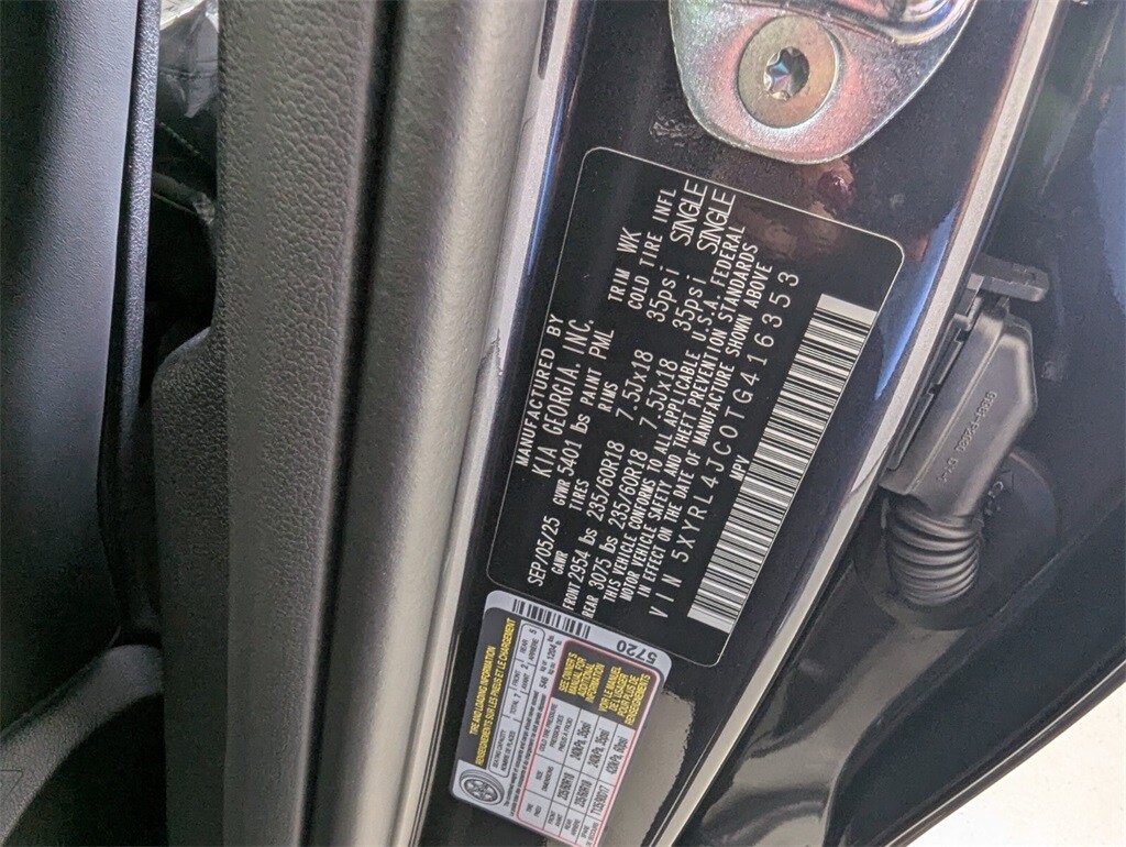 2026 Kia Gray Sorento 2.5L I4 DGI DOHC 16V LEV3-SULEV30 191hp S 23/31 City/Highway MPG 3rd row seats: split-bench, 4-Wheel Disc Brakes, 6 Speakers, ABS brakes, Air Conditioning, Alloy wheels, AM/FM radio: SiriusXM, Apple CarPlay & Android Auto, Auto High-beam Headlights, Auto-Dimming Mirror w/HomeLink, Automatic temperature control, Brake assist, Bumpers: body-color, Cargo Cover, Cargo Net, Cargo Tray, Carpeted Floor Mats, Delay-off headlights, Driver door bin, Driver vanity mirror, Dual front impact airbags, Dual front side impact airbags, Electronic Stability Control, Emergency communication system: 911 Connect, Exterior Parking Camera Rear, Four wheel independent suspension, Front anti-roll bar, Front Bucket Seats, Front Center Armrest, Front dual zone A/C, Front reading lights, Full-Length One-Touch Panoroof w/Sliding Sunshade, Fully automatic headlights, Heated door mirrors, Heated Front Bucket Seats, Heated front seats, Illuminated entry, Knee airbag, Leather Shift Knob, Leather steering wheel, LED Interior Lighting, Low tire pressure warning, Occupant sensing airbag, Outside temperature display, Overhead airbag, Overhead console, Panic alarm, Passenger door bin, Passenger vanity mirror, Power door mirrors, Power driver seat, Power steering, Power windows, Radio data system, Radio: AM/FM Standard Sound System, Rear anti-roll bar, Rear reading lights, Rear seat center armrest, Rear side impact airbag, Rear window defroster, Rear window wiper, Remote keyless entry, S Panoramic Sunroof Package, Security system, Speed control, Speed-sensing steering, Split folding rear seat, Spoiler, Steering wheel mounted audio controls, SynTex Artificial Leather Seat Trim, Tachometer, Telescoping steering wheel, Tilt steering wheel, Traction control, Trip computer, Turn signal indicator mirrors, Variably intermittent wipers, Wheels: 18" Gloss Black Alloy. 23/31 City/Highway MPG