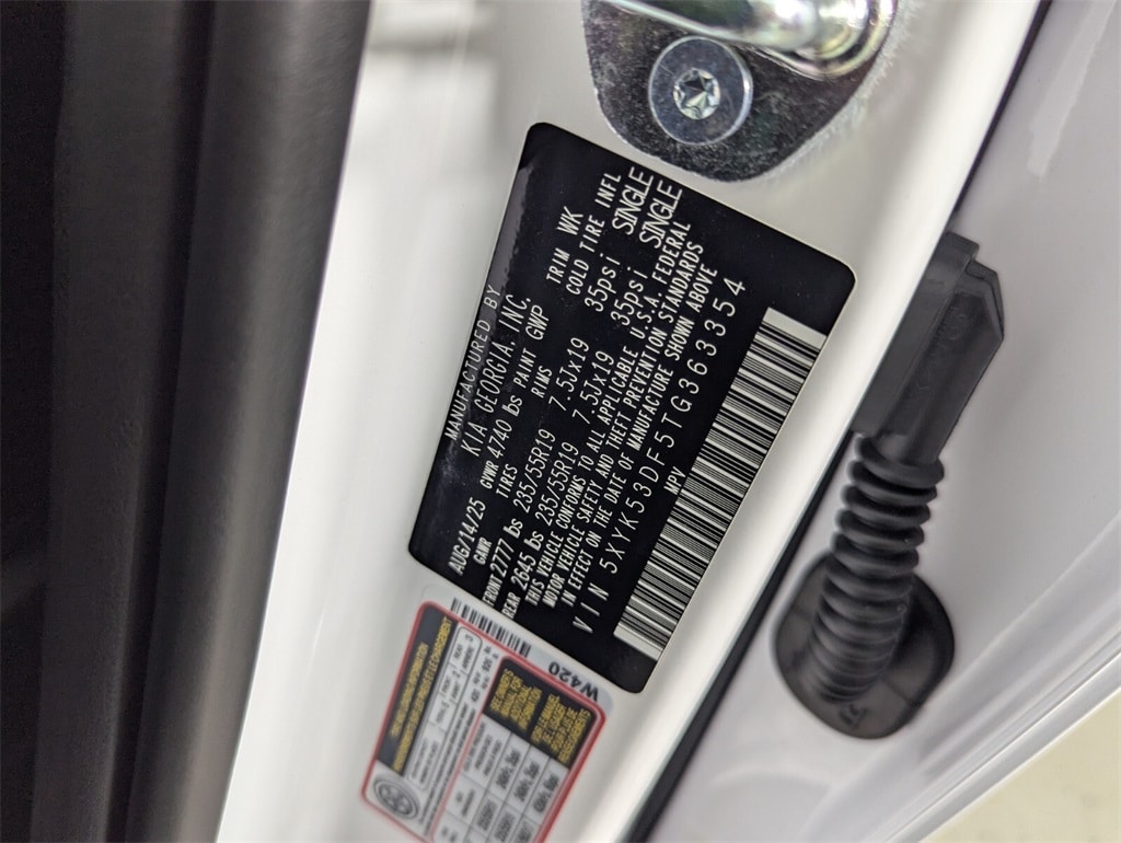 Features:4-Wheel Disc Brakes, 8 Speakers, ABS brakes, Air Conditioning, All Weather Mats, Alloy wheels, AM/FM radio: SiriusXM, Auto High-beam Headlights, Automatic temperature control, Brake assist, Bumpers: body-color, Cargo Cover, Cargo Mat, Cargo Tray, Compass, Delay-off headlights, Driver door bin, Driver vanity mirror, Dual front impact airbags, Dual front side impact airbags, Electronic Stability Control, Emergency communication system: Kia Connect (includes 1 year free trial), Four wheel independent suspension, Front anti-roll bar, Front Bucket Seats, Front Center Armrest, Front dual zone A/C, Front fog lights, Front reading lights, Fully automatic headlights, harman/kardon® Speakers, Heated & Ventilated Front Bucket Seats, Heated door mirrors, Heated front seats, Heated steering wheel, Illuminated entry, Leather Shift Knob, Leather steering wheel, Low tire pressure warning, Memory seat, Mud Guards, Navigation System, Occupant sensing airbag, Outside temperature display, Overhead airbag, Overhead console, Panic alarm, Passenger door bin, Passenger vanity mirror, Power door mirrors, Power driver seat, Power Liftgate, Power moonroof, Power passenger seat, Power steering, Power windows, Radio: AM/FM/HD Premium Audio System, Rain sensing wipers, Rear anti-roll bar, Rear reading lights, Rear seat center armrest, Rear side impact airbag, Rear window defroster, Rear window wiper, Remote keyless entry, Security system, Speed control, Speed-sensing steering, Split folding rear seat, Spoiler, Steering wheel mounted audio controls, SynTex Premium Leatherette Seat Trim, Tachometer, Telescoping steering wheel, Tilt steering wheel, Traction control, Trip computer, Turn signal indicator mirrors, Variably intermittent wipers, Ventilated front seats, and Wheels: 19" x 7.5J Alloy. Dealer Discount of $1,952 off MSRP