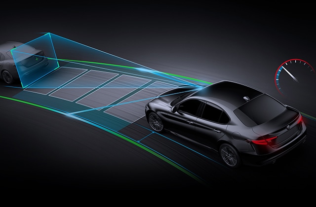 Driver Attention Alert, Active Blind Spot Assist, Adaptive Cruise Control, and Traffic Sign Recognition are all more valuable safety features offered in the Giulia's Active Driver Assistance Package. Driver Attention Alert is a safety feature that utilizes a highly advanced algorithm that actively monitors driver attentiveness and can give subtle alerts to help maintain focus and avoid distracted driving. Active Blind Spot Assist is a great safety feature that provides a visual warning to drivers when another vehicle is in the Giulia's blind spot. The Active Blind Spot Assist safety features helps to reduce the likelihood of rear-end collisions and accidents when changing lanes. Like mentioned before, Adaptive Cruise Control is a safety feature that uses various sensors and a camera to detect preceding traffic. Adaptive Cruise Control allows drivers to set a specific speed and distance from the vehicle ahead. When slower traffic is detected, the Adaptive Cruise Control will automatically adjust to the pre-selected distance using throttle control and limited braking. Traffic Sign Recognition is another useful safety feature that keeps drivers aware of the speed limit by using camera and navigation software to display the current speed limit on the Driver Information Digital Cluster Display.