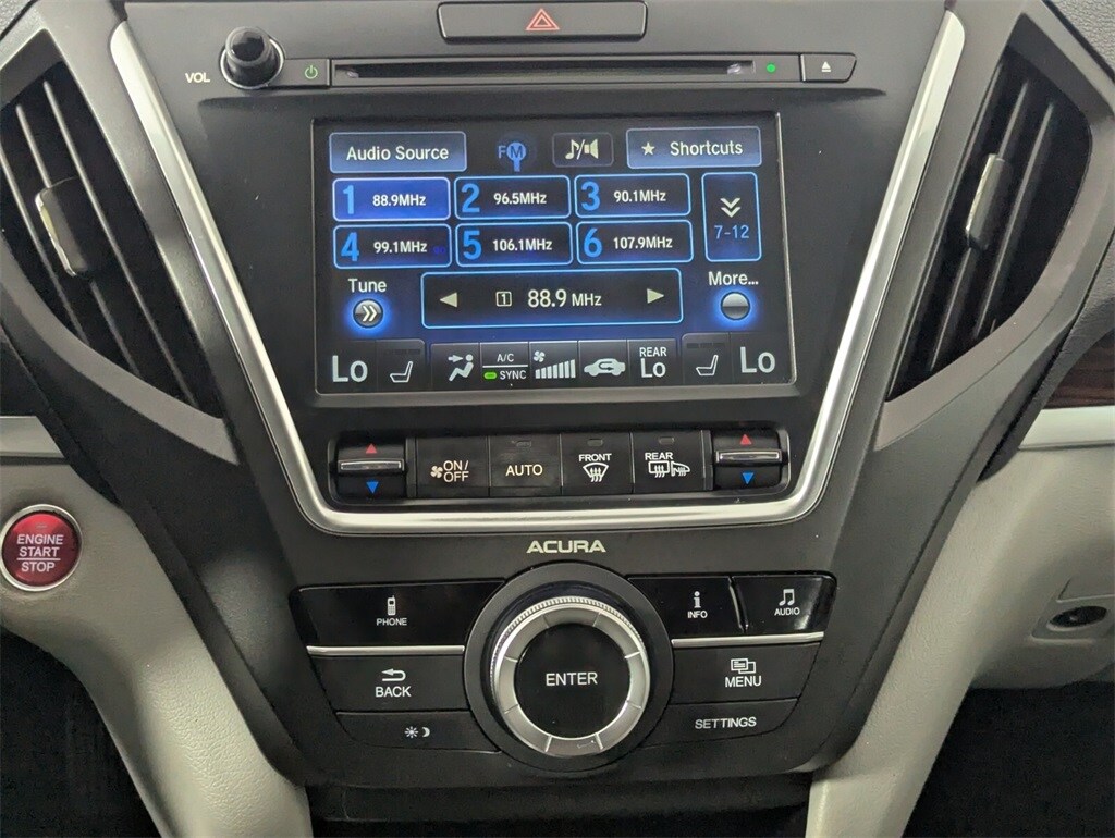 Features: 3rd row seats: split-bench, 4-Wheel Disc Brakes, 4.33 Axle Ratio, 8 Speakers, ABS brakes, Air Conditioning, Alloy wheels, AM/FM radio: SiriusXM, Anti-whiplash front head restraints, Auto tilt-away steering wheel, Auto-dimming Rear-View mirror, Automatic temperature control, Brake assist, Bumpers: body-color, CD player, Compass, Delay-off headlights, Driver door bin, Driver vanity mirror, Dual front impact airbags, Dual front side impact airbags, Electronic Stability Control, Exterior Parking Camera Rear, Four wheel independent suspension, Front anti-roll bar, Front Bucket Seats, Front Center Armrest w/Storage, Front dual zone A/C, Front reading lights, Garage door transmitter: HomeLink, Heated door mirrors, Heated front seats, Heated Front Sport Seats, Illuminated entry, Knee airbag, Leather-Trimmed Interior, Low tire pressure warning, Memory seat, Occupant sensing airbag, Outside temperature display, Overhead airbag, Overhead console, Panic alarm, Passenger door bin, Passenger vanity mirror, Power door mirrors, Power driver seat, Power Liftgate, Power moonroof, Power passenger seat, Power steering, Power windows, Radio data system, Radio: AM/FM Acura Premium Sound System, Rear air conditioning, Rear anti-roll bar, Rear reading lights, Rear seat center armrest, Rear window defroster, Rear window wiper, Remote keyless entry, Security system, Speed control, Speed-sensing steering, Speed-Sensitive Wipers, Split folding rear seat, Spoiler, Steering wheel memory, Steering wheel mounted audio controls, Tachometer, Telescoping steering wheel, Tilt steering wheel, Traction control, Trip computer, Turn signal indicator mirrors, Variably intermittent wipers, and Wheels: 18" x 8.0" Machine-Finished Aluminum Alloy.