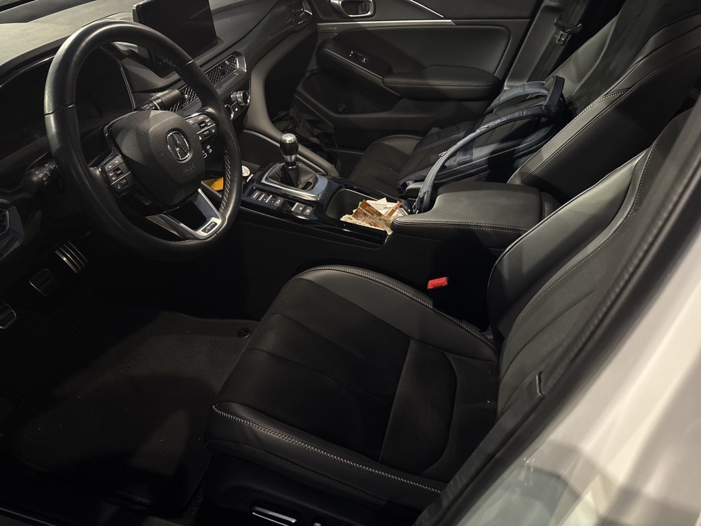 This Integra is well equipped with 16 Speakers, 18" Aluminum Alloy Wheels, 4-Wheel Disc Brakes, ABS brakes, Adaptive suspension, Air Conditioning, Alloy wheels, AM/FM radio: SiriusXM, Apple CarPlay/Android Auto, Auto High-beam Headlights, Auto-dimming Rear-View mirror, Automatic temperature control, Brake assist, Bumpers: body-color, Compass, Delay-off headlights, Driver door bin, Driver vanity mirror, Dual front impact airbags, Dual front side impact airbags, Electronic Stability Control, Emergency communication system: AcuraLink (subscription required), Four wheel independent suspension, Front anti-roll bar, Front Bucket Seats, Front Center Armrest, Front dual zone A/C, Front fog lights, Front reading lights, Fully automatic headlights, Heads-Up Display, Heated door mirrors, Heated Front Bucket Seats, Heated front seats, Illuminated entry, Knee airbag, Lane departure: Lane Keeping Assist System (LKAS) active, Leather Shift Knob, Leather steering wheel, Low tire pressure warning, Memory seat, Microsuede-Trimmed Front Seats w/Exclusive Stitch, Occupant sensing airbag, Outside temperature display, Overhead airbag, Overhead console, Panic alarm, Passenger door bin, Passenger vanity mirror, Power door mirrors, Power driver seat, Power moonroof, Power passenger seat, Power steering, Power windows, Radio data system, Radio: ELS Studio 3D Premium Audio System, Rain sensing wipers, Rear anti-roll bar, Rear seat center armrest, Rear side impact airbag, Rear window defroster, Remote keyless entry, Security system, Speed control, Speed-sensing steering, Speed-Sensitive Wipers, Split folding rear seat, Spoiler, Steering wheel mounted audio controls, Tachometer, Telescoping steering wheel, Tilt steering wheel, Traction control, Trip computer, Turn signal indicator mirrors, and Variably intermittent wipers.