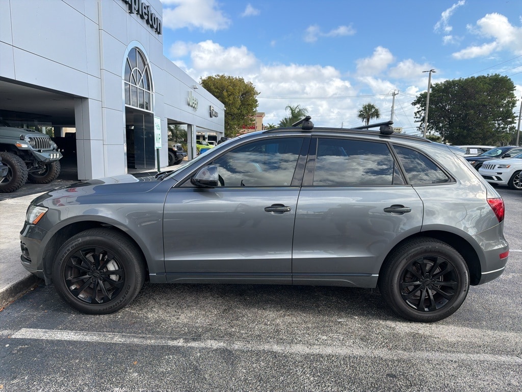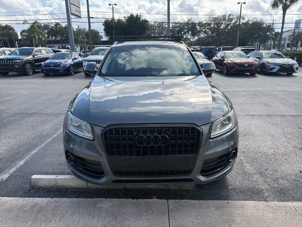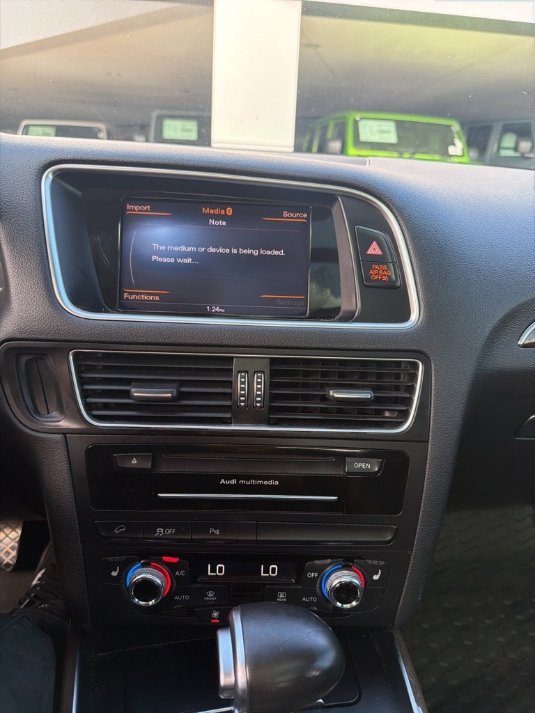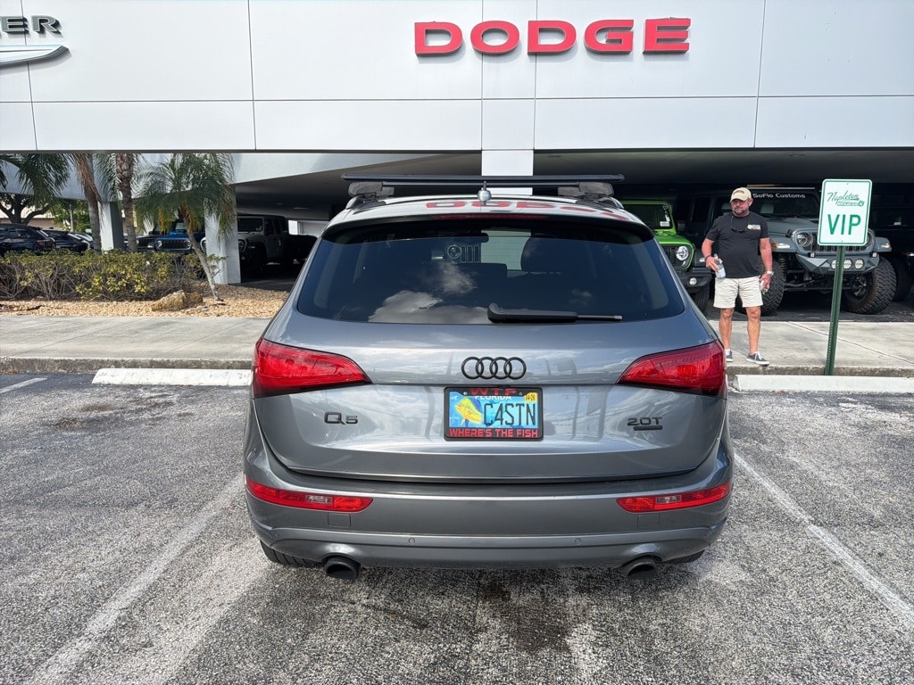 This Q5 is well equipped with Black Leather, 10 Speakers, 2.84 Axle Ratio, 4-Wheel Disc Brakes, ABS brakes, Air Conditioning, Alloy wheels, AM/FM radio, Automatic temperature control, Brake assist, Bumpers: body-color, CD player, Delay-off headlights, Driver door bin, Driver vanity mirror, Dual front impact airbags, Dual front side impact airbags, Electronic Stability Control, Four wheel independent suspension, Front anti-roll bar, Front Bucket Seats, Front Center Armrest, Front dual zone A/C, Front fog lights, Front reading lights, Garage door transmitter: HomeLink, Genuine wood console insert, Genuine wood dashboard insert, Genuine wood door panel insert, Heated door mirrors, High intensity discharge headlights: Xenon plus, Illuminated entry, Leather Seating Surfaces, Leather Shift Knob, Leather steering wheel, Low tire pressure warning, Occupant sensing airbag, Outside temperature display, Overhead airbag, Overhead console, Panic alarm, Passenger door bin, Passenger vanity mirror, Power door mirrors, Power driver seat, Power Front Bucket Seats, Power Liftgate, Power passenger seat, Power steering, Power windows, Radio data system, Radio: Audi MMI Plus System w/6.5" Color Screen, Rain sensing wipers, Rear air conditioning, Rear anti-roll bar, Rear fog lights, Rear reading lights, Rear seat center armrest, Rear window defroster, Rear window wiper, Remote keyless entry, Roof rack, Security system, Speed control, Speed-sensing steering, Speed-Sensitive Wipers, Split folding rear seat, Spoiler, Steering wheel mounted audio controls, Tachometer, Telescoping steering wheel, Tilt steering wheel, Traction control, Trip computer, Turn signal indicator mirrors, Variably intermittent wipers, and Wheels: 8.0J x 18" 5-V-Spoke-Design.