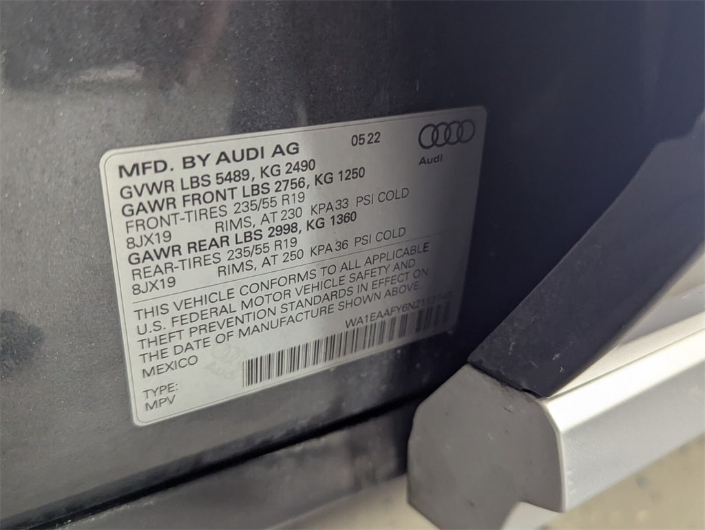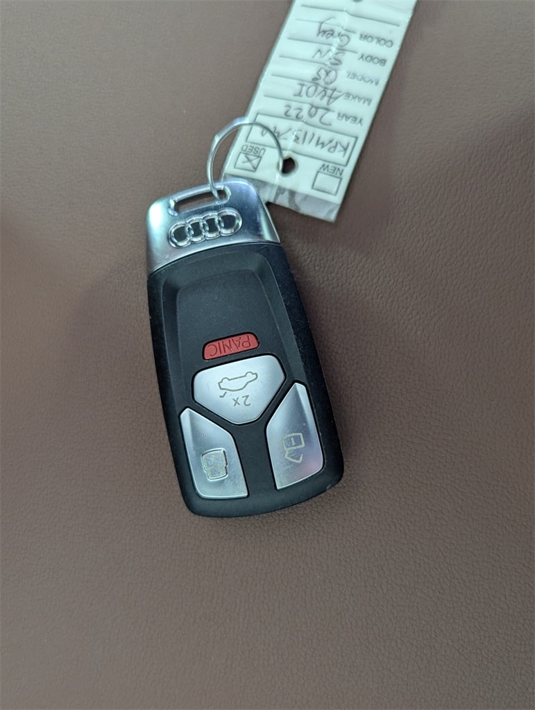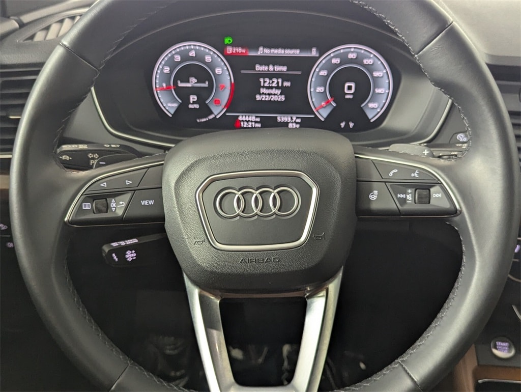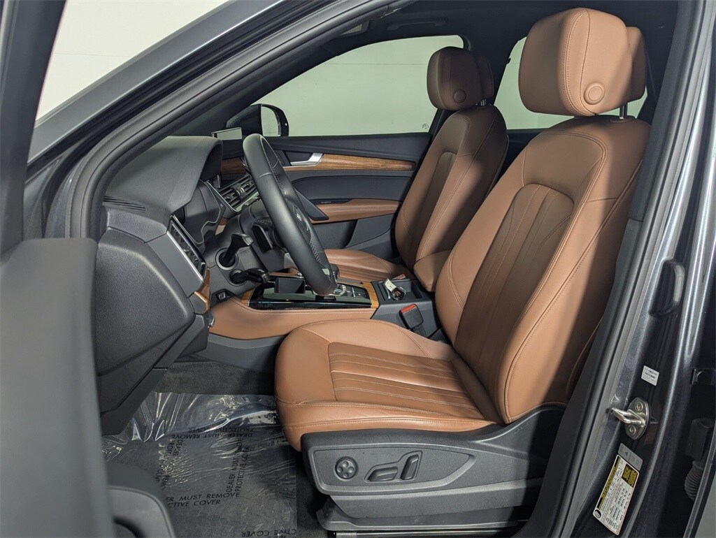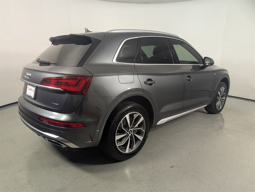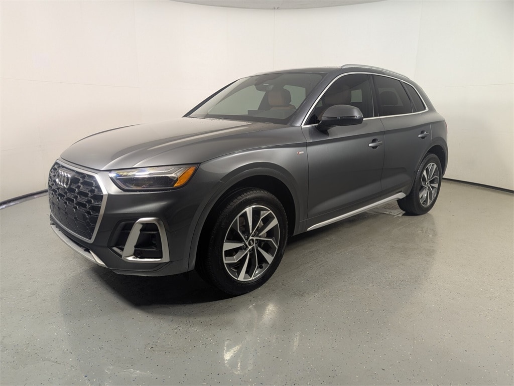 2022 Audi Q5 45 S line Premium quattro Beautifully finished in Florett Silver Metallic with Okapi Brown Leather interior. 2.0L Turbocharged 4D Sport Utility quattro 7-Speed Automatic S tronic **ONE OWNER**, **LOCAL TRADE**, **CLEAN CARFAX**, **MUST SEE TO APPRECIATE**, **EXTRA CLEAN**, Okapi Brown w/Leather Seating Surfaces, 10 Speakers, 4-Wheel Disc Brakes, 5.302 Axle Ratio, ABS brakes, Air Conditioning, Alloy wheels, AM/FM radio, Auto High-beam Headlights, Auto-dimming Rear-View mirror, Automatic temperature control, Brake assist, Bumpers: body-color, Compass, Delay-off headlights, Driver door bin, Driver vanity mirror, Dual front impact airbags, Dual front side impact airbags, Electronic Stability Control, Emergency communication system: Audi connect CARE, Exterior Parking Camera Rear, Four wheel independent suspension, Front anti-roll bar, Front Bucket Seats, Front Center Armrest, Front dual zone A/C, Front fog lights, Front reading lights, Garage door transmitter: HomeLink, Genuine wood console insert, Genuine wood dashboard insert, Genuine wood door panel insert, Heated 8-Way Power Front Bucket Seats, Heated door mirrors, Heated front seats, Illuminated entry, Leather Seating Surfaces, Leather Shift Knob, Low tire pressure warning, Occupant sensing airbag, Outside temperature display, Overhead airbag, Overhead console, Panic alarm, Passenger door bin, Passenger vanity mirror, Power door mirrors, Power driver seat, Power Liftgate, Power passenger seat, Power steering, Power windows, Radio data system, Radio: Audi Sound System, Rain sensing wipers, Rear air conditioning, Rear anti-roll bar, Rear fog lights, Rear reading lights, Rear seat center armrest, Rear window defroster, Rear window wiper, Remote keyless entry, Roof rack, Security system, Speed control, Speed-sensing steering, Speed-Sensitive Wipers, Split folding rear seat, Spoiler, Steering wheel mounted audio controls, Tachometer, Telescoping steering wheel, Tilt steering wheel, Traction control, Trip computer, Turn signal indicator mirrors, Variably intermittent wipers, Wheels: 18" 5-Arm-Star Design, Okapi Brown w/Leather Seating Surfaces. CARFAX One-Owner. Clean CARFAX. Priced below KBB Fair Purchase Price! 23/28 City/Highway MPG