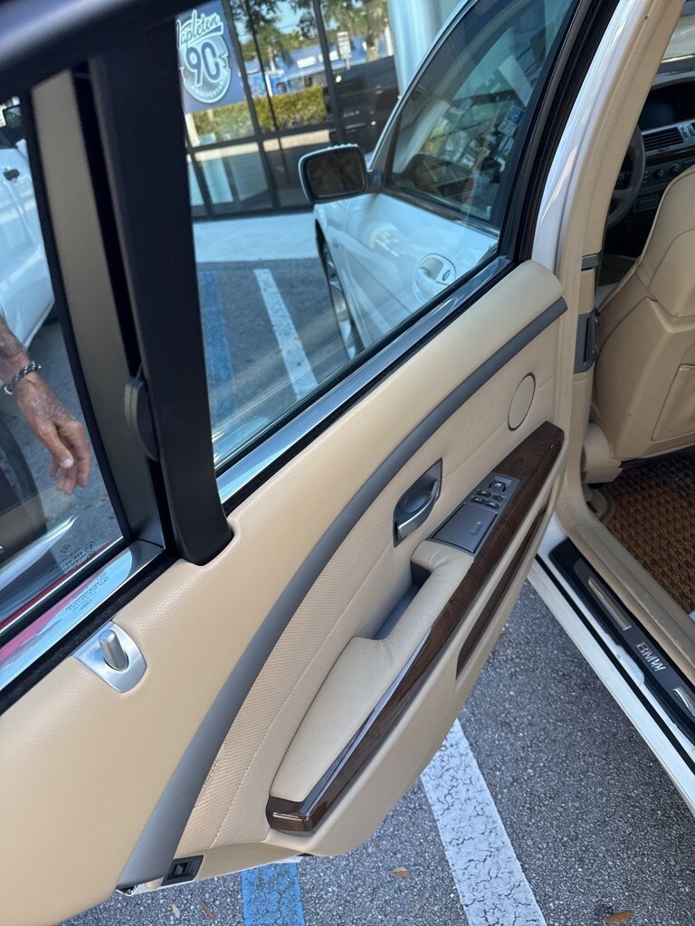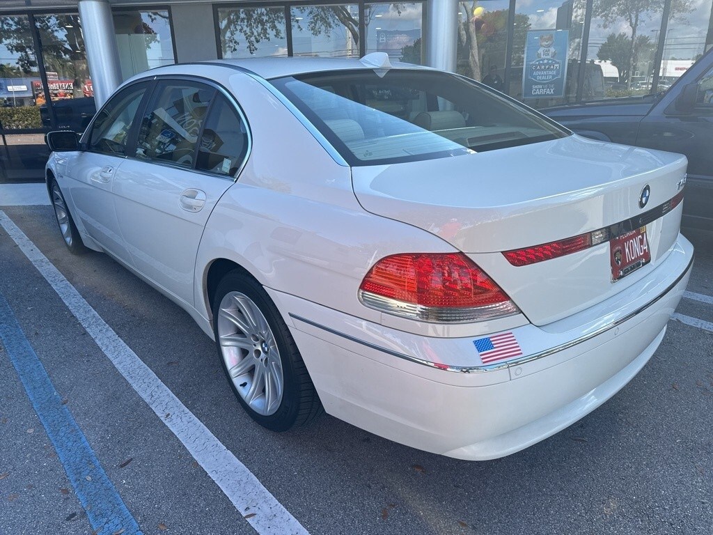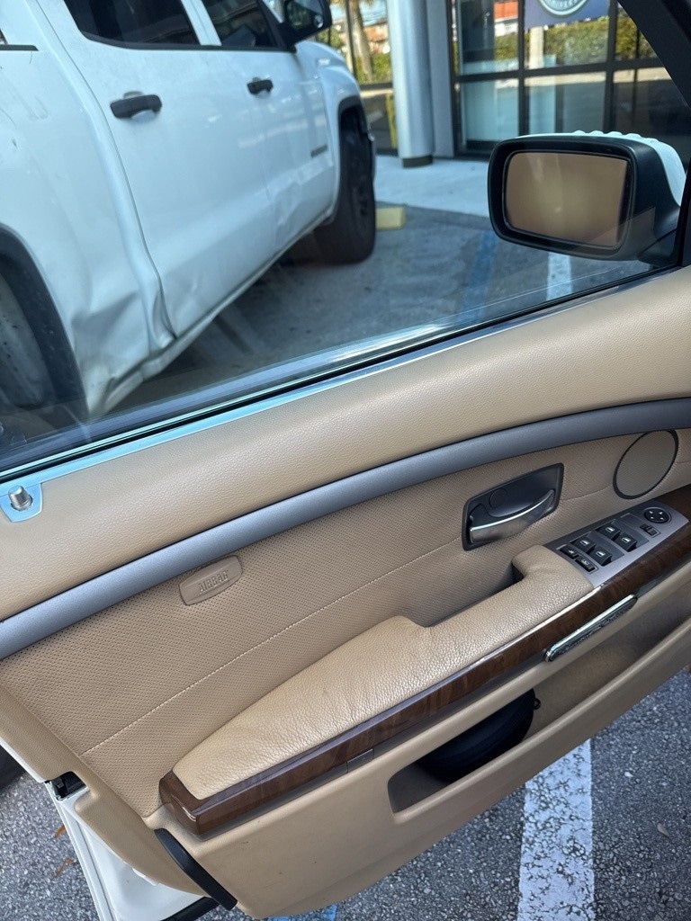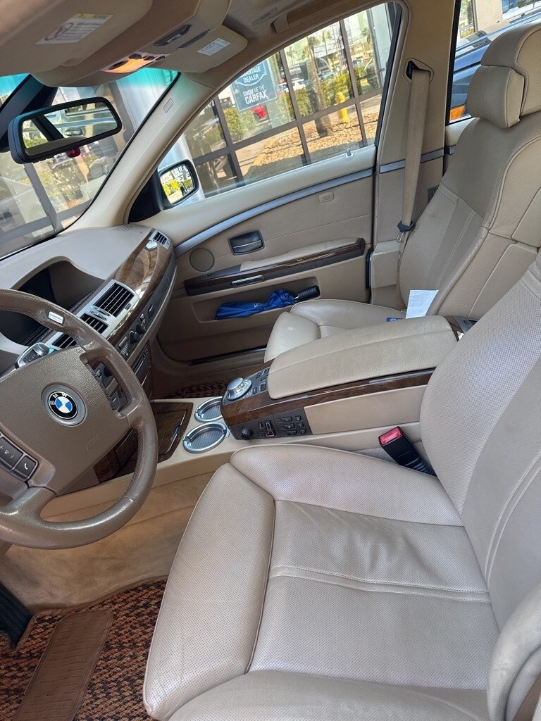 2004 BMW 7 Series 745Li Beautifully finished in Alpine White with Cream Beige Leather interior. 4.4L V8 DOHC 32V Valvetronic 4D Sedan RWD 6-Speed Automatic with Steptronic **LOCAL TRADE**, Cream Beige w/Pearl Leather Upholstery, 10 Speakers, 18" x 8.0" Multi-Spoke Alloy (Style 94) Wheels, 4-Wheel Disc Brakes, ABS brakes, Adaptive suspension, Air Conditioning, Alloy wheels, AM/FM radio, AM/FM Stereo/CD Audio System w/10 Speakers, Anti-whiplash front head restraints, Auto tilt-away steering wheel, Auto-dimming door mirrors, Auto-dimming Rear-View mirror, Automatic temperature control, Brake assist, Bumpers: body-color, CD player, Delay-off headlights, Driver door bin, Driver vanity mirror, Dual front impact airbags, Dual front side impact airbags, Electronic Stability Control, Emergency communication system, Four wheel independent suspension, Front anti-roll bar, Front Bucket Seats, Front Center Armrest, Front Comfort Seats, Front dual zone A/C, Front fog lights, Front reading lights, Fully automatic headlights, Garage door transmitter, Genuine wood console insert, Genuine wood dashboard insert, Genuine wood door panel insert, Head restraints memory, Headlight cleaning, Heated door mirrors, High intensity discharge headlights: Bi-xenon, Illuminated entry, Knee airbag, Leather steering wheel, Memory seat, Nasca Leather Upholstery, Navigation System, Occupant sensing airbag, Outside temperature display, Overhead airbag, Overhead console, Panic alarm, Passenger door bin, Passenger vanity mirror, Power adjustable front head restraints, Power door mirrors, Power driver seat, Power moonroof, Power passenger seat, Power steering, Power windows, Radio data system, Rain sensing wipers, Rear air conditioning, Rear anti-roll bar, Rear fog lights, Rear reading lights, Rear seat center armrest, Rear window defroster, Remote keyless entry, Seatbelt memory, Security system, Speed control, Speed-sensing steering, Steering wheel memory, Steering wheel mounted A/C controls, Steering wheel mounted audio controls, Tachometer, Telescoping steering wheel, Tilt steering wheel, Traction control, Trip computer, Variably intermittent wipers, Weather band radio, Cream Beige w/Pearl Leather Upholstery. 18/26 City/Highway MPG