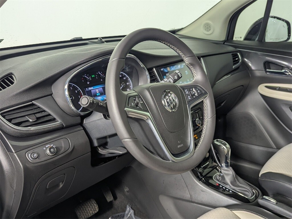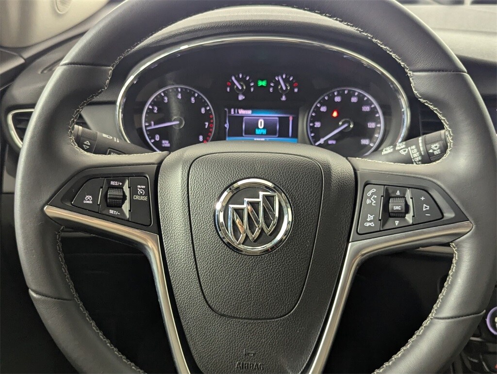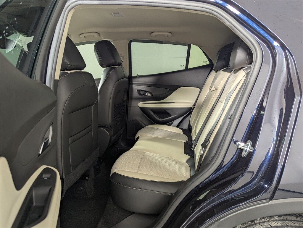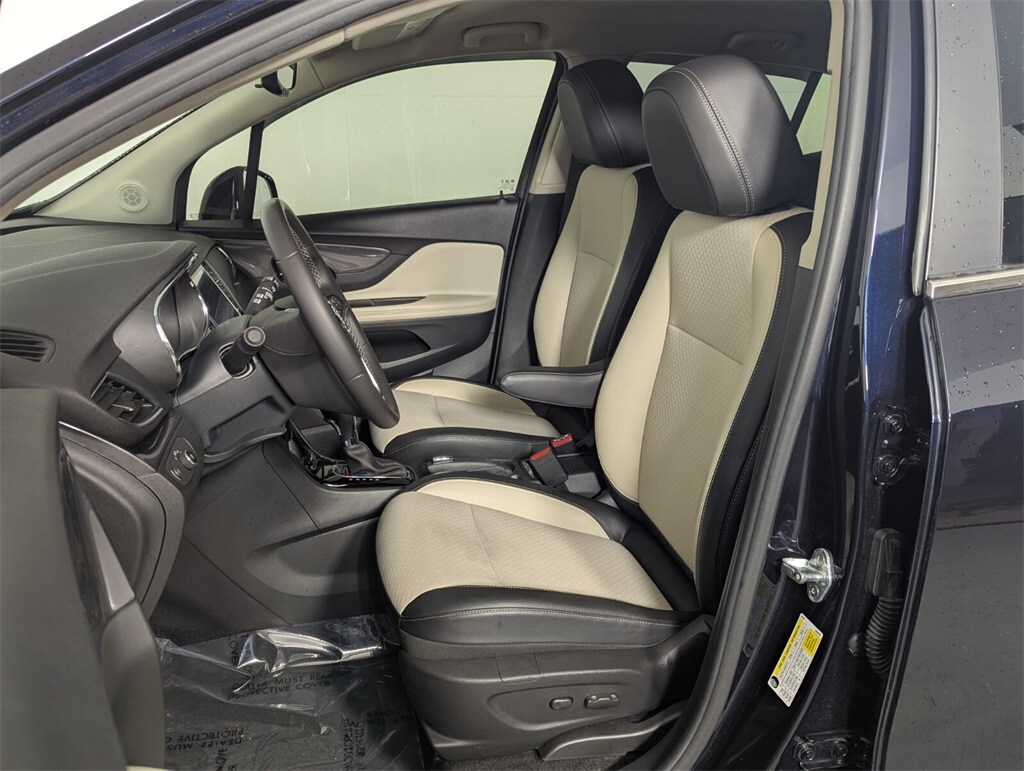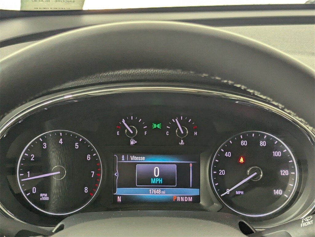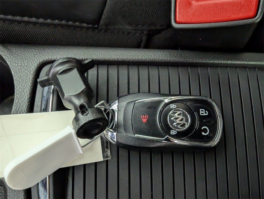 This Encore is well equipped with Buick Interior Protection Package (LPO) (All-Weather Floor Mats and Color-Keyed Carpeted Cargo Mat (LPO)), Preferred Equipment Group 1SB, Safety Package (120-Volt Power Outlet, Rear Cross Traffic Alert, and Side Blind Zone Alert), 18" Aluminum Wheels, 2-Way Manual Front Passenger Seat Adjuster, 3.53 Final Drive Axle Ratio, 4-Wheel Disc Brakes, 6 Speakers, 6-Speaker Audio System, 6-Way Power Driver Seat Adjuster, ABS brakes, Air Conditioning, Alloy wheels, AM/FM radio: SiriusXM, Apple CarPlay/Android Auto, Brake assist, Bumpers: body-color, Cloth w/Leatherette Seat Trim, Compass, Delay-off headlights, Driver door bin, Driver vanity mirror, Driver's Seat Mounted Armrest, Dual front impact airbags, Dual front side impact airbags, Electronic Stability Control, Emergency communication system: OnStar and Buick connected services capable, Exterior Parking Camera Rear, Front anti-roll bar, Front Bucket Seats, Front reading lights, Front wheel independent suspension, Fully automatic headlights, Heated door mirrors, Illuminated entry, Knee airbag, Leather steering wheel, Low tire pressure warning, Occupant sensing airbag, Outside temperature display, Overhead airbag, Panic alarm, Passenger door bin, Passenger vanity mirror, Power door mirrors, Power driver seat, Power steering, Power windows, Radio data system, Radio: 7" Diagonal Buick Infotainment System, Radio: Buick Infotainment System AM/FM Stereo (DISC), Rear seat center armrest, Rear side impact airbag, Rear window defroster, Rear window wiper, Remote keyless entry, Remote Vehicle Starter System, Ride & Handling Suspension, Roof rack: rails only, Security system, SiriusXM Radio, Speed control, Speed-sensing steering, Split folding rear seat, Spoiler, Steering wheel mounted audio controls, Tachometer, Telescoping steering wheel, Tilt steering wheel, Traction control, Trip computer, and Variably intermittent wipers.
