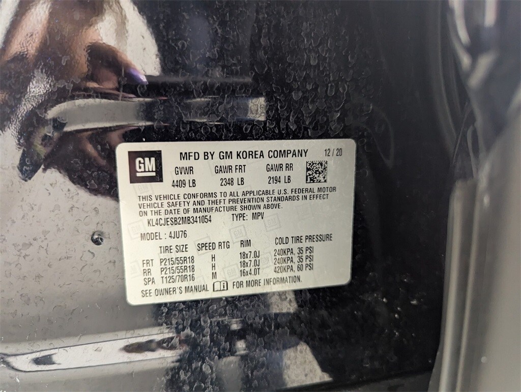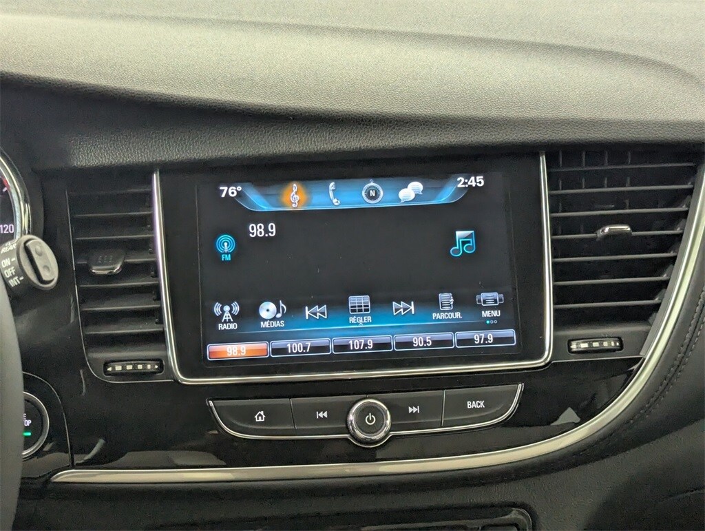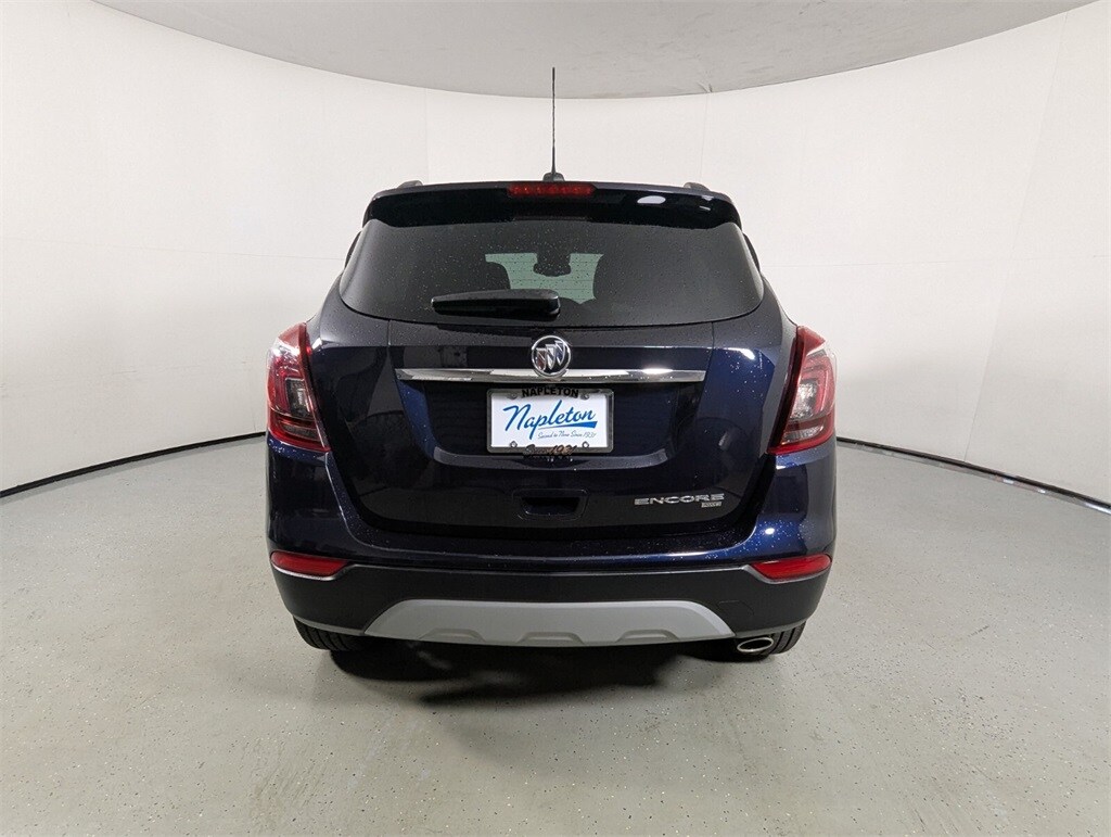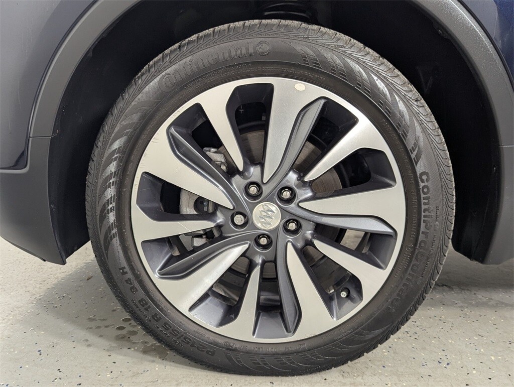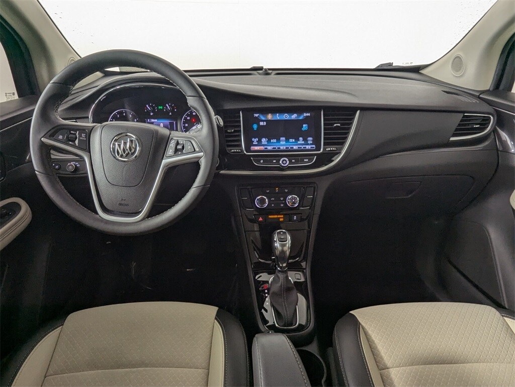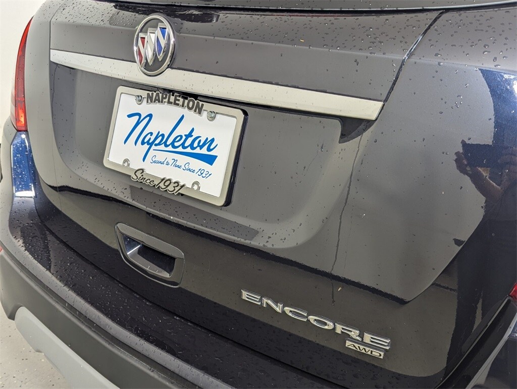 This Encore is well equipped with Buick Interior Protection Package (LPO) (All-Weather Floor Mats and Color-Keyed Carpeted Cargo Mat (LPO)), Preferred Equipment Group 1SB, Safety Package (120-Volt Power Outlet, Rear Cross Traffic Alert, and Side Blind Zone Alert), 18" Aluminum Wheels, 2-Way Manual Front Passenger Seat Adjuster, 3.53 Final Drive Axle Ratio, 4-Wheel Disc Brakes, 6 Speakers, 6-Speaker Audio System, 6-Way Power Driver Seat Adjuster, ABS brakes, Air Conditioning, Alloy wheels, AM/FM radio: SiriusXM, Apple CarPlay/Android Auto, Brake assist, Bumpers: body-color, Cloth w/Leatherette Seat Trim, Compass, Delay-off headlights, Driver door bin, Driver vanity mirror, Driver's Seat Mounted Armrest, Dual front impact airbags, Dual front side impact airbags, Electronic Stability Control, Emergency communication system: OnStar and Buick connected services capable, Exterior Parking Camera Rear, Front anti-roll bar, Front Bucket Seats, Front reading lights, Front wheel independent suspension, Fully automatic headlights, Heated door mirrors, Illuminated entry, Knee airbag, Leather steering wheel, Low tire pressure warning, Occupant sensing airbag, Outside temperature display, Overhead airbag, Panic alarm, Passenger door bin, Passenger vanity mirror, Power door mirrors, Power driver seat, Power steering, Power windows, Radio data system, Radio: 7" Diagonal Buick Infotainment System, Radio: Buick Infotainment System AM/FM Stereo (DISC), Rear seat center armrest, Rear side impact airbag, Rear window defroster, Rear window wiper, Remote keyless entry, Remote Vehicle Starter System, Ride & Handling Suspension, Roof rack: rails only, Security system, SiriusXM Radio, Speed control, Speed-sensing steering, Split folding rear seat, Spoiler, Steering wheel mounted audio controls, Tachometer, Telescoping steering wheel, Tilt steering wheel, Traction control, Trip computer, and Variably intermittent wipers.