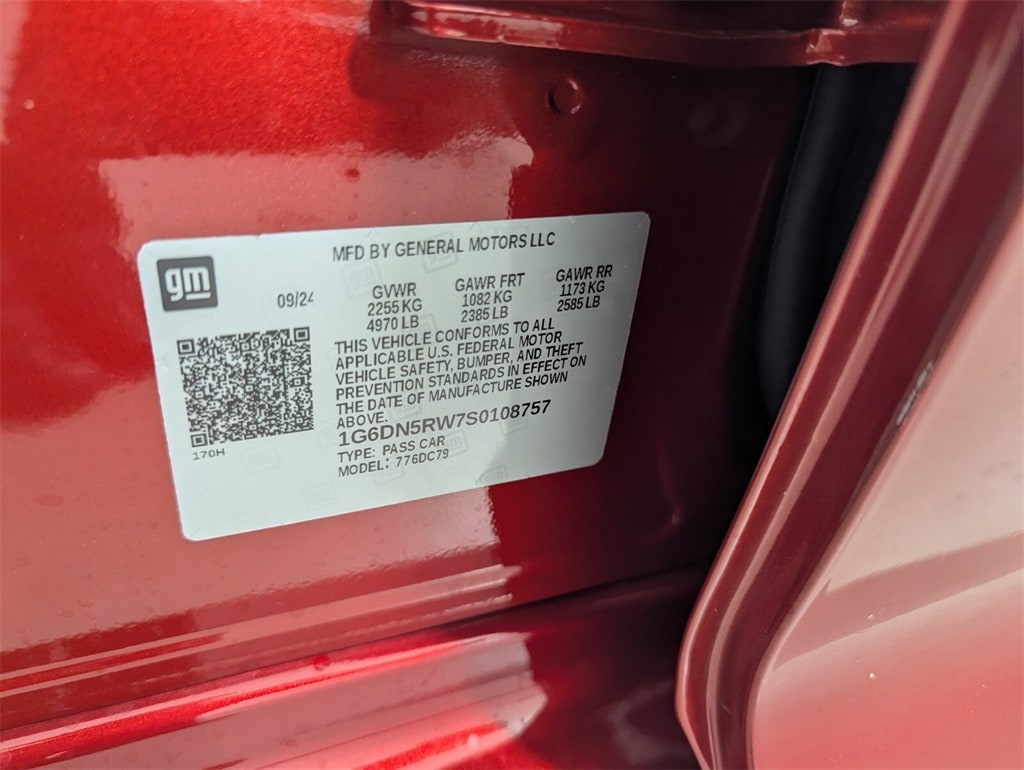 This CT5 is well equipped with Preferred Equipment Group 1SD (LED Reflective Windshield Collision Alert), Technology Package (Adaptive Forward Lighting Headlamps, Air Quality Indicator Sensor, Automatic Leveling System Headlamp Control, Body-Color Heated Power-Adjustable Outside Mirrors, Digital Rear Camera Mirror w/Tilt & Zoom Function, Front Cornering LED Lamps, Hands-Free Decklid Release, Head-Up Display, Illuminating Front Sill Plates, Pollutant/Odor/Fine Dust Air Filter, and Premium Headlamp System), Interior Protection Package (LPO) (All-Weather Cargo Mat (LPO) and All-Weather Floor Mats), 15 Speakers, 4-Wheel Disc Brakes, 8-Way Power Driver Seat Adjuster, 8-Way Power Front Passenger Seat Adjuster, ABS brakes, Air Conditioning, AKG 15-Speaker System, Alloy wheels, AM/FM radio: SiriusXM with 360L, Apple CarPlay/Android Auto, Auto High-beam Headlights, Auto-dimming door mirrors, Auto-dimming Rear-View mirror, Automatic Stop/Start w/Disable, Automatic temperature control, Brake assist, Bumpers: body-color, Compass, Delay-off headlights, Driver 4-Way Power Lumbar Seat Adjuster, Driver door bin, Driver Power Lumbar Massage Seat, Driver Power Seatback Bolster Adjustment, Driver vanity mirror, Dual front impact airbags, Dual front side impact airbags, Electronic Stability Control, Emergency communication system: OnStar and Cadillac connected services capable, Enhanced Automatic Parking Assist, Four wheel independent suspension, Front anti-roll bar, Front Bucket Seats, Front Center Armrest, Front dual zone A/C, Front Passenger 4-Way Power Lumbar Seat Adjuster, Front Passenger Power Lumbar Massage Seat, Front Passenger Power Seatback Bolster Adjustment, Front reading lights, Fully automatic headlights, Garage door transmitter, HD Surround Vision, Heated door mirrors, Heated Driver & Front Passenger Seats, Heated front seats, Heated steering wheel, Illuminated entry, Knee airbag, Leather Seating Surfaces w/Mini-Perforated Inserts, Leather steering wheel, Low tire pressure warning, Memory seat, Navigation System/ GPS, Occupant sensing airbag, Outside temperature display, Overhead airbag, Overhead console, Panic alarm, Passenger door bin, Passenger vanity mirror, Power door mirrors, Power driver seat, Power passenger seat, Power steering, Power windows, Radio data system, Radio: Google Built-In Infotainment Experience, Rain sensing wipers, Rear anti-roll bar, Rear reading lights, Rear seat center armrest, Rear Spoiler, Rear window defroster, Remote keyless entry, SiriusXM w/360L Trial Subscription, Speed control, Speed-sensing steering, Split folding rear seat, Steering wheel memory, Steering wheel mounted audio controls, Tachometer, Telescoping steering wheel, Tilt steering wheel, Traction control, Trip computer, Turn signal indicator mirrors, Variably intermittent wipers, Ventilated Driver & Front Passenger Seats, Ventilated front seats, Voltmeter, Wheels: 18" Premium Painted Alloy, and Wheels: 19" Alloy w/Diamond Cut/Midnight Silver.