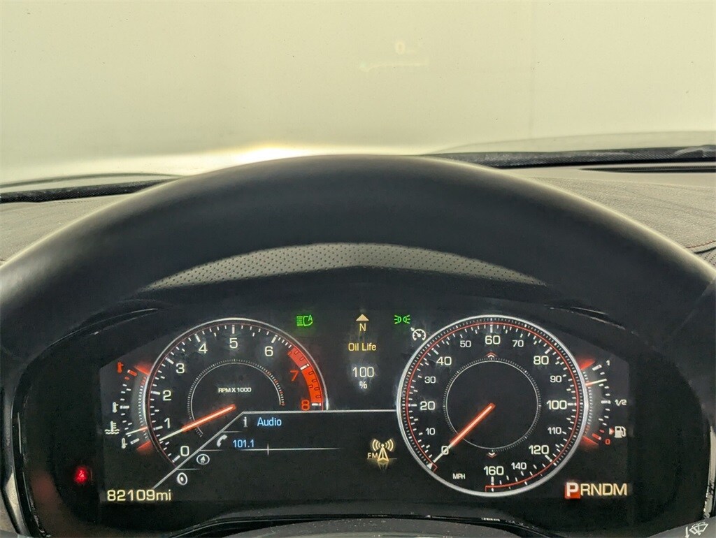 Features: Driver Awareness Package (Forward Collision Alert, IntelliBeam Headlamps, Lane Departure Warning System, Rainsense Wipers, Rear Cross Traffic Alert, Rear Vision Camera, and Side Blind Zone Alert), Luxury Package (110V Power Receptacle, Color Head-Up Display, Heated Rear Outboard Seating Positions, Illuminated Front Door Sill Plates, Illuminating Door Handles, Manual Rear Side Window Sunshades, Power Rear Window Sunshade, and Tri-Zone Climate Control), Performance Seat & Cluster Package (12.3" Color Reconfigurable Gauge Cluster, Driver Seat Adjuster, Front Passenger Seat Adjuster, Full Leather Seating Surfaces, Performance Front Bucket Seats, and Sport Aluminum Alloy Pedals), Preferred Equipment Group 1SR (Automatic Parking Assist and UltraView Power Sunroof), Seating Package (Heated Driver & Front Passenger Seats, Heated Steering Wheel Rim, Heated/Ventilated Driver & Front Passenger Seats, LED Accent Lighting, Outside Heated Power-Adjustable Mirrors, Power Rake/Telescopic Steering Wheel Column, Single Disc CD/MP3 Player, and Split-Folding Rear Seat), 13 Speakers, 4-Wheel Disc Brakes, ABS brakes, Adaptive suspension, Air Conditioning, Alloy wheels, AM/FM radio: SiriusXM, Anti-whiplash front head restraints, Auto High-beam Headlights, Auto-dimming door mirrors, Auto-dimming Rear-View mirror, Automatic temperature control, Bose Premium 13-Speaker Surround Sound System, Brake assist, Bumpers: body-color, Compass, Delay-off headlights, Driver door bin, Driver vanity mirror, Dual front impact airbags, Dual front side impact airbags, Electronic Stability Control, Emergency communication system: OnStar Directions & Connections, Exterior Parking Camera Rear, Four wheel independent suspension, Front anti-roll bar, Front Bucket Seats, Front Center Armrest w/Storage, Front dual zone A/C, Front License Plate Bracket, Front reading lights, Fully automatic headlights, Garage door transmitter, Genuine wood console insert, Genuine wood dashboard insert, Genuine wood door panel insert, Heads-Up Display, Heated door mirrors, Heated front seats, Heated rear seats, Heated steering wheel, High-Intensity Discharge Headlights, Illuminated entry, Knee airbag, Leather Seating Surfaces, Leather Shift Knob, Leather steering wheel, Low tire pressure warning, Memory seat, Navigation System, Occupant sensing airbag, Outside temperature display, Overhead airbag, Panic alarm, Passenger door bin, Passenger vanity mirror, Power door mirrors, Power driver seat, Power moonroof: UltraView, Power passenger seat, Power steering, Power windows, Premium All-Weather Cargo Mat (LPO), Premium All-Weather Floor Mats, Premium audio system: CUE, Radio data system, Radio: CUE Info/Media Control/Embedded Navigation, Rain sensing wipers, Rear air conditioning, Rear anti-roll bar, Rear reading lights, Rear seat center armrest, Rear Window Blind, Rear window defroster, Remote CD player, Remote keyless entry, Security system, SiriusXM & HD Audio System, Speed control, Speed-sensing steering, Split folding rear seat, Steering wheel mounted audio controls, Tachometer, Telescoping steering wheel, Tilt steering wheel, Traction control, Trip computer, Turn signal indicator mirrors, Variably intermittent wipers, Ventilated front seats, Voltmeter, Wheel Locks, and Wheels: 18" x 8.5" Premium Painted Aluminum.