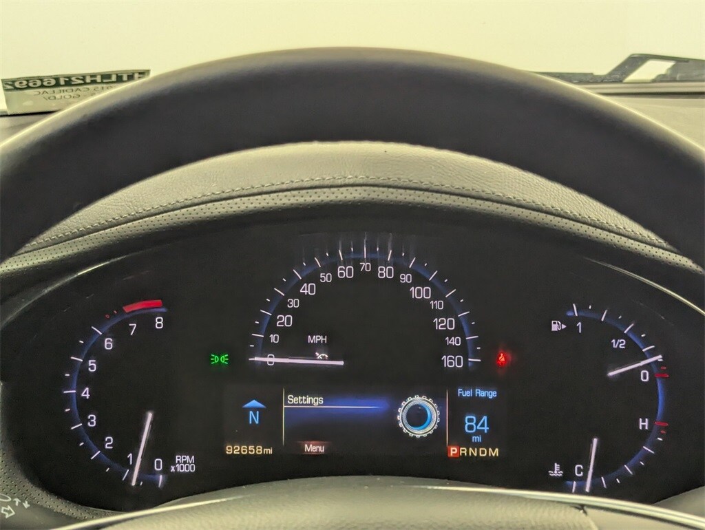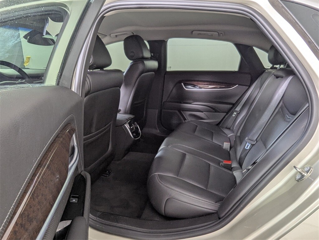 Features: 19" x 8.5" Aluminum Wheels, 4-Way Driver Power Lumbar Control Seat Adjuster, 4-Way Front Passenger Power Lumbar Control, 4-Wheel Disc Brakes, 8 Speakers, ABS brakes, Adaptive suspension, Air Conditioning, Alloy wheels, AM/FM radio: SiriusXM, Auto tilt-away steering wheel, Auto-dimming door mirrors, Auto-dimming Rear-View mirror, Auto-leveling suspension, Automatic Parking Assist, Automatic temperature control, Bodyside moldings, Bose Premium 8-Speaker Audio System Feature, Brake assist, Bumpers: body-color, Compass, Delay-off headlights, Driver door bin, Driver vanity mirror, Dual front impact airbags, Dual front side impact airbags, Dual-Outlet Stainless-Steel Exhaust, Electronic Stability Control, Emergency communication system: OnStar Directions & Connections, Exterior Parking Camera Rear, Four wheel independent suspension, Front anti-roll bar, Front Bucket Seats, Front Center Armrest w/Storage, Front dual zone A/C, Front reading lights, Fully automatic headlights, Garage door transmitter, Genuine wood console insert, Genuine wood dashboard insert, Genuine wood door panel insert, Heated door mirrors, Heated front seats, Heated rear seats, Heated steering wheel, High-Intensity Discharge Headlights, Illuminated entry, Knee airbag, Leather Seating Surfaces, Leather Shift Knob, Leather steering wheel, Leather-Wrapped Steering Wheel, Low tire pressure warning, Memory seat, Navigation System, NavTraffic, Occupant sensing airbag, Outside temperature display, Overhead airbag, Panic alarm, Passenger door bin, Passenger vanity mirror, Power door mirrors, Power driver seat, Power passenger seat, Power steering, Power windows, Premium audio system: Cadillac CUE, Radio data system, Radio: Cadillac CUE Information & Media Control, Rain sensing wipers, Rear anti-roll bar, Rear reading lights, Rear seat center armrest, Rear side impact airbag, Rear window defroster, Remote keyless entry, Security system, SiriusXM Satellite & HD Radio, Speed control, Speed-sensing steering, Split folding rear seat, Spoiler, Steering wheel memory, Steering wheel mounted audio controls, Tachometer, Telescoping steering wheel, Tilt steering wheel, Traction control, Trip computer, Turn signal indicator mirrors, Upper & Lower Auxiliary Daytime Running Lamps, Variably intermittent wipers, Ventilated front seats, and Voltmeter.