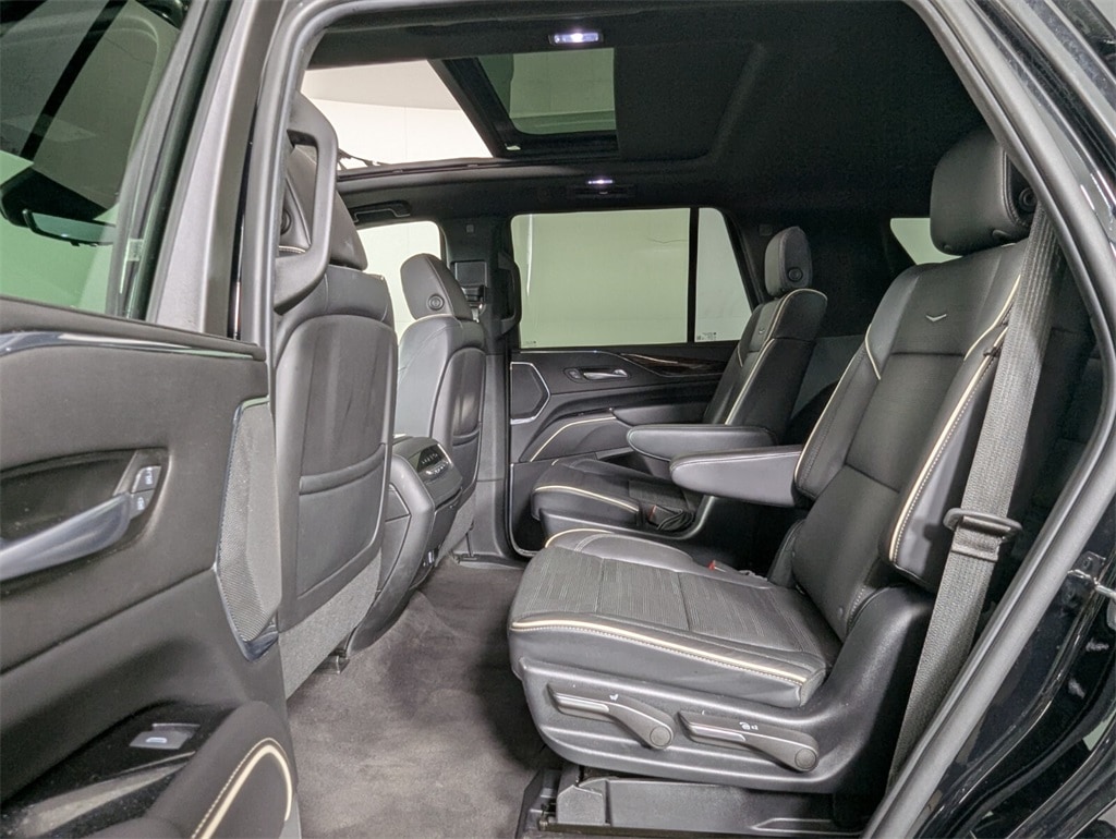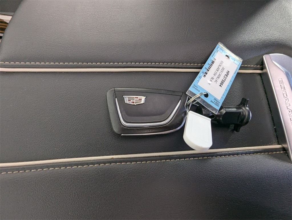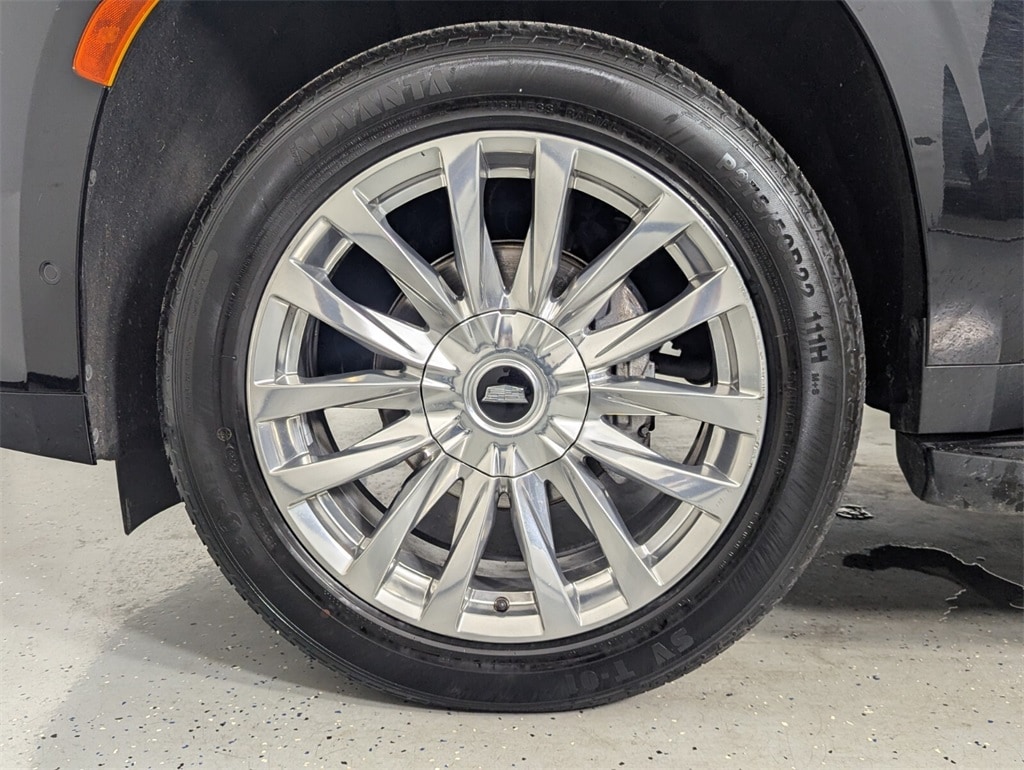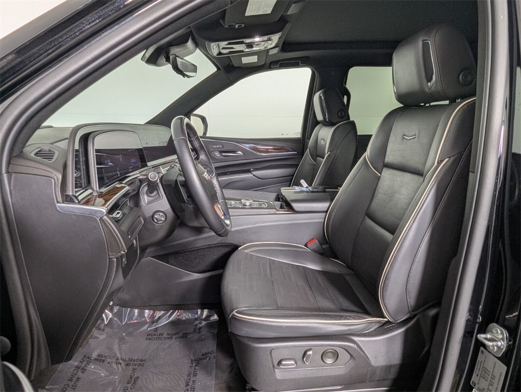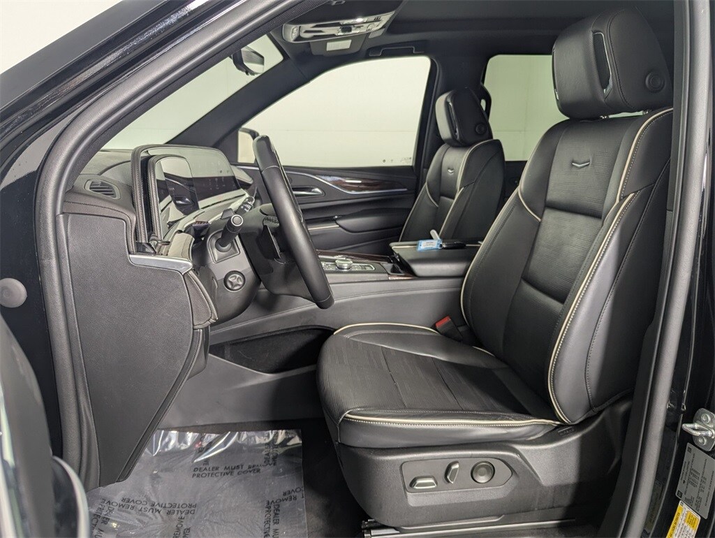 Features: 16.9" Diagonal OLED Infotainment Screen, 19 Speakers, 2-Presets Memory For Driver Seat Adjuster, 3.23 Axle Ratio, 3rd row seats: split-bench, 4-Way Power Driver Lumbar Seat Adjuster, 4-Way Power Front Passenger Lumbar Seat Adjuster, 4-Wheel Disc Brakes, 8-Way Power Driver Seat Adjuster, 8-Way Power Front Passenger Seat Adjuster, ABS brakes, Adaptive Cruise Control, Air Conditioning, AKG Studio 19-Speaker Audio System, Alloy wheels, AM/FM radio: SiriusXM with 360L, Apple CarPlay/Android Auto, Audio memory, Auto High-beam Headlights, Auto tilt-away steering wheel, Auto-dimming door mirrors, Auto-dimming Rear-View mirror, Automatic Seat Belt Tightening, Automatic temperature control, Brake assist, Bumpers: body-color, Compass, Delay-off headlights, Door Lock & Latch Shields, Driver door bin, Driver vanity mirror, Dual front impact airbags, Dual front side impact airbags, Electronic Stability Control, Emergency communication system: OnStar and Cadillac connected services capable, Enhanced Automatic Emergency Braking, Enhanced Automatic Parking Assist, Exterior Parking Camera Rear, Four wheel independent suspension, Front anti-roll bar, Front Bucket Seats, Front Center Armrest w/Storage, Front dual zone A/C, Front reading lights, Fully automatic headlights, Garage door transmitter, Glass Breakage Sensor, HD Radio, Heads-Up Display, Heated & Ventilated Driver & Front Passenger Seats, Heated door mirrors, Heated Driver & Front Passenger Seats, Heated front seats, Heated rear seats, Heated steering wheel, Illuminated entry, Lane Change Alert w/Side Blind Zone Alert, Leather Seating Surfaces w/Mini-Chevron Perf Inserts, Low tire pressure warning, Mechanical Limited-Slip Differential, Memory seat, Navigation System, Occupant sensing airbag, Outside temperature display, Overhead airbag, Overhead console, Panic alarm, Passenger door bin, Passenger vanity mirror, Power door mirrors, Power driver seat, Power Liftgate, Power moonroof, Power Panoramic Tilt-Sliding Sunroof, Power passenger seat, Power steering, Power windows, Premium Smooth Ride Suspension, Radio data system, Radio: AM/FM w/Navigation, Rain sensing wipers, Rear air conditioning, Rear anti-roll bar, Rear Camera Mirror, Rear Camera Mirror Washer, Rear Cross Traffic Alert, Rear reading lights, Rear window defroster, Rear window wiper, Reconfigurable Full-Color Head-Up Display, Remote keyless entry, Reverse Automatic Braking, Running Board Assist Steps, Security system, SiriusXM w/360L, Speed control, Split folding rear seat, Spoiler, Steering wheel memory, Steering wheel mounted audio controls, Tachometer, Teen Driver, Telescoping steering wheel, Theft-Deterrent Alarm System, Tilt steering wheel, Traction control, Trip computer, Turn signal indicator mirrors, Variably intermittent wipers, Vehicle Inclination Sensor, Vehicle Interior Movement Sensor, Ventilated front seats, Voltmeter, Wheels: 22" 14-Spoke Alloy w/Polished Finish, and Wireless Apple CarPlay/Wireless Android Auto.