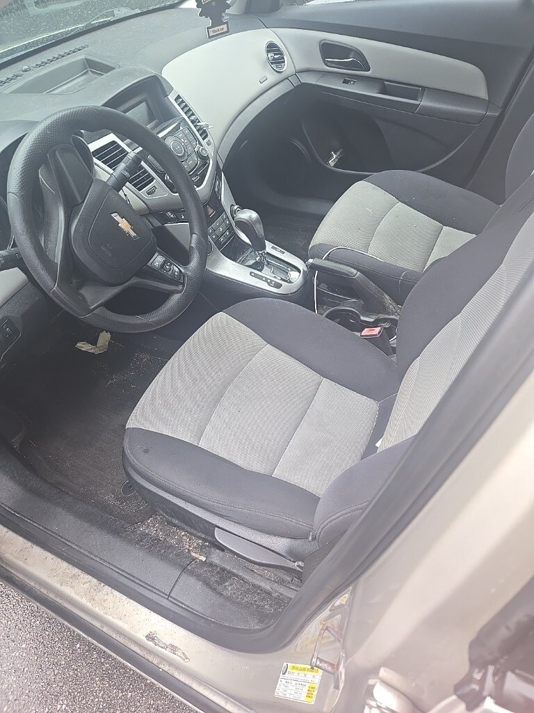 2013 Chevrolet Cruze LS Beautifully finished in Champagne Silver Metallic with Jet Black/Medium Titanium Cloth interior. ECOTEC 1.8L I4 SMPI DOHC VVT 4D Sedan FWD 6-Speed Automatic Electronic with Overdrive 16" Steel w/Silver-Painted Wheel Covers Wheels, 6 Speakers, ABS brakes, Air Conditioning, AM/FM radio: SiriusXM, AM/FM Stereo w/CD Player/MP3 Playback, Brake assist, Bumpers: body-color, Cargo Net, CD player, Compass, Delay-off headlights, Driver door bin, Driver vanity mirror, Dual front impact airbags, Dual front side impact airbags, Electronic Stability Control, Emergency communication system: OnStar Directions & Connections, Front anti-roll bar, Front Bucket Seats, Front Center Armrest, Front reading lights, Front wheel independent suspension, Fully automatic headlights, Illuminated entry, Knee airbag, Low tire pressure warning, Occupant sensing airbag, Outside temperature display, Overhead airbag, Panic alarm, Passenger door bin, Passenger vanity mirror, Power door mirrors, Power steering, Power windows, Preferred Equipment Group 1SB, Premium Cloth Seat Trim, Radio data system, Rear seat center armrest, Rear side impact airbag, Rear window defroster, Remote keyless entry, Security system, SiriusXM Satellite Radio, Speed-sensing steering, Split folding rear seat, Steering wheel mounted audio controls, Tachometer, Telescoping steering wheel, Tilt steering wheel, Traction control, Trip computer, Variably intermittent wipers, Voltmeter. 22/35 City/Highway MPG