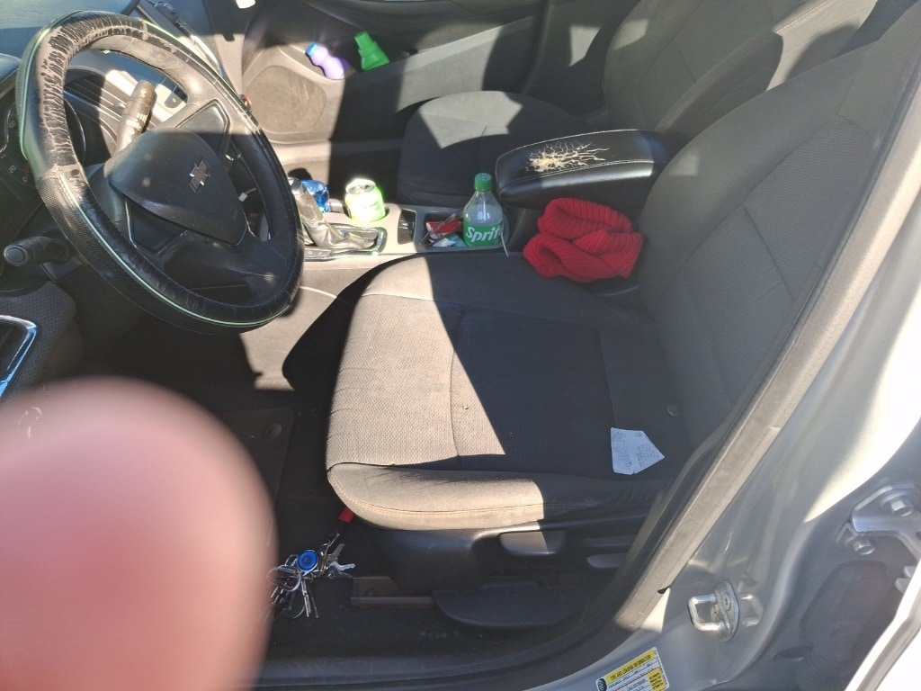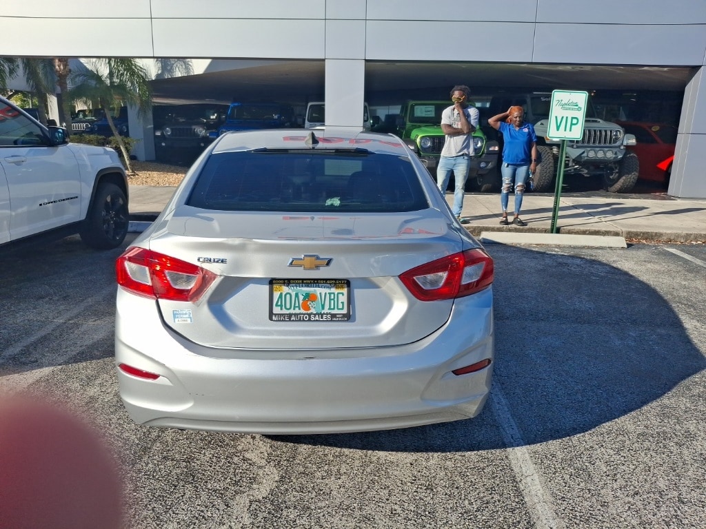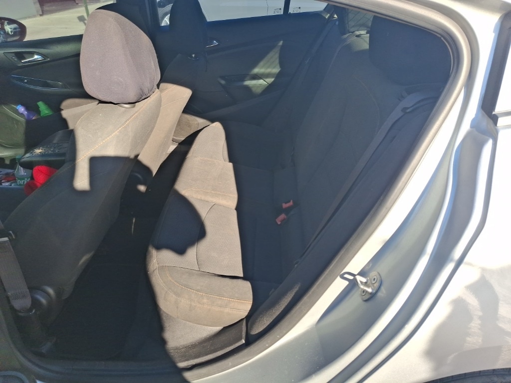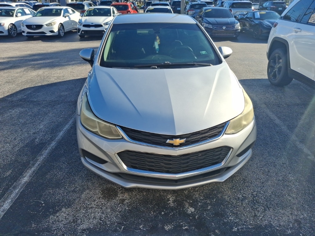 This Cruze is well equipped with Preferred Equipment Group 1SB, 15" Steel Wheels w/Full Bolt-On Wheel Covers, 4 Speakers, 4-Speaker Audio System Feature, 4-Wheel Disc Brakes, ABS brakes, Air Conditioning, AM/FM radio, Apple CarPlay/Android Auto, Brake assist, Bumpers: body-color, Cargo Net, Cloth Seat Trim, Compass, Delay-off headlights, Driver 6-Way Manual Seat Adjuster, Driver door bin, Driver vanity mirror, Dual front impact airbags, Dual front side impact airbags, Electronic Stability Control, Emergency communication system: OnStar Guidance, Exterior Parking Camera Rear, Front & Rear All-Weather Floor Mats, Front anti-roll bar, Front Bucket Seats, Front Center Armrest, Front Passenger 2-Way Manual Seat Adjuster, Front wheel independent suspension, Fully automatic headlights, Illuminated entry, Knee airbag, Low tire pressure warning, Occupant sensing airbag, Outside temperature display, Overhead airbag, Panic alarm, Passenger door bin, Passenger vanity mirror, Power door mirrors, Power steering, Power windows, Radio data system, Radio: AM/FM Chevrolet MyLink w/7" Touch-Screen, Rear side impact airbag, Rear window defroster, Remote keyless entry, Security system, Tachometer, Telescoping steering wheel, Tilt steering wheel, Traction control, Trip computer, Variably intermittent wipers, and Voltmeter.