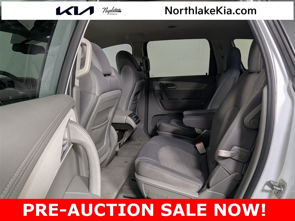 2017 Chevrolet Traverse 2LT 2LT Beautifully finished in Summit White with Dark Titanium/Light Titanium Cloth interior. 3.6L V6 SIDI 4D Sport Utility FWD 6-Speed Automatic 10 Speakers, 18" x 7.5" Machined Aluminum Wheels, 3.16 Axle Ratio, 3rd row seats: split-bench, 4-Wheel Disc Brakes, 7-Passenger Seating (2-2-3 Seating Configuration), 8-Way Power Driver Seat w/Power Lumbar, ABS brakes, Air Conditioning, Alloy wheels, AM/FM radio: SiriusXM, Auto-Dimming Inside Rear-View Mirror, Auto-dimming Rear-View mirror, Automatic temperature control, Bluetooth® For Phone, Body-Color Bodyside Moldings, Body-Color Heated Power-Adjustable Outside Mirrors, Bodyside moldings, Bose Premium 10-Speaker Audio System Feature, Brake assist, Bumpers: body-color, CD player, Compass, Delay-off headlights, Driver door bin, Driver vanity mirror, Dual front impact airbags, Dual front side impact airbags, Electronic Stability Control, Emergency communication system, Enhanced Driver Information Center, Exterior Parking Camera Rear, Four wheel independent suspension, Front anti-roll bar, Front Bucket Seats, Front Center Armrest w/Storage, Front dual zone A/C, Front Fog Lamps, Front fog lights, Front reading lights, Frontal & Side-Impact Airbags, Fully automatic headlights, Garage door transmitter, Heated door mirrors, Heated Driver & Front Passenger Seats, Heated front seats, Illuminated entry, Interior Wood Grain Center Stack & Interior Trim, Leather-Wrapped Steering Wheel, Low tire pressure warning, Occupant sensing airbag, Outside temperature display, Overhead airbag, Panic alarm, Passenger door bin, Passenger vanity mirror, Power door mirrors, Power driver seat, Power Liftgate, Power steering, Power windows, Preferred Equipment Group 2LT, Premium audio system: Chevrolet MyLink, Premium Cloth Seat Trim, Radio data system, Radio: Chevrolet MyLink AM/FM Stereo w/CD Player, Rear air conditioning, Rear anti-roll bar, Rear audio controls, Rear Audio System Controls, Rear Park Assist, Rear Power Liftgate, Rear reading lights, Rear window defroster, Rear window wiper, Remote keyless entry, Remote Vehicle Start, Roof rack: rails only, Security system, SiriusXM Satellite Radio, Speed control, Spoiler, Steering wheel mounted audio controls, Tachometer, Telescoping steering wheel, Tilt steering wheel, Traction control, Tri-Zone Automatic Climate Control, Trip computer, Turn signal indicator mirrors, Universal Home Remote, Variably intermittent wipers, Voltmeter. CARFAX One-Owner. Clean CARFAX. Priced below KBB Fair Purchase Price!