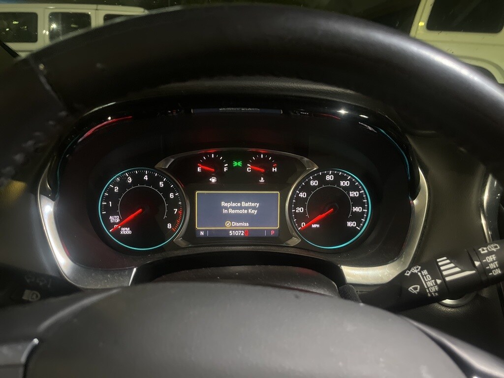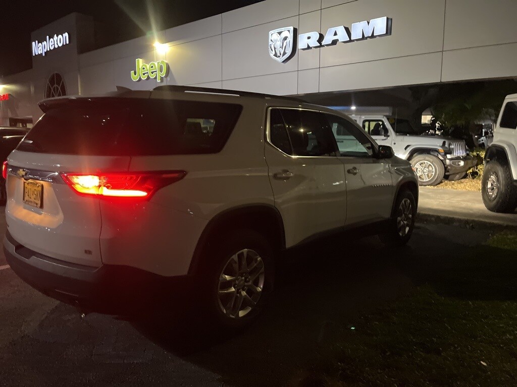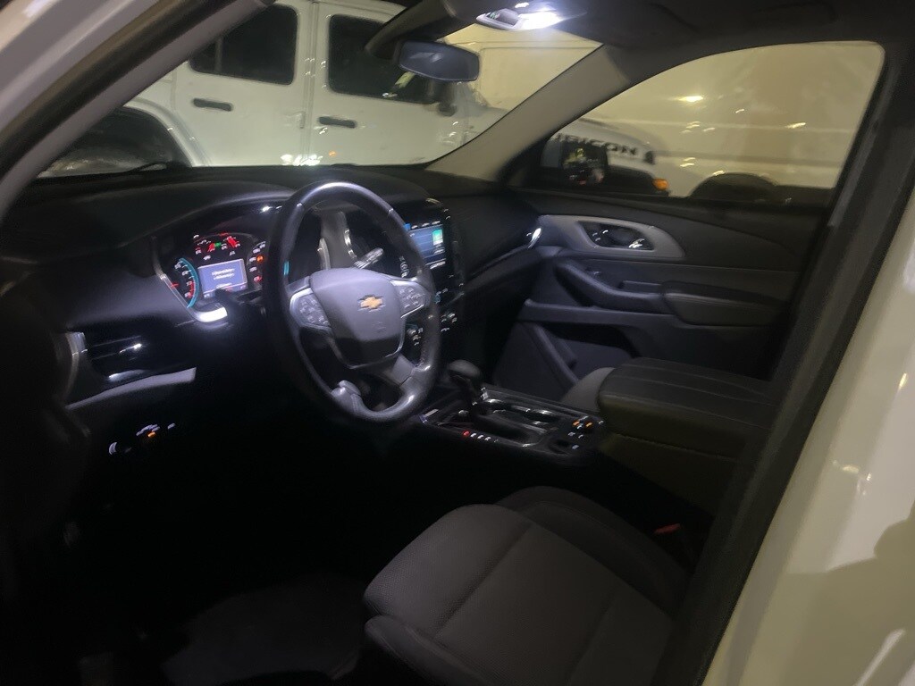 This Traverse is well equipped with Chevy Safety Assist (Automatic Emergency Braking, Automatic Heated Steering Wheel, Following Distance Indicator, Forward Collision Alert, Front Pedestrian Braking, IntelliBeam Auto High Beam Control Headlamps, and Lane Keep Assist w/Lane Departure Warning), Front License Plate Bracket Mounting Package, Preferred Equipment Group 1LT, AWD, 3.49 Axle Ratio, 3rd row seats: split-bench, 4-Wheel Disc Brakes, 6 Speakers, 7-Passenger Seating (2-2-3 Seating Configuration), ABS brakes, Air Conditioning, Alloy wheels, AM/FM radio: SiriusXM, Apple CarPlay/Android Auto, Automatic temperature control, Brake assist, Bumpers: body-color, Compass, Delay-off headlights, Driver door bin, Driver vanity mirror, Dual front impact airbags, Dual front side impact airbags, Electronic Stability Control, Emergency communication system: OnStar and Chevrolet connected services capable, Four wheel independent suspension, Front anti-roll bar, Front Bucket Seats, Front Center Armrest, Front dual zone A/C, Front fog lights, Front reading lights, Fully automatic headlights, Garage door transmitter, Heated door mirrors, Heated front seats, High-Intensity Discharge Headlights, Illuminated entry, Leather steering wheel, Low tire pressure warning, Occupant sensing airbag, Outside temperature display, Overhead airbag, Overhead console, Panic alarm, Passenger door bin, Passenger vanity mirror, Power door mirrors, Power driver seat, Power Liftgate, Power steering, Power windows, Premium Cloth Seat Trim, Radio data system, Radio: Chevrolet Infotainment 3 Plus System, Rear air conditioning, Rear anti-roll bar, Rear reading lights, Rear window defroster, Rear window wiper, Remote keyless entry, Roof rack: rails only, Security system, SiriusXM w/360L, Speed control, Speed-sensing steering, Spoiler, Steering wheel mounted audio controls, Tachometer, Telescoping steering wheel, Tilt steering wheel, Traction control, Trip computer, Turn signal indicator mirrors, Variably intermittent wipers, Voltmeter, and Wheels: 18" Bright Silver Painted Aluminum.