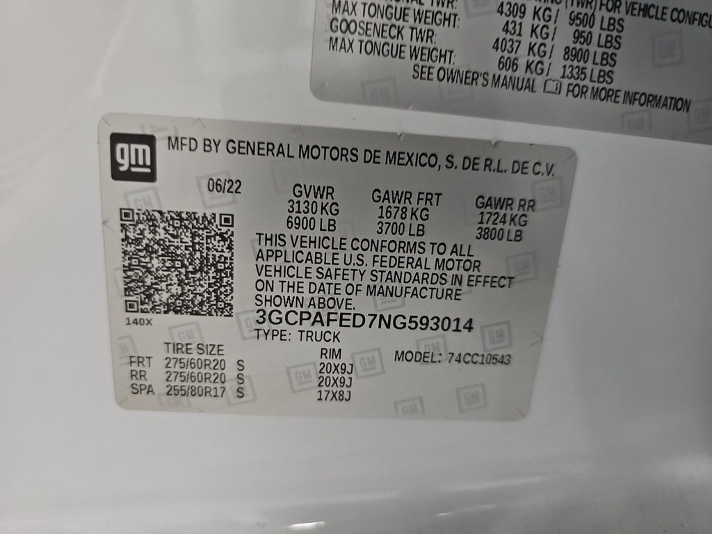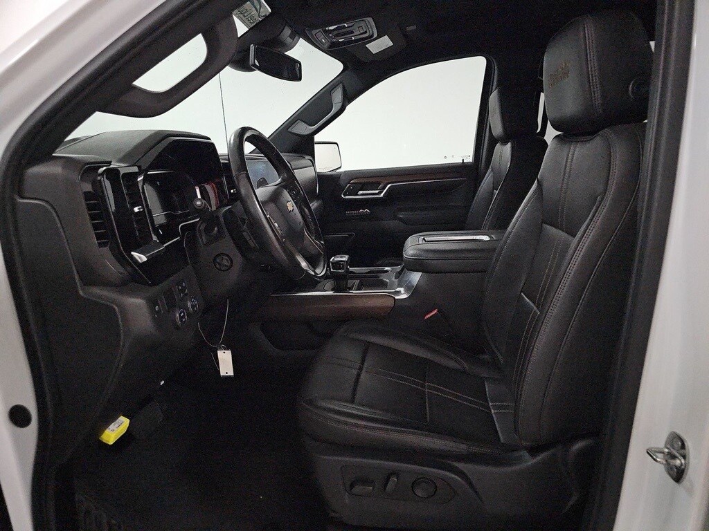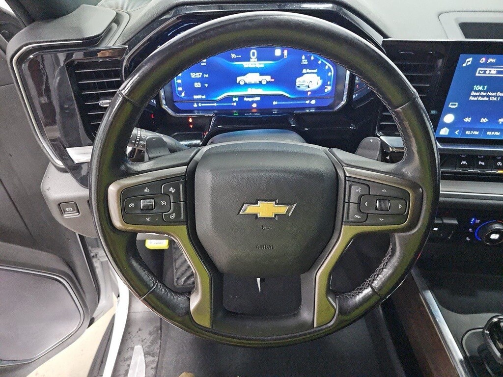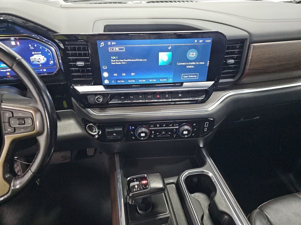 This Silverado 1500 is well equipped with High Capacity Suspension Package, Preferred Equipment Group 3LZ (10-Way Power Driver Seat w/Lumbar, 10-Way Power Passenger Seat Adjuster w/Lumbar, 12.3" Multicolor Reconfigurable Digital Display, 120-Volt Bed Mounted Power Outlet, 120-Volt Instrument Panel Power Outlet, 2 USB Data Ports, 2nd Row Heated Outboard Seats, Auto-Dimming Inside Rear-View Mirror, Auto-Locking Rear Differential, Bed View Camera, Bluetooth® For Phone, Body-Color Painted Mirror Caps, Chevrolet Connected Access Capable, Chevytec Spray-On Black Bedliner, Chrome Assist Steps, Chrome Recovery Hooks, Color-Keyed Carpeting Floor Covering, Compass, Deep-Tinted Glass, Driver Memory, Dual Exhaust w/Polished Outlets, Dual Rear USB Ports (Charge Only), Electric Rear-Window Defogger, Electrical Steering Column Lock, Electronic Cruise Control, Floor Mounted Center Console, Front Carpeted Floor Mats, Front LED Fog Lamps, Front Rainsensing Wipers, HD Surround Vision, Heated Driver & Front Outboard Passenger Seats, Heated Steering Wheel, Hitch Guidance w/Hitch View, Integrated Trailer Brake Controller, Keyless Open & Start, Leather Wrapped Steering Wheel, LED Cargo Area Lighting, OnStar & Chevrolet Connected Services Capable, Outside Heated Power-Adjustable Mirrors, Perimeter Lighting, Power Front Passenger Windows w/Express Up/Down, Power Front Windows w/Driver Express Up/Down, Power Rear Windows w/Express Down, Power Sliding Rear Window w/Rear Defogger, Power Tailgate, Power Tilt & Telescoping Steering Column, Rear Carpeted Floor Mats, Rear Cross Traffic Alert-Braking, Rear Pedestrian Detection, Rear Wheelhouse Liners, Remote Vehicle Starter System, Safety Alert Seat, SiriusXM w/360L, Standard Tailgate, Steering Wheel Audio Controls, Theft Deterrent System (Unauthorized Entry), Trailer Camera Provisions, Trailer Side Blind Zone Alert, Trailering App, Ultrasonic Front & Rear Park Assist, Universal Home Remote, Ventilated Driver & Front Passenger Seats, Wi-Fi Hot Spot Capable, Wireless Charging, and Wireless Phone Projection), Trailering Package (Hitch Guidance), Up-Level Rear Seat w/Storage Package, 10-Speed Automatic, Jet Black Leather, 170 Amp Alternator, 3.23 Rear Axle Ratio, 4-Wheel Disc Brakes, 7 Speakers, ABS brakes, Air Conditioning, Alloy wheels, AM/FM radio: SiriusXM with 360L, Apple CarPlay/Android Auto, Auto High-beam Headlights, Auto-dimming door mirrors, Auto-dimming Rear-View mirror, Automatic Emergency Braking, Automatic temperature control, Bodyside moldings, Brake assist, Bumpers: body-color, Delay-off headlights, Driver door bin, Driver vanity mirror, Dual front impact airbags, Dual front side impact airbags, Electronic Stability Control, Electronic Transmission Range Selector Shifter, Following Distance Indicator, Forward Collision Alert, Front anti-roll bar, Front Bucket Seats, Front Center Armrest, Front dual zone A/C, Front fog lights, Front Pedestrian Braking, Front reading lights, Front wheel independent suspension, Fully automatic headlights, Garage door transmitter, Genuine wood console insert, Genuine wood dashboard insert, Genuine wood door panel insert, Heated door mirrors, Heated front seats, Heated rear seats, Heated steering wheel, Illuminated entry, IntelliBeam Automatic High Beam On/Off, Lane Keep Assist w/Lane Departure Warning, Low tire pressure warning, Memory seat, Not Equipped w/Front & Rear Park Assist, Not Equipped w/Steering Column Lock, Occupant sensing airbag, Outside temperature display, Overhead airbag, Overhead console, Panic alarm, Passenger door bin, Passenger vanity mirror, Perforated Leather Seat Trim, Power door mirrors, Power driver seat, Power passenger seat, Power steering, Power windows, Premium audio system: Chevrolet I