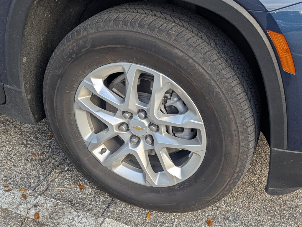 2022 Chevrolet Traverse LS Beautifully finished in Northsky Blue Metallic with Jet Black/Chai Cloth interior. 3.6L V6 SIDI VVT 4D Sport Utility FWD 9-Speed Automatic 2-Way Manual Front Passenger Seat Adjuster, 3.49 Axle Ratio, 3rd row seats: split-bench, 4-Wheel Disc Brakes, 6 Speakers, 6-Speaker Audio System Feature, 6-Way Manual Driver Seat Adjuster, ABS brakes, Air Conditioning, Alloy wheels, AM/FM radio: SiriusXM, Apple CarPlay/Android Auto, Auto High-beam Headlights, Automatic temperature control, Brake assist, Bumpers: body-color, Compass, Delay-off headlights, Driver door bin, Driver vanity mirror, Dual front impact airbags, Dual front side impact airbags, Electronic Stability Control, Emergency communication system: OnStar Guidance, Exterior Parking Camera Rear, Four wheel independent suspension, Front anti-roll bar, Front Bucket Seats, Front Center Armrest, Front dual zone A/C, Front reading lights, Fully automatic headlights, Heated door mirrors, Illuminated entry, Low tire pressure warning, Occupant sensing airbag, Outside temperature display, Overhead airbag, Overhead console, Panic alarm, Passenger door bin, Passenger vanity mirror, Power door mirrors, Power steering, Power windows, Preferred Equipment Group 1LS, Premium Cloth Seat Trim, Radio data system, Radio: Chevrolet Infotainment System AM/FM Stereo, Rear air conditioning, Rear anti-roll bar, Rear reading lights, Rear window defroster, Rear window wiper, Remote keyless entry, Security system, SiriusXM Radio, Speed control, Speed-sensing steering, Split folding rear seat, Spoiler, Steering wheel mounted audio controls, Tachometer, Telescoping steering wheel, Tilt steering wheel, Traction control, Trip computer, Variably intermittent wipers, Voltmeter, Wheels: 18" Bright Silver Painted Aluminum. Priced below KBB Fair Purchase Price! 18/27 City/Highway MPG