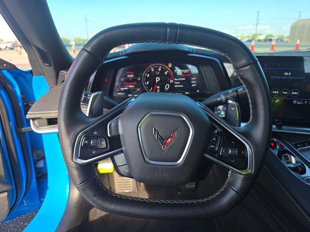 2023 Chevrolet Corvette Stingray 2LT Beautifully finished in Rapid Blue with Jet Black/Sky Cool Gray Leather interior. 6.2L V8 2D Convertible RWD 8-Speed Dual Clutch 14 Speakers, 2 Cargo Nets, 4-Wheel Disc Brakes, 8-Way Power Driver Seat Adjuster, 8-Way Power Passenger Seat Adjuster, ABS brakes, Air Conditioning, Alloy wheels, AM/FM radio: SiriusXM, Apple CarPlay/Android Auto, Auto-dimming door mirrors, Auto-dimming Rear-View mirror, Automatic Leveling System Headlamp Control, Automatic temperature control, Battery Protection Package, Black Composite Rocker Extensions (LPO), Black Lug Nuts (LPO), Black Premium Indoor Car Cover (LPO), Black Rear Fascia/Roof Storage Protector (LPO), Black Recovery Hook (LPO), Black Wheel Locks (LPO), Bose Performance Series Sound System w/14 Speakers, Brake assist, Bumpers: body-color, Carbon Flash Metallic Painted Outside Mirrors, Carbon Flash Metallic-Painted Outside Mirrors, Compass, Convertible HardTop, Convertible roof lining, Delay-off headlights, Driver door bin, Driver Power Bolster Seat Adjuster, Driver vanity mirror, Dual front impact airbags, Dual front side impact airbags, Electrical Theft Deterrent System, Electronic Stability Control, Emergency communication system: OnStar and Chevrolet connected services capable, Four wheel independent suspension, Front anti-roll bar, Front Bucket Seats, Front Center Armrest, Front dual zone A/C, Front Lift Adjustable Height w/Memory, Front Radiator Grille Screens (LPO), Front reading lights, Fully automatic headlights, Garage door transmitter, Glass rear window, GT1 Bucket Seats, HD Front & Rear Vision Cameras, HD Radio, Head-Up Display, Heads-Up Display, Heated & Vented Driver & Passenger Seats, Heated door mirrors, Heated front seats, Heated Steering Wheel, Heated steering wheel, Illuminated entry, Integrated roll-over protection, Leather Shift Knob, Leather steering wheel, Low tire pressure warning, Low-Profile Rear Spoiler & Front Splitter, Memory Driver & Passenger Convenience Package, Memory seat, Mulan Lthr Seating Surfaces w/Perforated Inserts, Navigation System, Occupant sensing airbag, Outside temperature display, Overhead console, Panic alarm, Passenger door bin, Passenger Power Bolster Seat Adjuster, Passenger vanity mirror, Performance Data & Video Recorder, Performance Exhaust w/Stainless-Steel Tips, Power convertible roof, Power door mirrors, Power Driver Lumbar Control Seat Adjuster, Power driver seat, Power Passenger Lumbar Control Seat Adjuster, Power passenger seat, Power steering, Power windows, Power-Adjustable Outside Heated Mirrors, Preferred Equipment Group 2LT, Premium audio system: Chevrolet Infotainment 3 Premium, Radio data system, Radio: Chevrolet Infotainment 3 Premium System, Rear anti-roll bar, Rear Cross Traffic Alert, Rear window defroster, Remote keyless entry, Security system, Side Blind Zone Alert, SiriusXM Radio, Speed control, Speed-sensing steering, Sport steering wheel, Steering wheel memory, Steering wheel mounted audio controls, Tachometer, Telescoping steering wheel, Tension Blue Seat Belt Color, Tilt steering wheel, Traction control, Trip computer, Turn signal indicator mirrors, Universal Home Remote, Variably intermittent wipers, Vehicle Inclination Theft Deterrent Sensor, Vehicle Interior Movement Theft Deterrent Sensor, Ventilated front seats, Voltmeter, Wheels: 19" x 8.5" Fr/20" x 11" Rr Bright Silver, Wheels: 19" x 8.5" Fr/20" x 11" Rr Carbon Flash, Wireless Charging for Devices. Clean CARFAX.