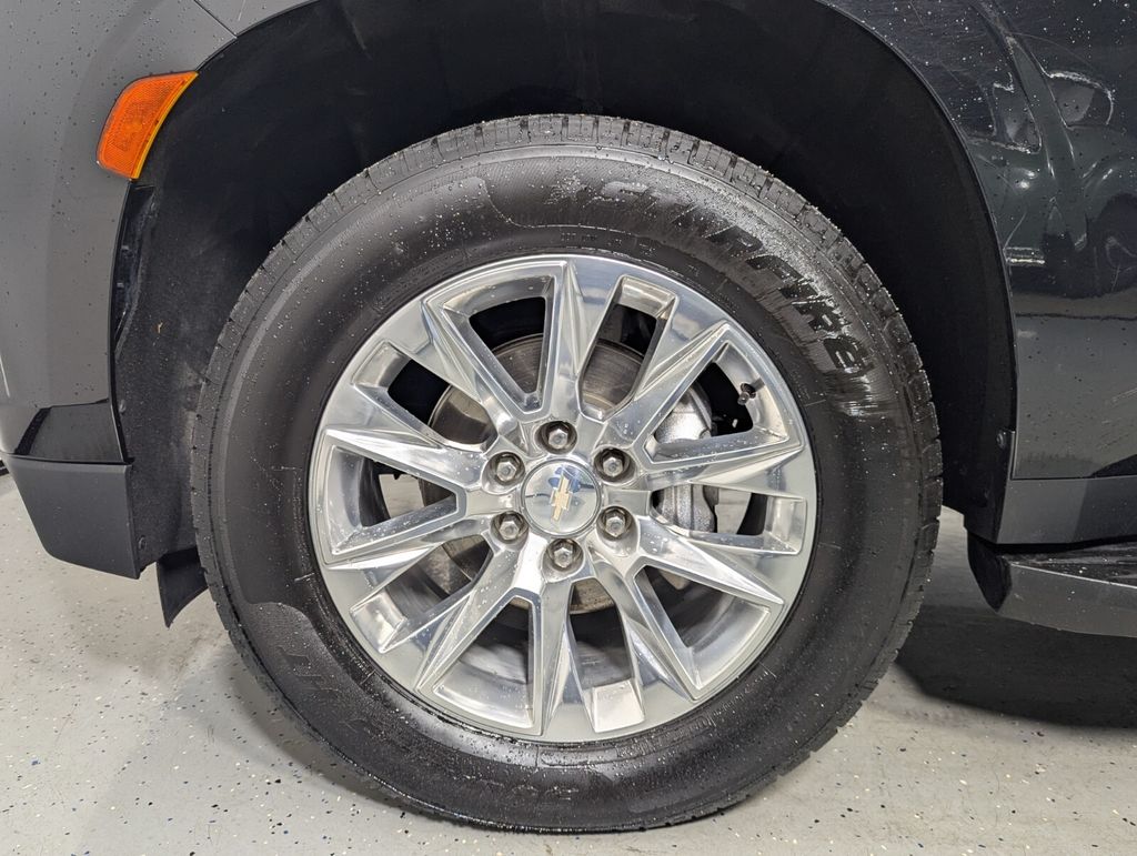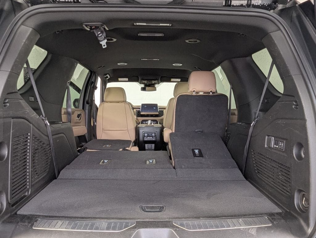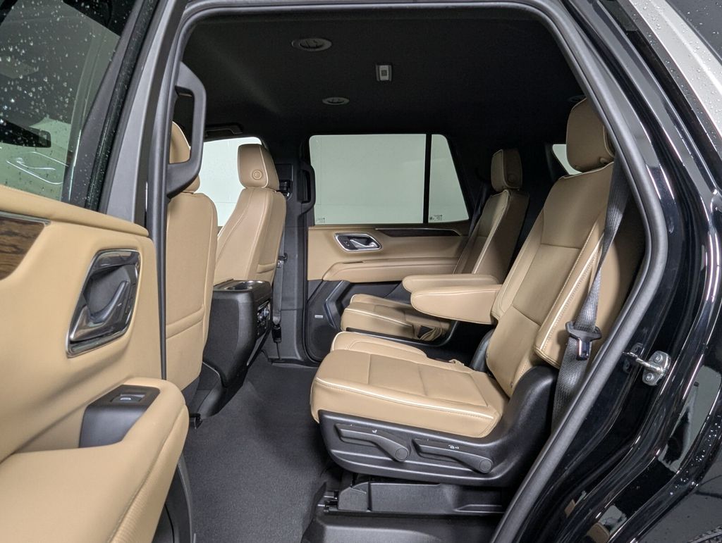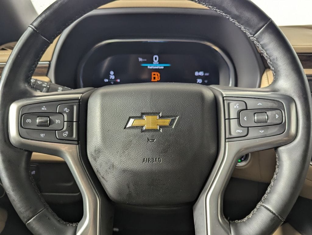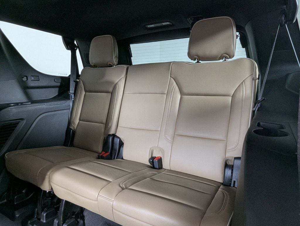 Features: 10 Speakers, 12-Way Power Driver & Passenger Seat Adjusters, 1st & 2nd Row Color-Keyed Carpeted Floor Mats, 2-Speed Active Electronic AutoTrac Transfer Case, 20" x 9" Polished Aluminum Wheels, 3.23 Rear Axle Ratio, 3rd Row 60/40 Power-Folding Split-Bench Seat, 3rd row seats: split-bench, 4-Wheel Disc Brakes, ABS brakes, Adaptive suspension, Air Conditioning, Alloy wheels, AM/FM radio: SiriusXM with 360L, Apple CarPlay/Android Auto, Auto High-beam Headlights, Auto-dimming door mirrors, Auto-Dimming Inside Rear-View Mirror, Auto-dimming Rear-View mirror, Auto-leveling suspension, Automatic temperature control, Bose 10-Speaker Centerpoint Surround Audio Sys Ft, Brake assist, Bright Front & Rear Door Sill Plates, Bumpers: body-color, Chrome Door Handles w/Body-Color Strip, Chrome Mirror Caps, Color-Keyed Carpeting Floor Covering, Compass, Delay-off headlights, Driver & Front Outboard Passenger Airbags, Driver & Front Passenger Heated & Ventilated Seats, Driver door bin, Driver vanity mirror, Dual Exhaust System, Dual front impact airbags, Dual front side impact airbags, Electronic Stability Control, Emergency communication system: OnStar and Chevrolet connected services capable, Enhanced Driver Information Center, Floor Console, Four wheel independent suspension, Front anti-roll bar, Front Bucket Seats, Front Center Armrest, Front dual zone A/C, Front High-Back Reclining Bucket Seats, Front reading lights, Fully automatic headlights, Garage door transmitter, Hands-Free Rear Power Programmable Liftgate, Heated 2nd Row Outboard Seats, Heated door mirrors, Heated Driver & Front Passenger Seats, Heated front seats, Heated rear seats, Heated Steering Wheel, Heated steering wheel, Hill Descent Control, Illuminated entry, Infotainment Display, Lane Change Alert w/Side Blind Zone Alert, LED Daytime Running Lamps, Low tire pressure warning, Magnetic Ride Control Suspension, Memory seat, Memory Settings, Navigation System, Occupant sensing airbag, Outside Heated Power-Adjustable Mirrors, Outside temperature display, Overhead airbag, Overhead console, Panic alarm, Passenger door bin, Passenger vanity mirror, Perforated Leather Seat Trim, Power door mirrors, Power driver seat, Power Liftgate, Power passenger seat, Power Release 2nd Row Bucket Seats, Power steering, Power Tilt & Telescopic Steering Column, Power windows, Premium audio system: Chevrolet Infotainment 3 Premium, Radio: Chevrolet Infotainment 3 Premium System, Rain sensing wipers, Rear air conditioning, Rear anti-roll bar, Rear Cross Traffic Alert, Rear reading lights, Rear window defroster, Rear window wiper, Remote keyless entry, Remote Start, Roof rack: xxxxxx, Safety Alert Seat, Security system, SiriusXM w/360L, Speed control, Speed-sensing steering, Split folding rear seat, Spoiler, Steering wheel memory, Steering wheel mounted audio controls, Tachometer, Telescoping steering wheel, Tilt steering wheel, Traction control, Trip computer, Turn signal indicator mirrors, Universal Home Remote, Variably intermittent wipers, Ventilated front seats, Voltmeter, Wireless Charging, and Wrapped Steering Wheel.