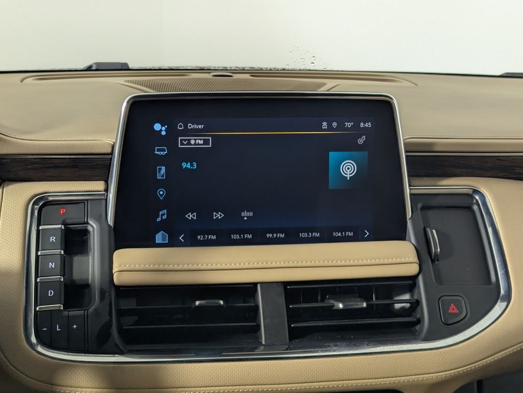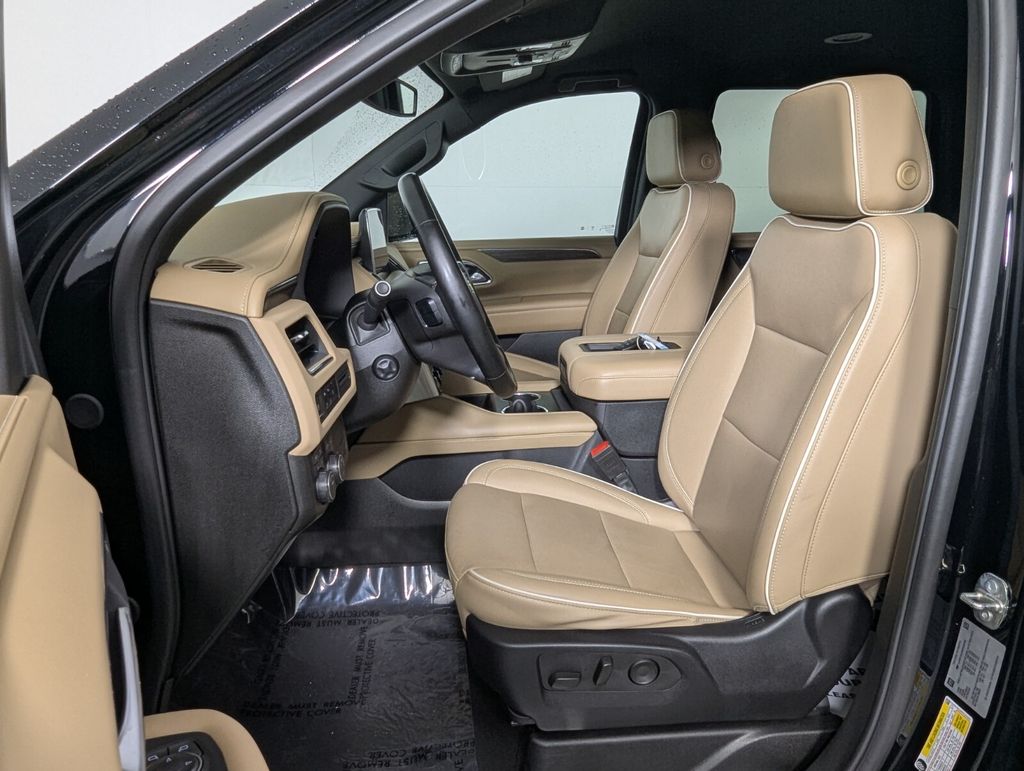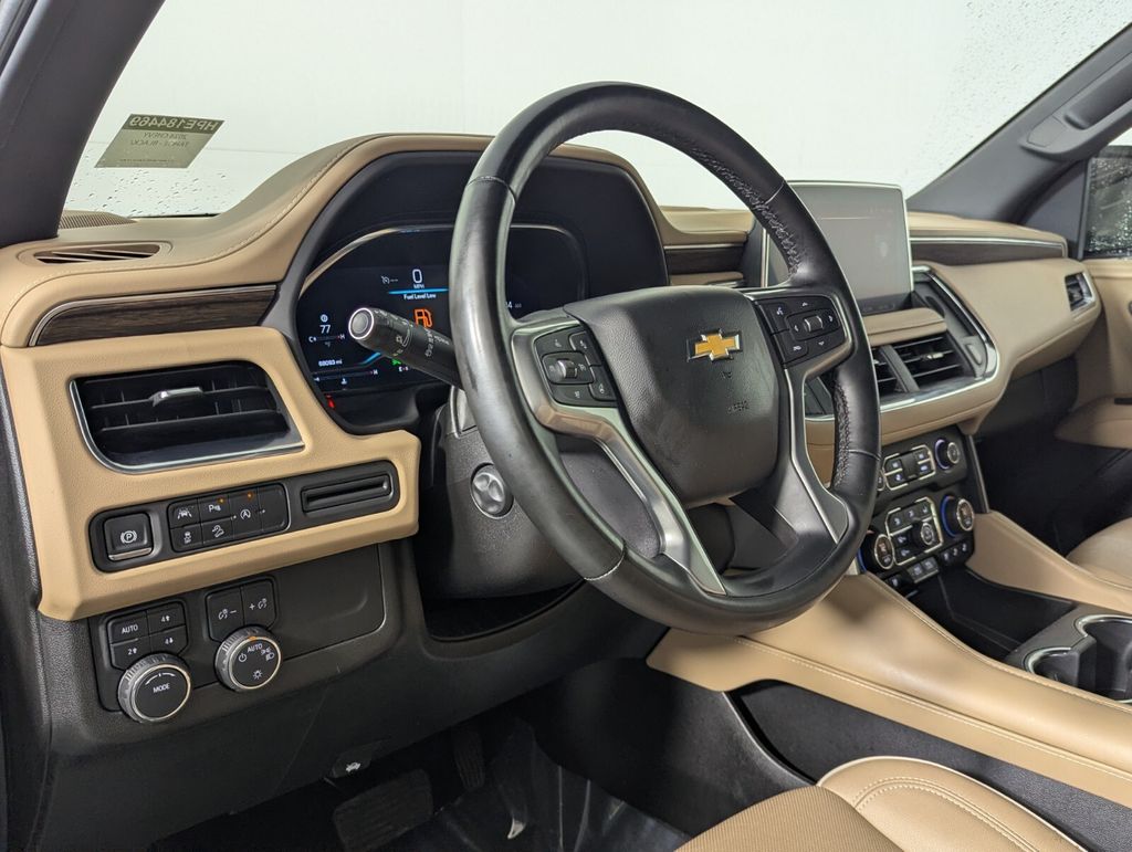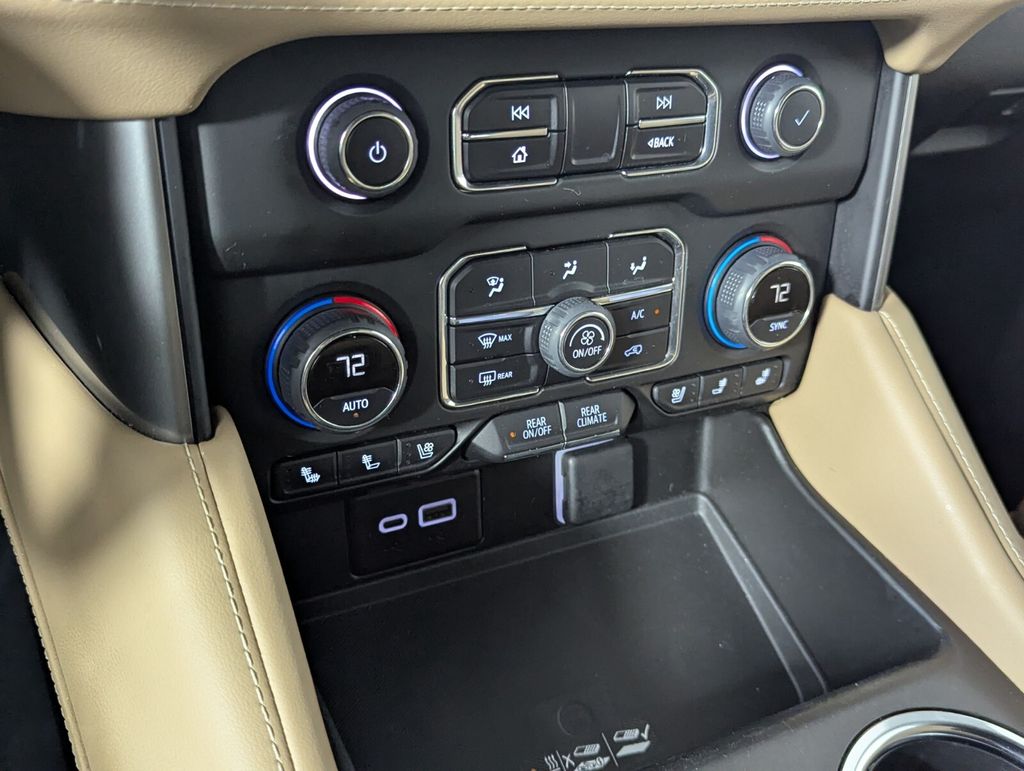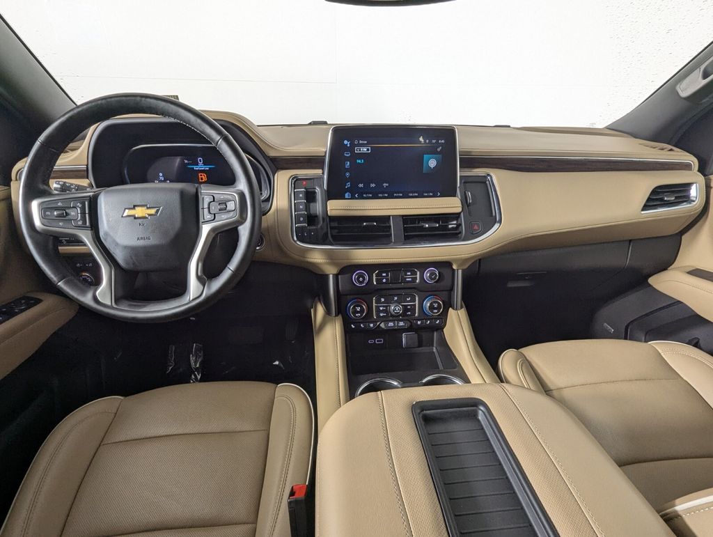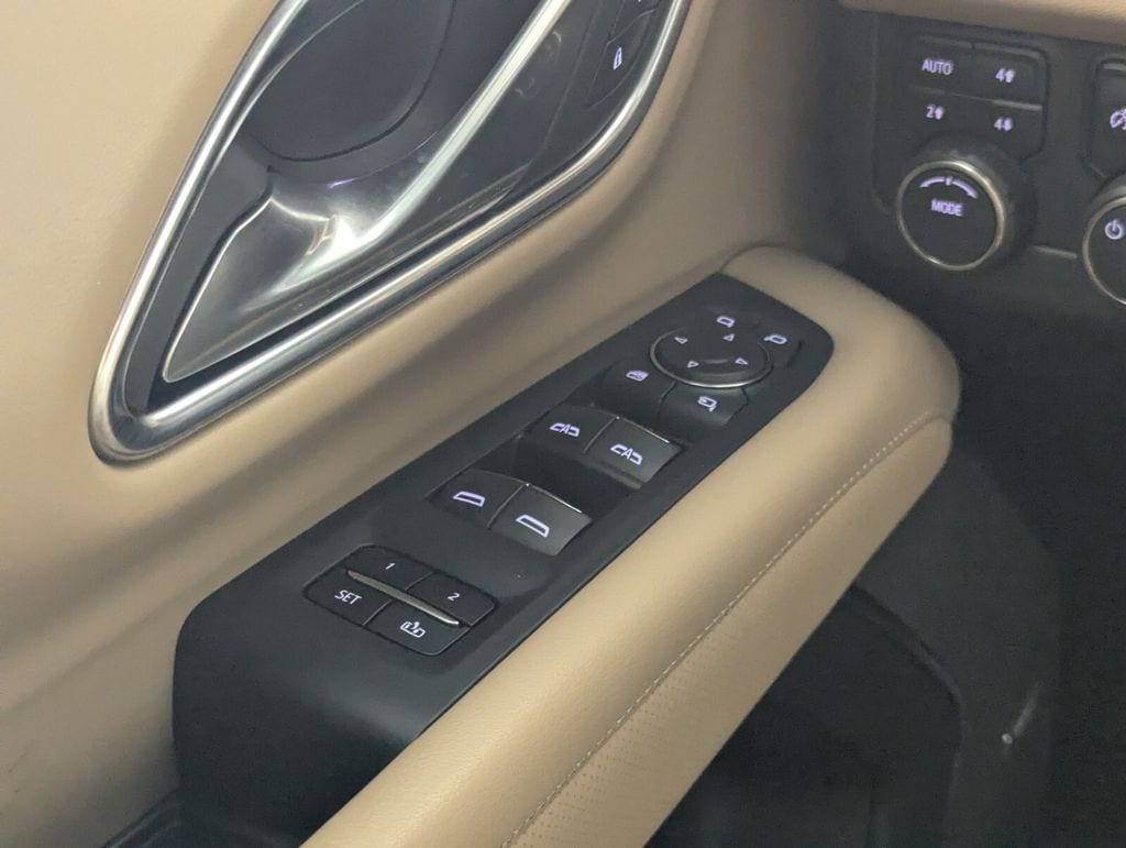 Features: 10 Speakers, 12-Way Power Driver & Passenger Seat Adjusters, 1st & 2nd Row Color-Keyed Carpeted Floor Mats, 2-Speed Active Electronic AutoTrac Transfer Case, 20" x 9" Polished Aluminum Wheels, 3.23 Rear Axle Ratio, 3rd Row 60/40 Power-Folding Split-Bench Seat, 3rd row seats: split-bench, 4-Wheel Disc Brakes, ABS brakes, Adaptive suspension, Air Conditioning, Alloy wheels, AM/FM radio: SiriusXM with 360L, Apple CarPlay/Android Auto, Auto High-beam Headlights, Auto-dimming door mirrors, Auto-Dimming Inside Rear-View Mirror, Auto-dimming Rear-View mirror, Auto-leveling suspension, Automatic temperature control, Bose 10-Speaker Centerpoint Surround Audio Sys Ft, Brake assist, Bright Front & Rear Door Sill Plates, Bumpers: body-color, Chrome Door Handles w/Body-Color Strip, Chrome Mirror Caps, Color-Keyed Carpeting Floor Covering, Compass, Delay-off headlights, Driver & Front Outboard Passenger Airbags, Driver & Front Passenger Heated & Ventilated Seats, Driver door bin, Driver vanity mirror, Dual Exhaust System, Dual front impact airbags, Dual front side impact airbags, Electronic Stability Control, Emergency communication system: OnStar and Chevrolet connected services capable, Enhanced Driver Information Center, Floor Console, Four wheel independent suspension, Front anti-roll bar, Front Bucket Seats, Front Center Armrest, Front dual zone A/C, Front High-Back Reclining Bucket Seats, Front reading lights, Fully automatic headlights, Garage door transmitter, Hands-Free Rear Power Programmable Liftgate, Heated 2nd Row Outboard Seats, Heated door mirrors, Heated Driver & Front Passenger Seats, Heated front seats, Heated rear seats, Heated Steering Wheel, Heated steering wheel, Hill Descent Control, Illuminated entry, Infotainment Display, Lane Change Alert w/Side Blind Zone Alert, LED Daytime Running Lamps, Low tire pressure warning, Magnetic Ride Control Suspension, Memory seat, Memory Settings, Navigation System, Occupant sensing airbag, Outside Heated Power-Adjustable Mirrors, Outside temperature display, Overhead airbag, Overhead console, Panic alarm, Passenger door bin, Passenger vanity mirror, Perforated Leather Seat Trim, Power door mirrors, Power driver seat, Power Liftgate, Power passenger seat, Power Release 2nd Row Bucket Seats, Power steering, Power Tilt & Telescopic Steering Column, Power windows, Premium audio system: Chevrolet Infotainment 3 Premium, Radio: Chevrolet Infotainment 3 Premium System, Rain sensing wipers, Rear air conditioning, Rear anti-roll bar, Rear Cross Traffic Alert, Rear reading lights, Rear window defroster, Rear window wiper, Remote keyless entry, Remote Start, Roof rack: xxxxxx, Safety Alert Seat, Security system, SiriusXM w/360L, Speed control, Speed-sensing steering, Split folding rear seat, Spoiler, Steering wheel memory, Steering wheel mounted audio controls, Tachometer, Telescoping steering wheel, Tilt steering wheel, Traction control, Trip computer, Turn signal indicator mirrors, Universal Home Remote, Variably intermittent wipers, Ventilated front seats, Voltmeter, Wireless Charging, and Wrapped Steering Wheel.