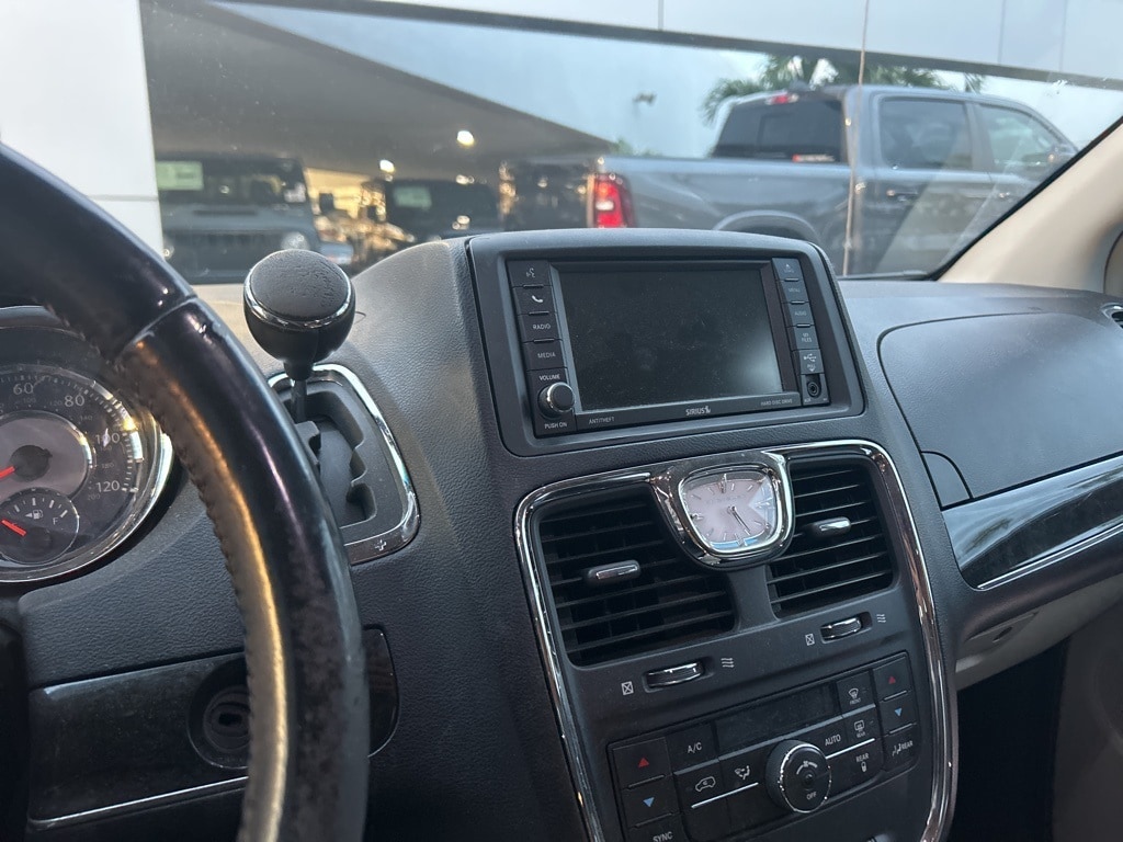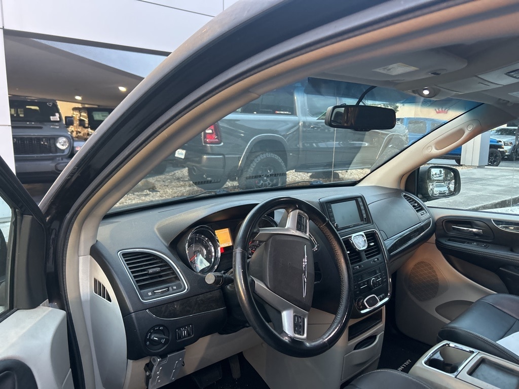 This Town & Country is well equipped with Black/Light Graystone Leather, 17" x 6.5" Aluminum Wheels, 3.16 Axle Ratio, 3rd row seats: split-bench, 4-Wheel Disc Brakes, 40GB Hard Drive w/28GB Available, 6 Speakers, 6.5" Touch Screen Display, A/V remote, ABS brakes, Air Conditioning, Alloy wheels, AM/FM radio: SiriusXM, Anti-whiplash front head restraints, Audio Jack Input for Mobile Devices, Auto-dimming Rear-View mirror, Automatic temperature control, Bodyside moldings, Brake assist, Bumpers: body-color, CD player, Compass, Delay-off headlights, Driver door bin, Driver vanity mirror, Driver's Seat Mounted Armrest, Dual front impact airbags, Dual front side impact airbags, DVD-Audio, Electronic Stability Control, Front anti-roll bar, Front Bucket Seats, Front dual zone A/C, Front fog lights, Front reading lights, Front wheel independent suspension, Fully automatic headlights, Garage door transmitter, Headphones, Heated door mirrors, Illuminated entry, Knee airbag, Leather Shift Knob, Leather Trimmed Bucket Seats (ML), Low tire pressure warning, Occupant sensing airbag, Outside temperature display, Overhead airbag, Overhead console, Panic alarm, ParkView Rear Back-Up Camera, Passenger door bin, Passenger seat mounted armrest, Passenger vanity mirror, Power door mirrors, Power driver seat, Power Liftgate, Power steering, Power windows, Radio data system, Radio: Uconnect 430 CD/DVD/MP3/HDD, Rear air conditioning, Rear reading lights, Rear window defroster, Rear window wiper, Reclining 3rd row seat, Remote keyless entry, Roof rack, Speed control, Split folding rear seat, Spoiler, Steering wheel mounted audio controls, Tachometer, Telescoping steering wheel, Tilt steering wheel, Touring Suspension, Traction control, Trip computer, and Variably intermittent wipers.