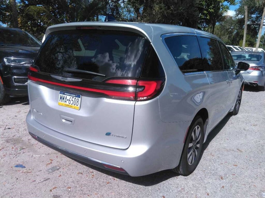 This Pacifica Hybrid is well equipped with 3.6L V6, 3.59 Axle Ratio, 3rd row seats: split-bench, 4-Wheel Disc Brakes, 6 Speakers, ABS brakes, Air Conditioning, Alloy wheels, AM/FM radio: SiriusXM 360L, Apple CarPlay/Android Auto, Audio memory, Automatic temperature control, Brake assist, Bumpers: body-color, Caprice Leatherette Bucket Seats, Compass, Delay-off headlights, Driver door bin, Driver vanity mirror, Driver's Seat Mounted Armrest, Dual front impact airbags, Dual front side impact airbags, Electronic Stability Control, Emergency communication system, Exterior Mirrors w/Heating Element, Exterior Mirrors w/Supplemental Signals, Exterior Parking Camera Rear, Four wheel independent suspension, Front anti-roll bar, Front Bucket Seats, Front dual zone A/C, Front Fascia Air Deflectors, Front fog lights, Front reading lights, Fully automatic headlights, Gloss Black Exterior Mirrors, Heated door mirrors, Heated front seats, Heated steering wheel, Heavy Duty Suspension, Illuminated Cupholders, Illuminated entry, Integrated Active Noise Cancellation, Knee airbag, Low tire pressure warning, Memory seat, Navigation System/ GPS, Occupant sensing airbag, Outside temperature display, Overhead airbag, Overhead console, Panic alarm, Passenger door bin, Passenger seat mounted armrest, Passenger vanity mirror, Power door mirrors, Power driver seat, Power Liftgate, Power steering, Power windows, Radio data system, Radio: Uconnect 5 Nav w/10.1" Display, Rain sensing wipers, Rear air conditioning, Rear reading lights, Rear window defroster, Rear window wiper, Reclining 3rd row seat, Remote keyless entry, Security system, Speed control, Split folding rear seat, Spoiler, Steering wheel mounted audio controls, Tachometer, Telescoping steering wheel, Tilt steering wheel, Traction control, Trip computer, Turn signal indicator mirrors, Variably intermittent wipers, Voltmeter, and Wheels: 17" x 7.0" Diamond Cut w/Painted Pockets.